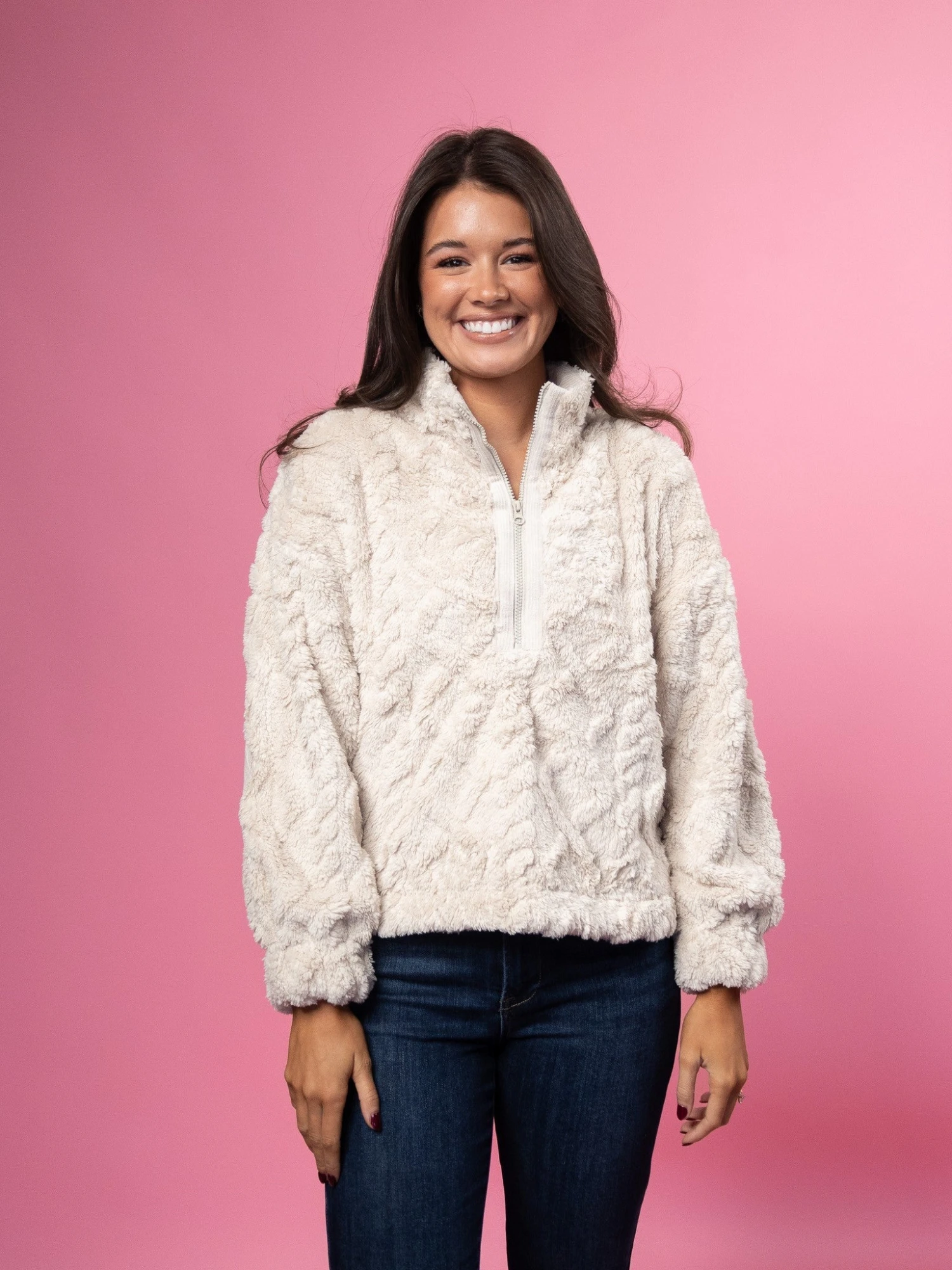 Features: 1/4 Zip, Long Sleeve, Faux Fur, Small Side Slit, Nock Neck