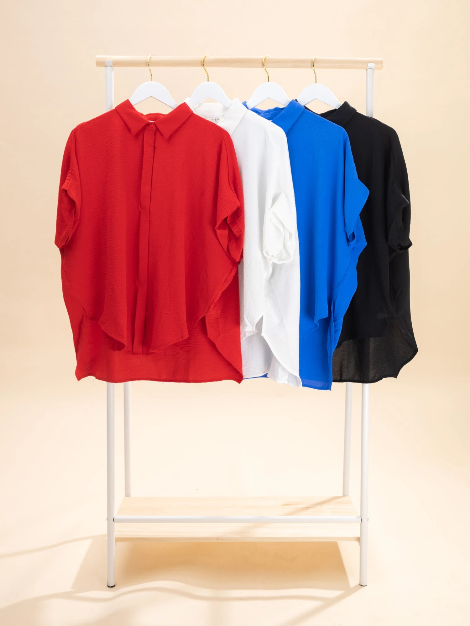 Features: Collar, Short Sleeves, Button Down, Side Slits