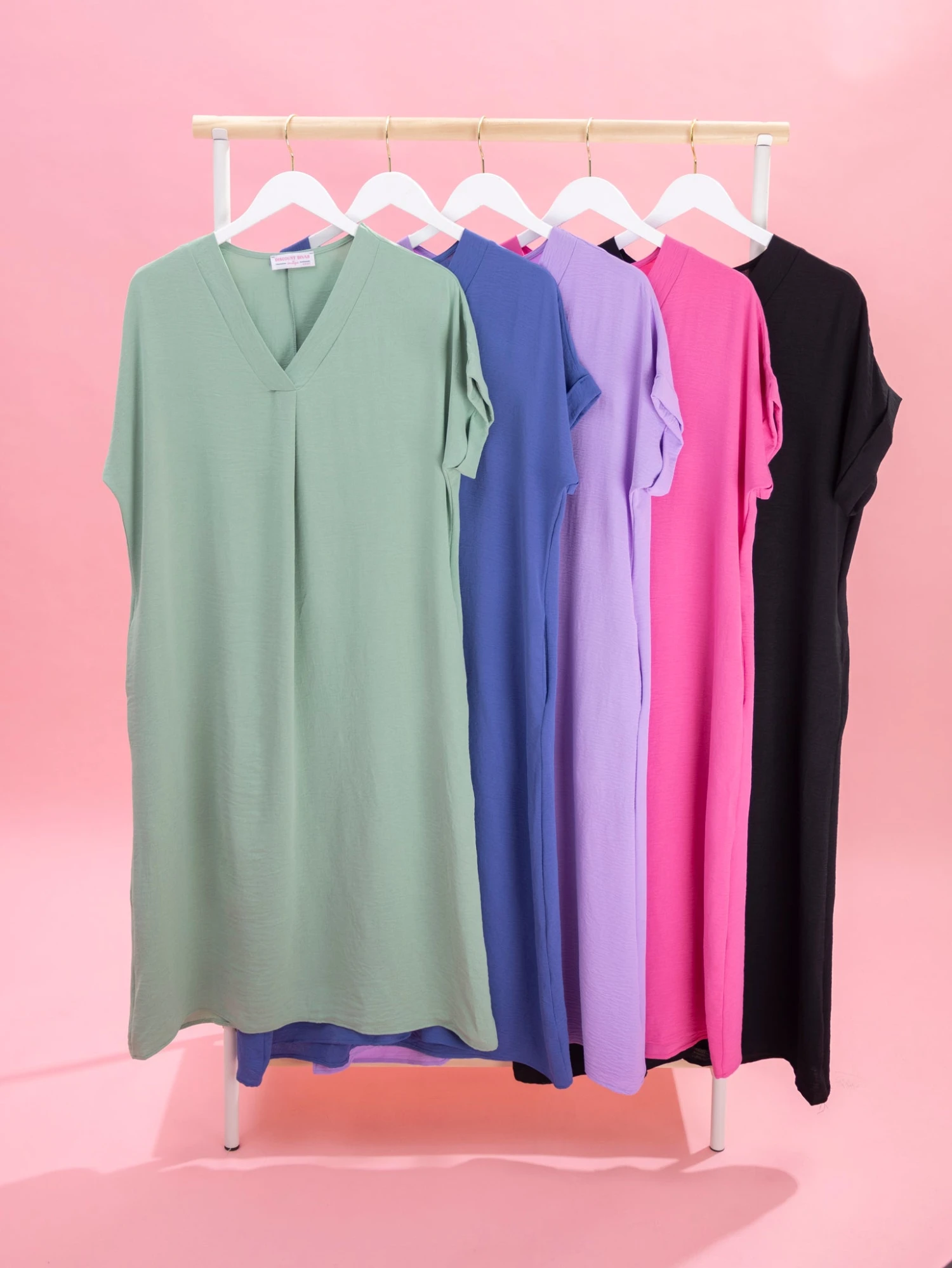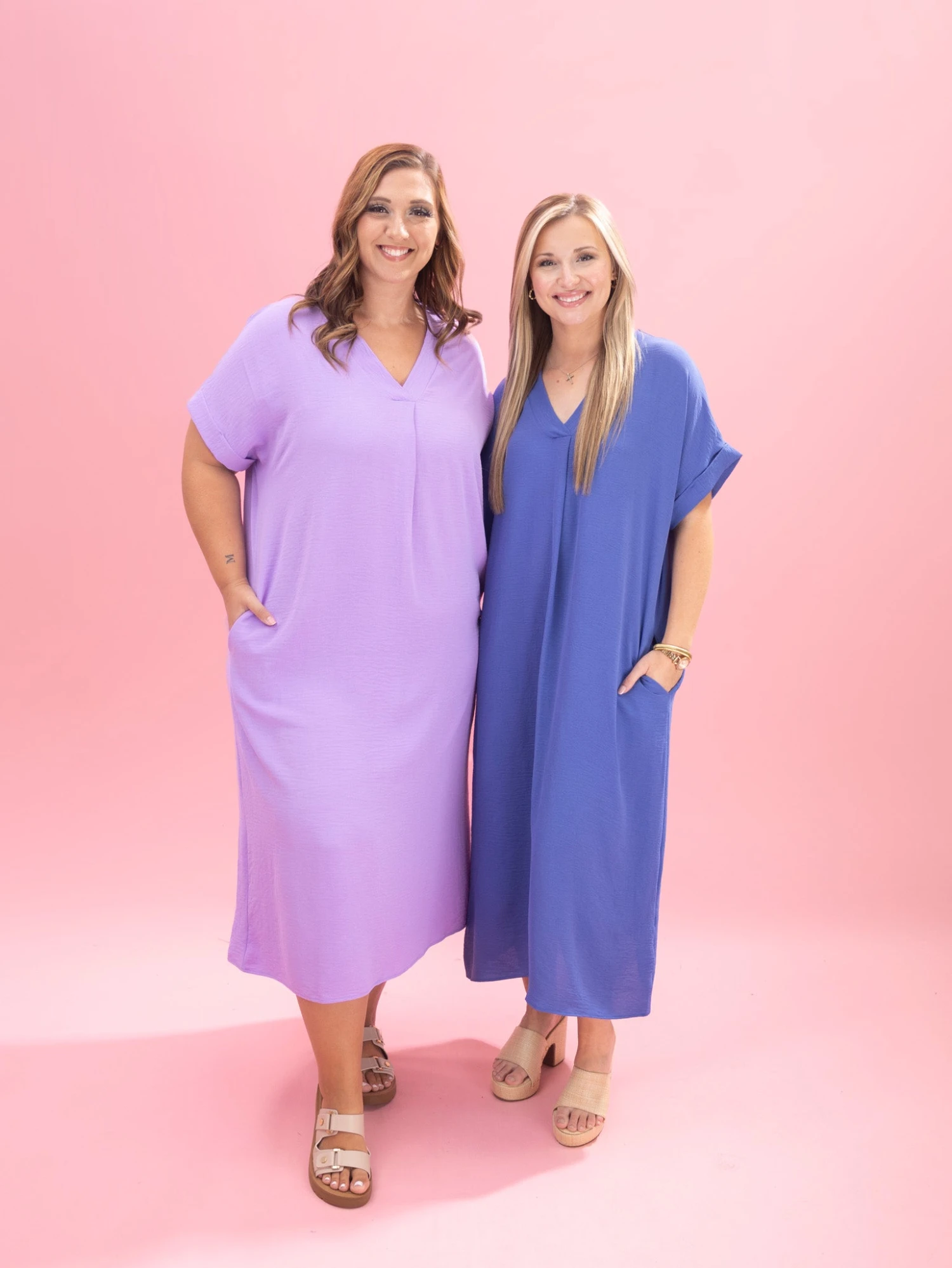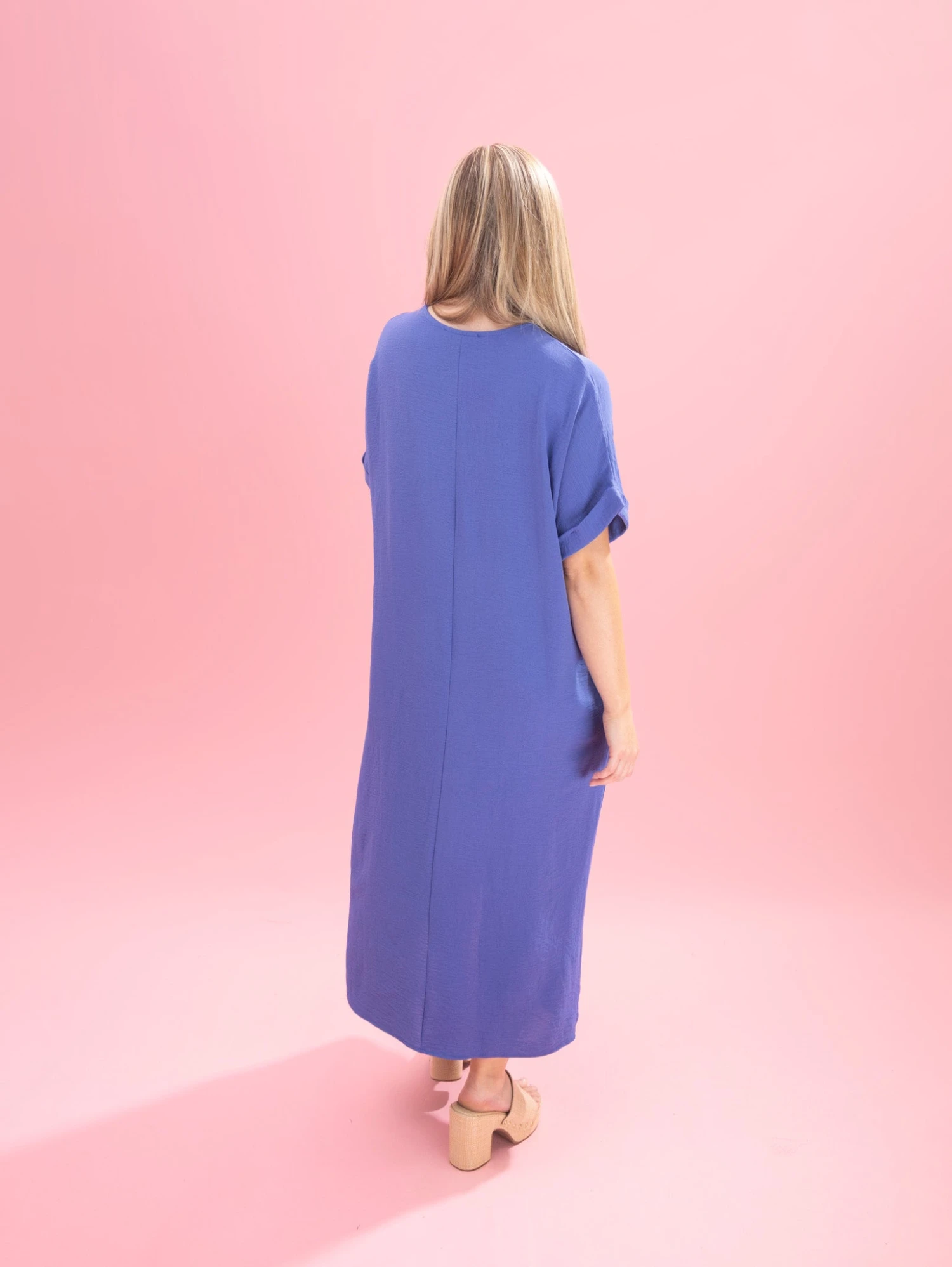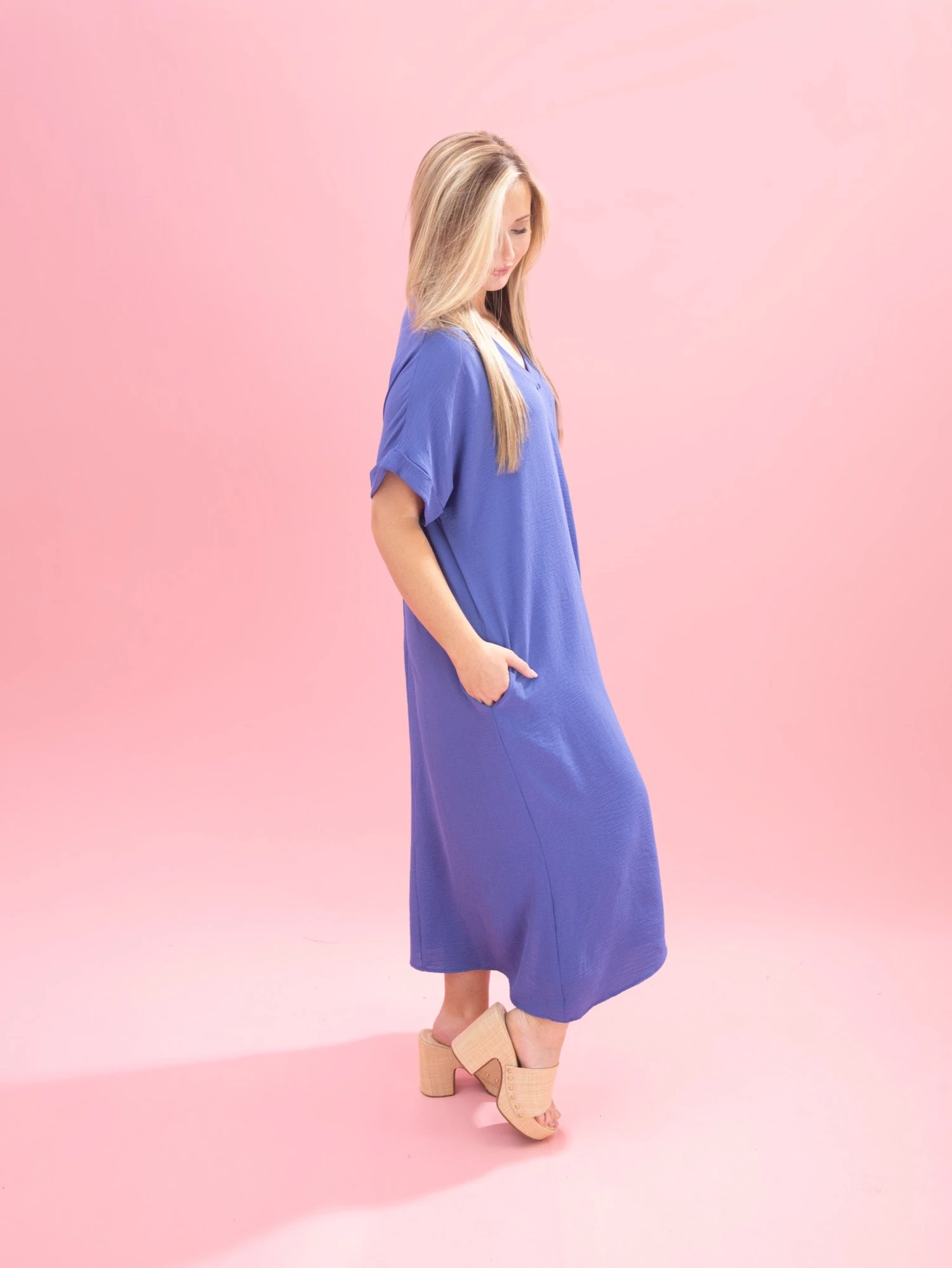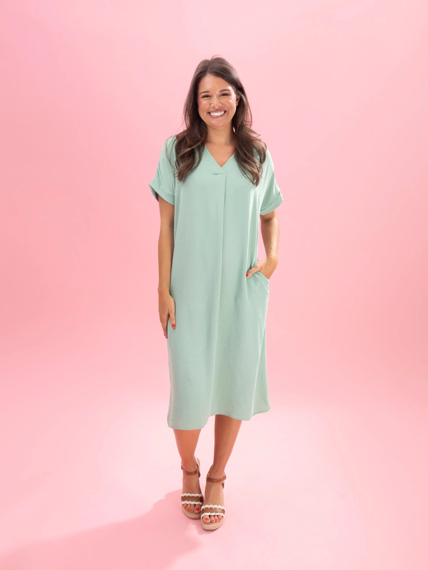 Features: V Neck, Short Sleeves, Pockets, Airflow Midi Dress