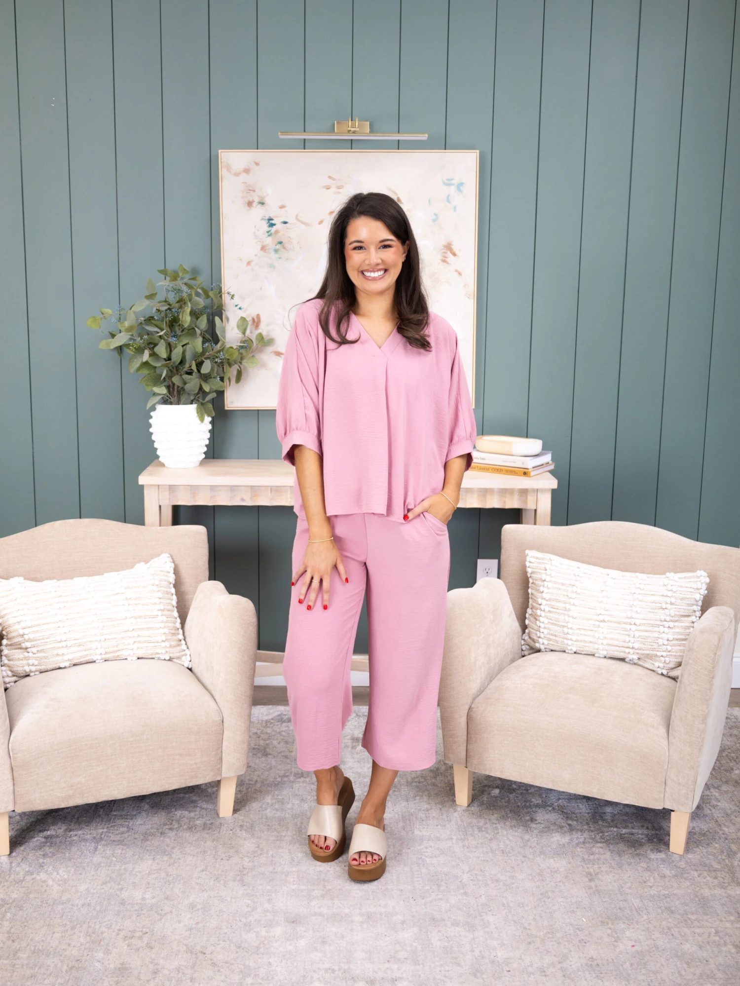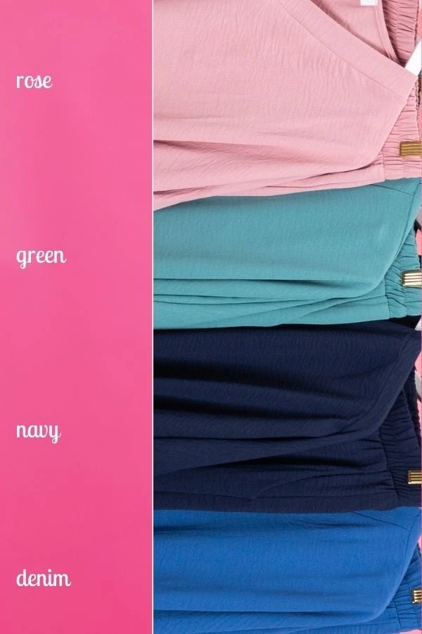 | Color | Deinm, Dusty Rose, Navy, Green |