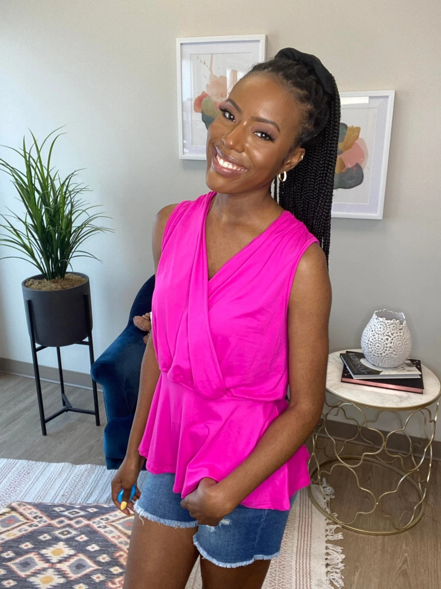 The “Always Delicate Top” has arrived! This adorable sleeveless top is just what you need! We are loving the gathered waist look! Be sure to snag one before they are gone!