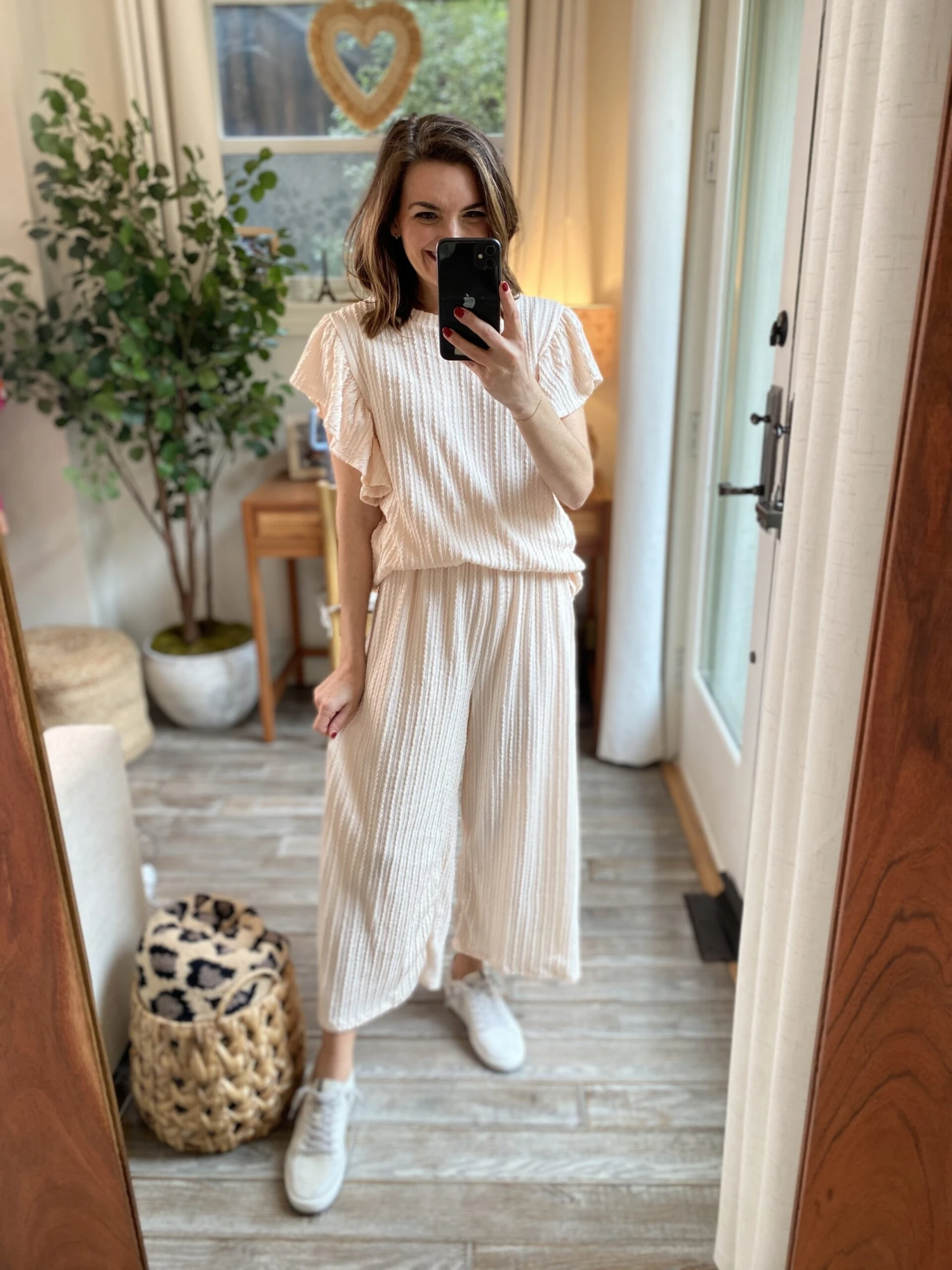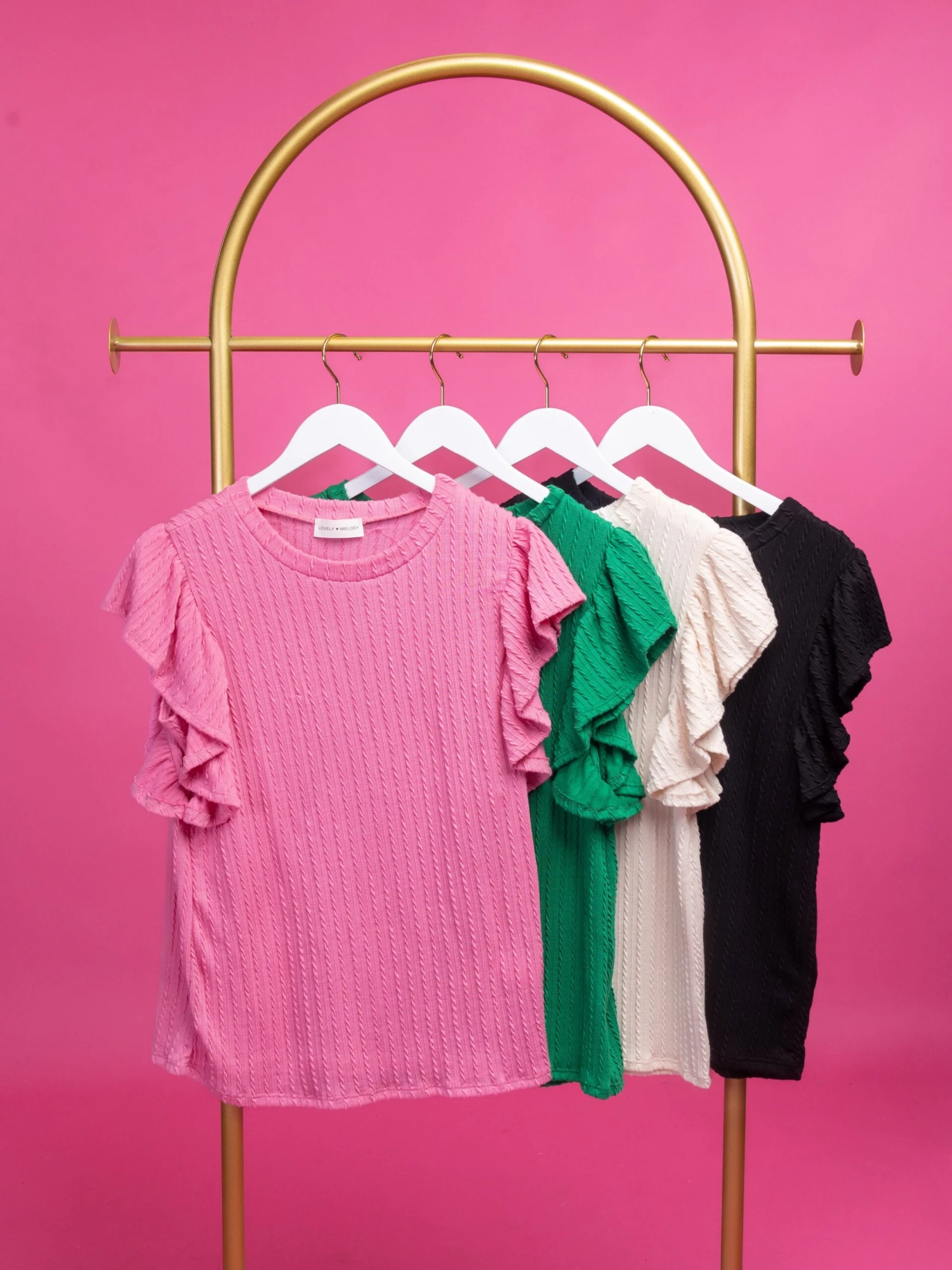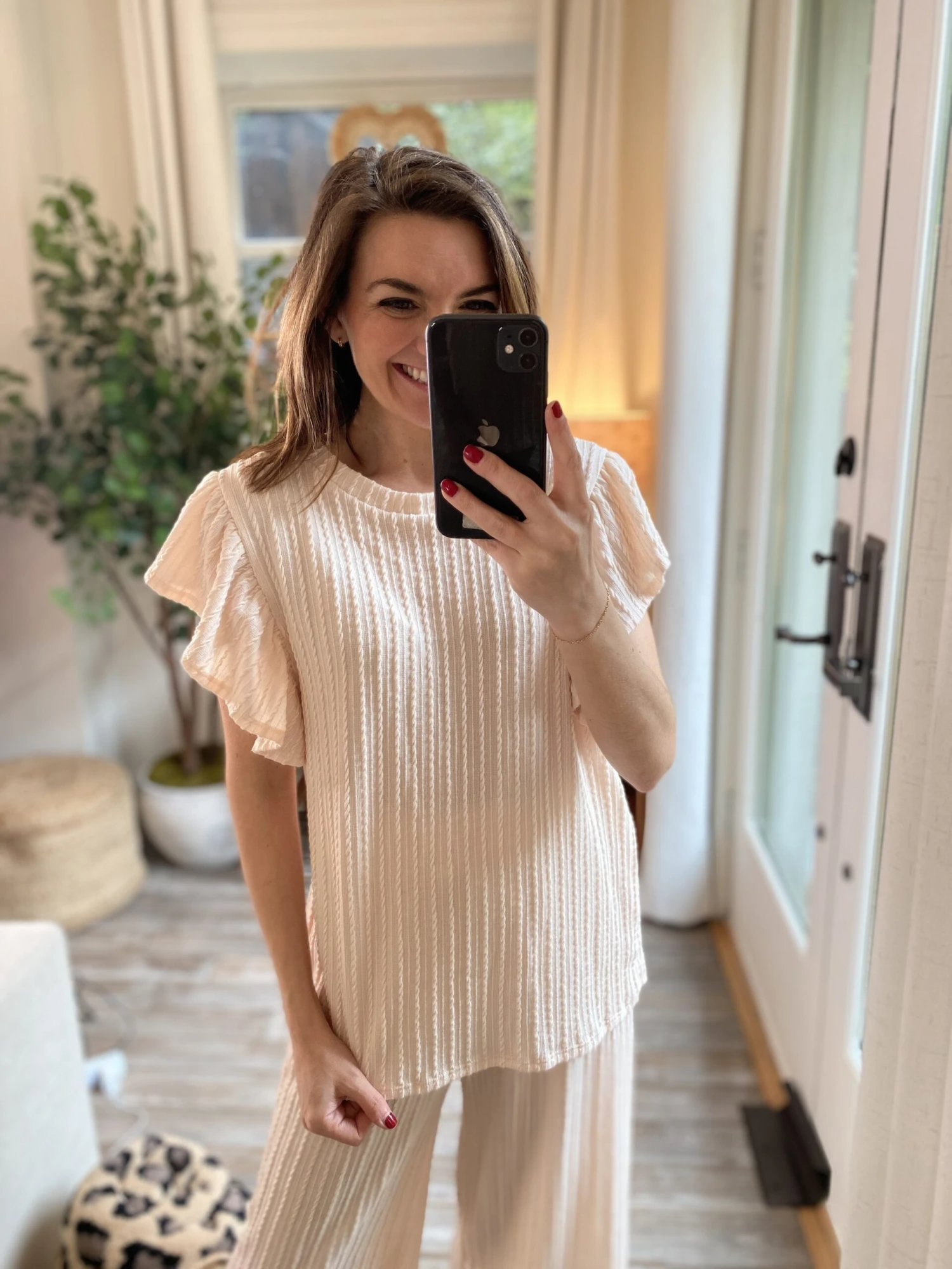 This boho inspired cable knit top is calling your name! The adorable ruffle sleeves and a relaxed fit make this must have so easy to dress up or down!