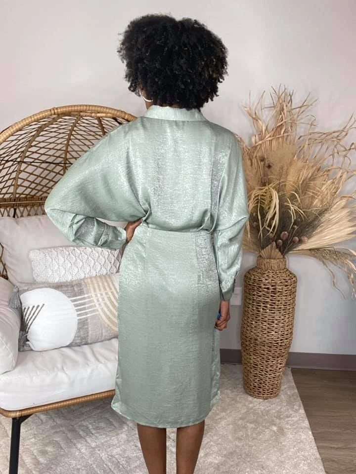 The “Boss Lady Dress” has arrived! This super classy dress is a must-have for all you super classy ladies out there! The satin design with the dolman sleeves and summary down collared look is stunning! Be sure to grab one before they sell out!