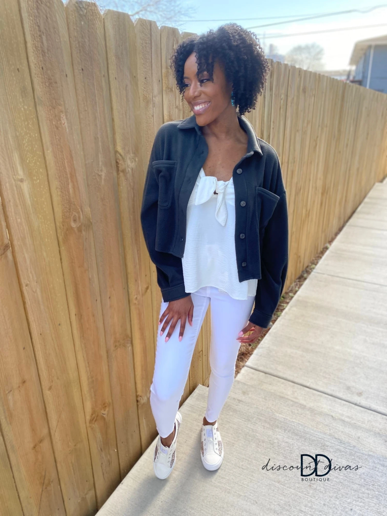 The “Brilliant Beauty Tank” is the cutest babydoll tank! This one has a nice front tie detail and comes in four pretty colors. Wear her alone or layer over her, either way you’re gonna look bomb!