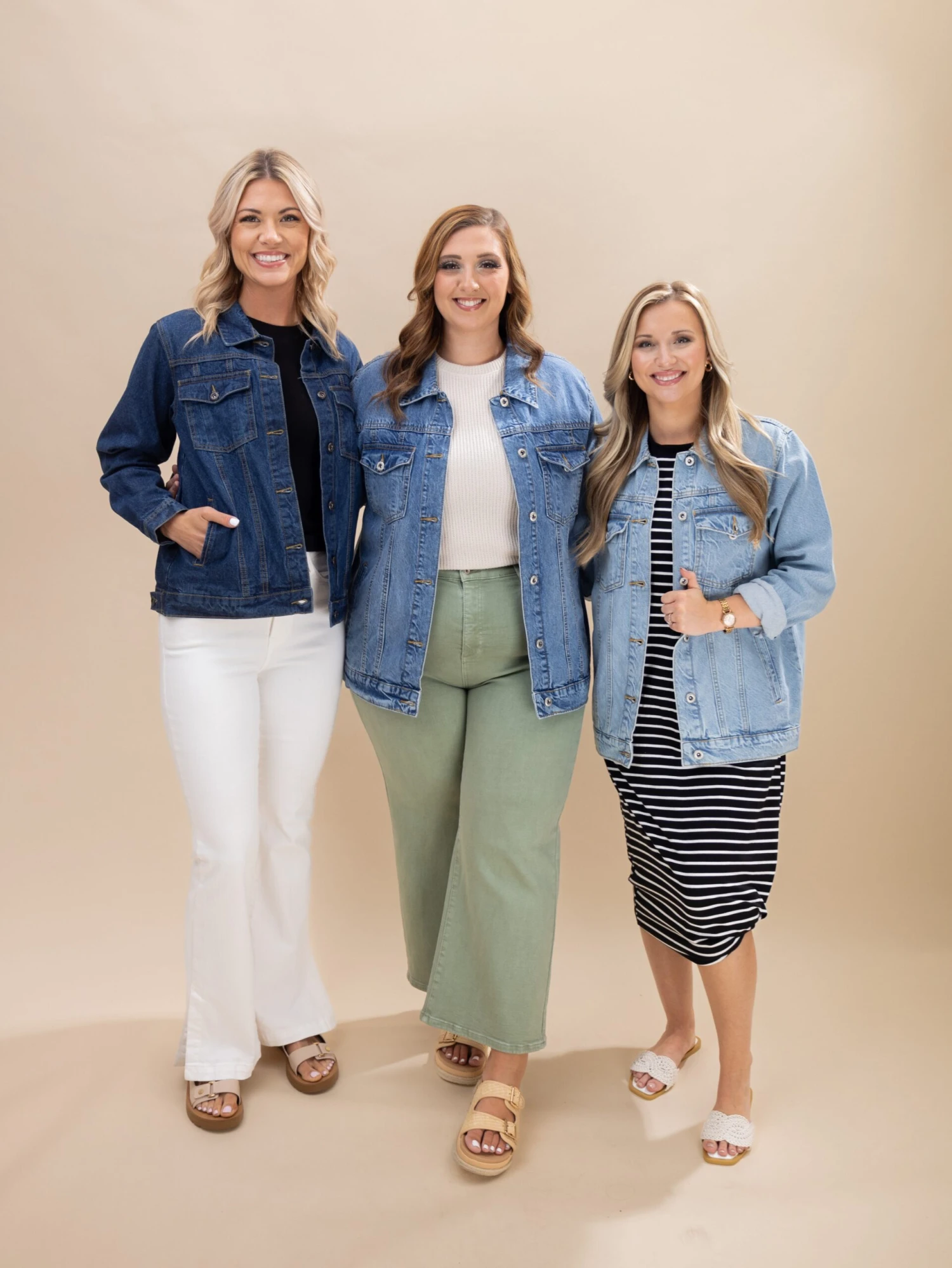 Brittany (short blonde hair) is 5’10, 36B bra, typically wears size S in tops and 3 in denim. Wearing size S
