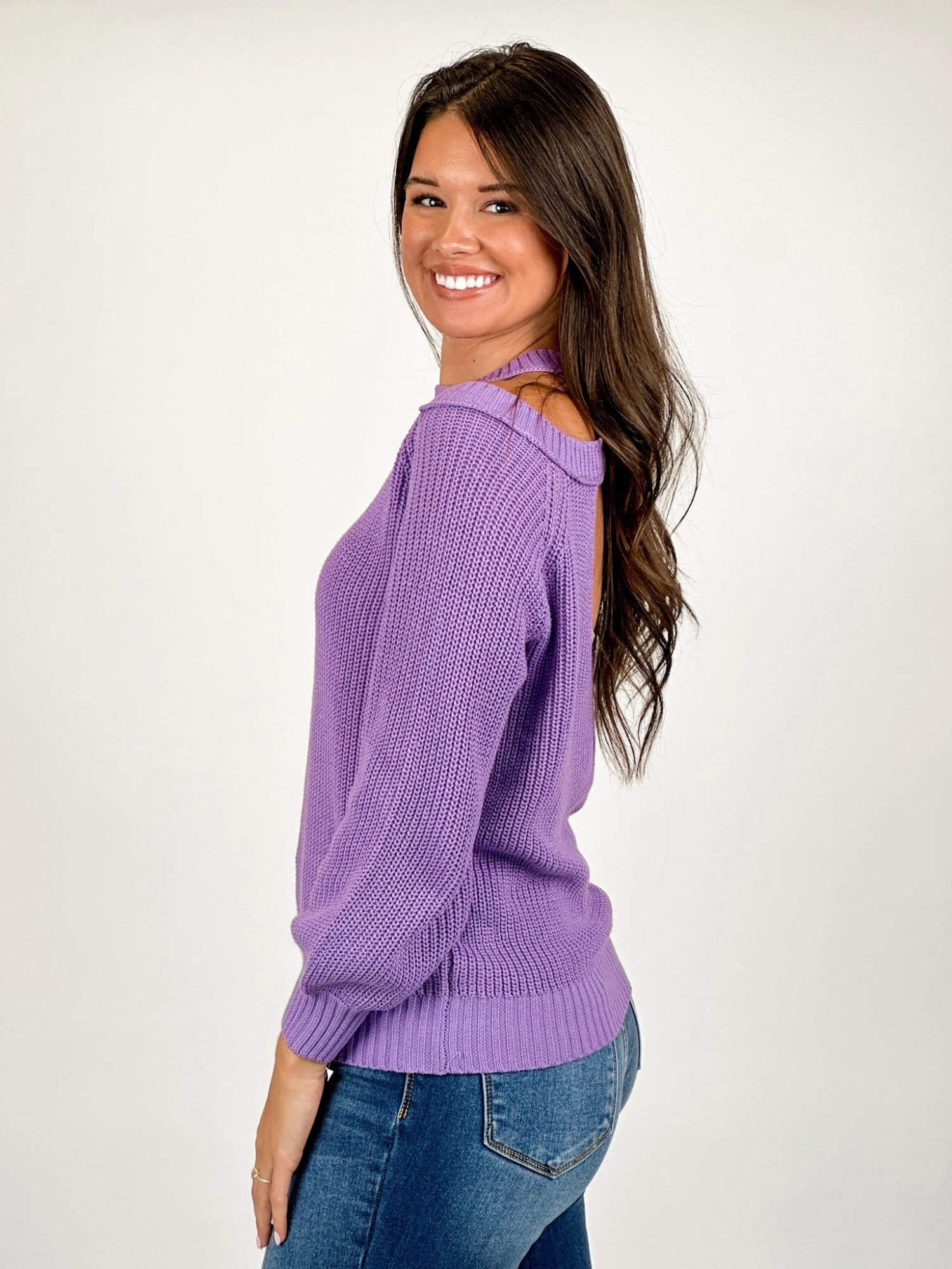 Cold Shoulder Ribbed Knit Sweater W/ Long Bubble Sleeves | S – 2XL