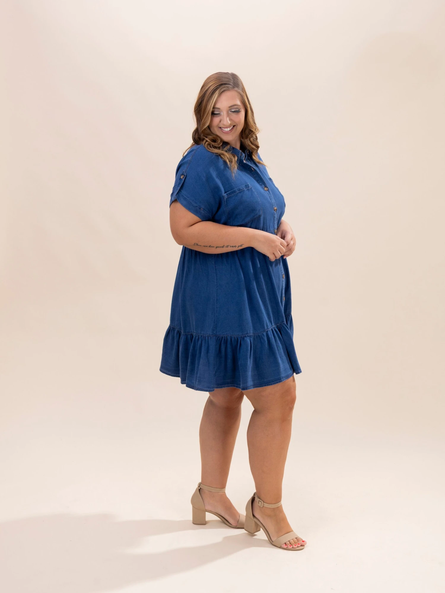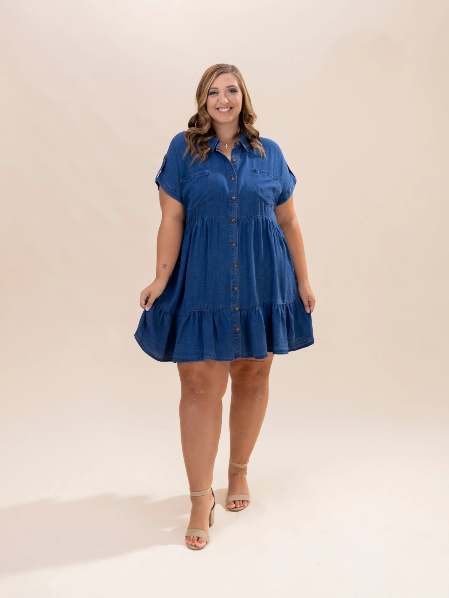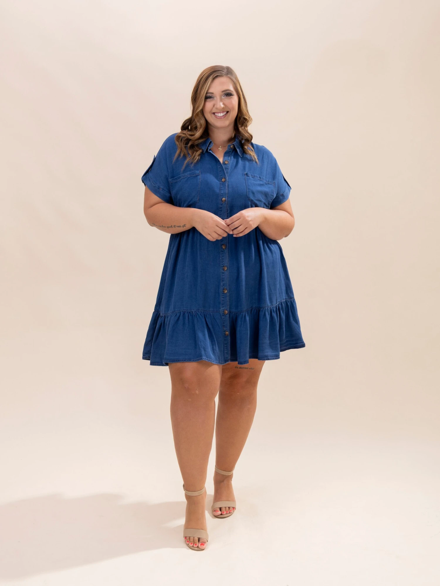 Features: Dark Chambray, Collared Button Down, Shirt Dress