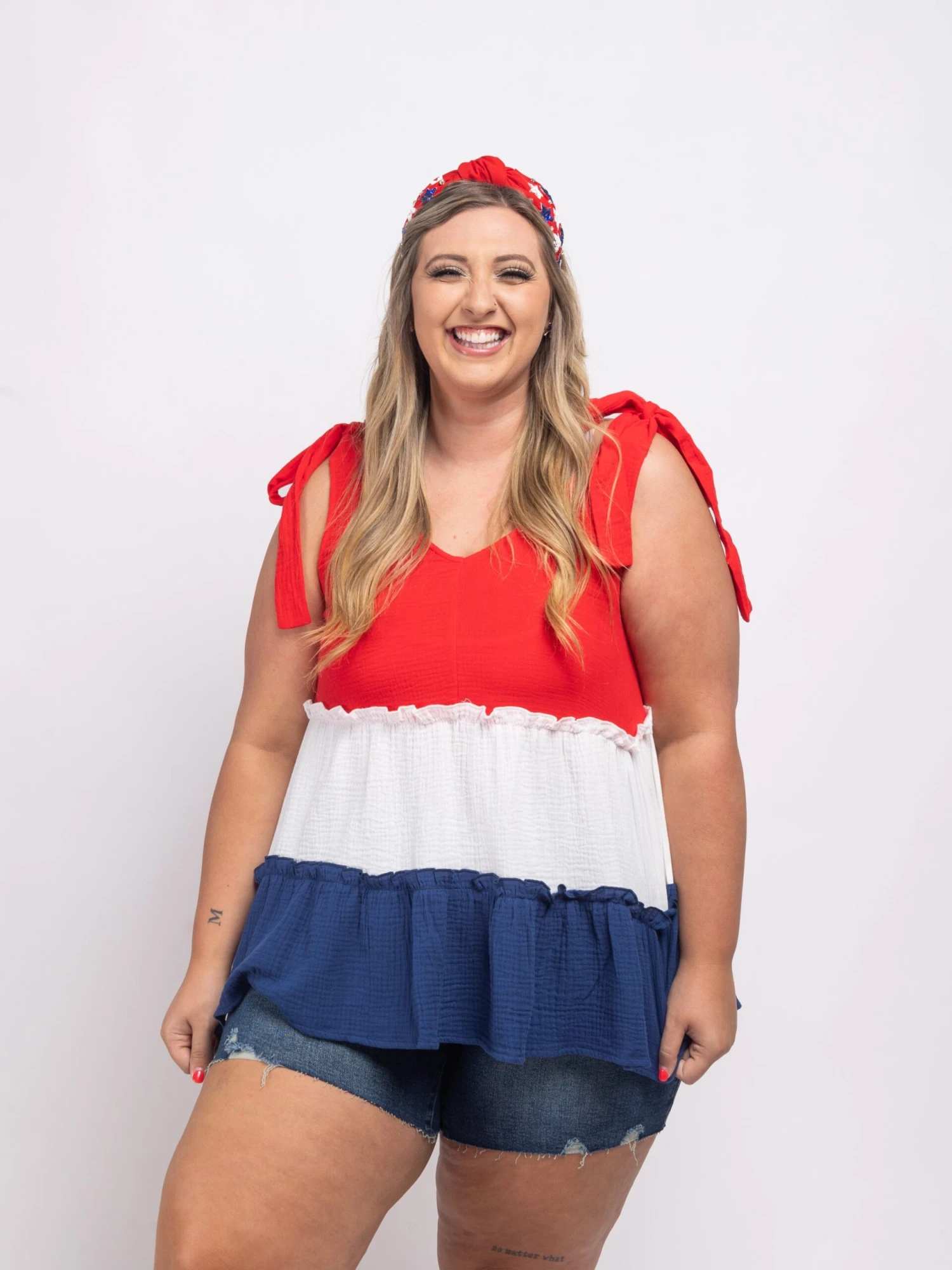 Erin is 5’9, 36C bra, typically wears size L/XL in tops and 14/16 in denim. Wearing size XL