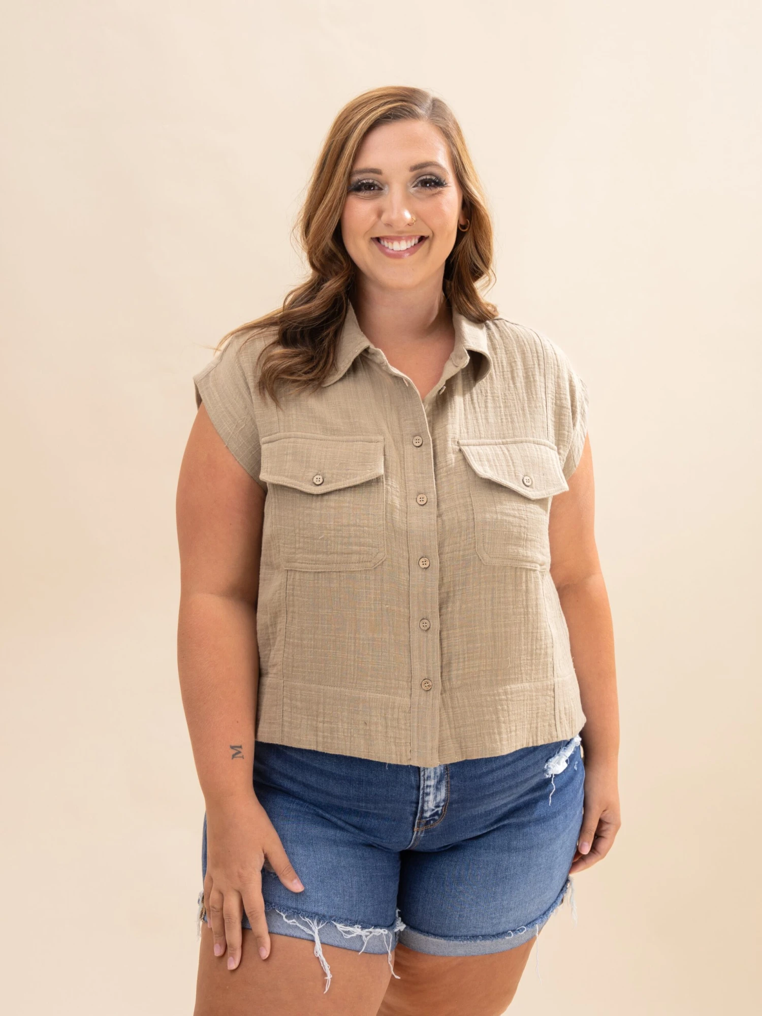 Features: Cotton Gauze, Cap Sleeve, Blouse