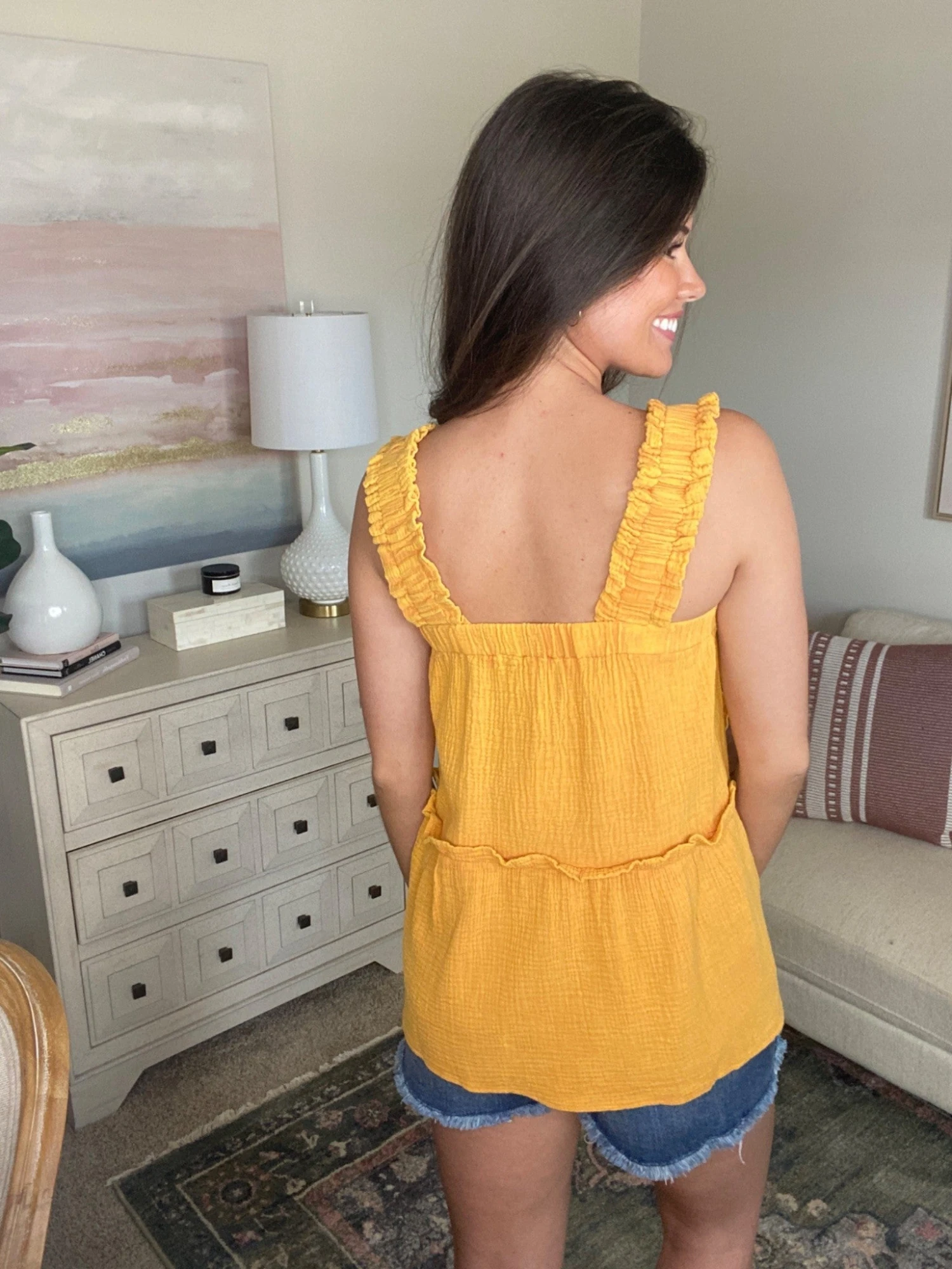 The “Couple Vacation Top” has arrived! This tiered top is calling your name! We love the ruffled details on this one! With colors perfect for the summer, you do not want to miss out here! Pairs perfectly with white denim, you know you want this one in your life!