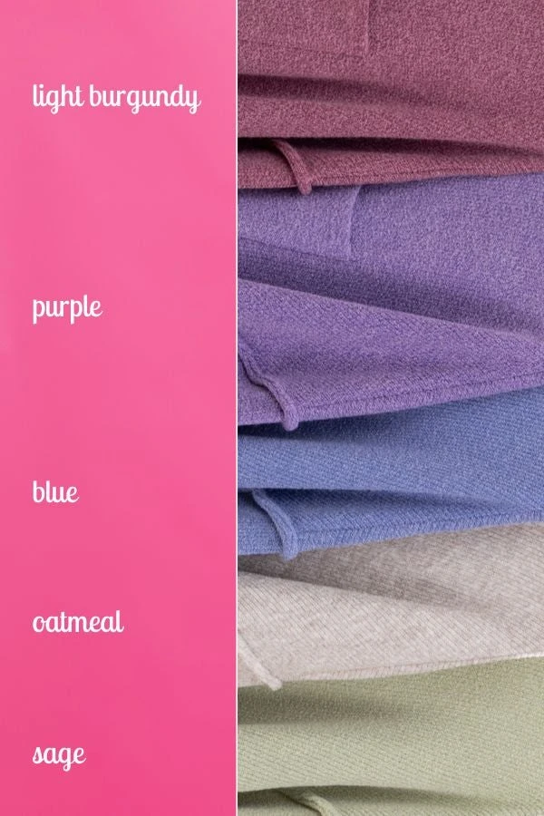 | Color | Blue, Purple, Oatmeal, Light Burgundy, Sage |