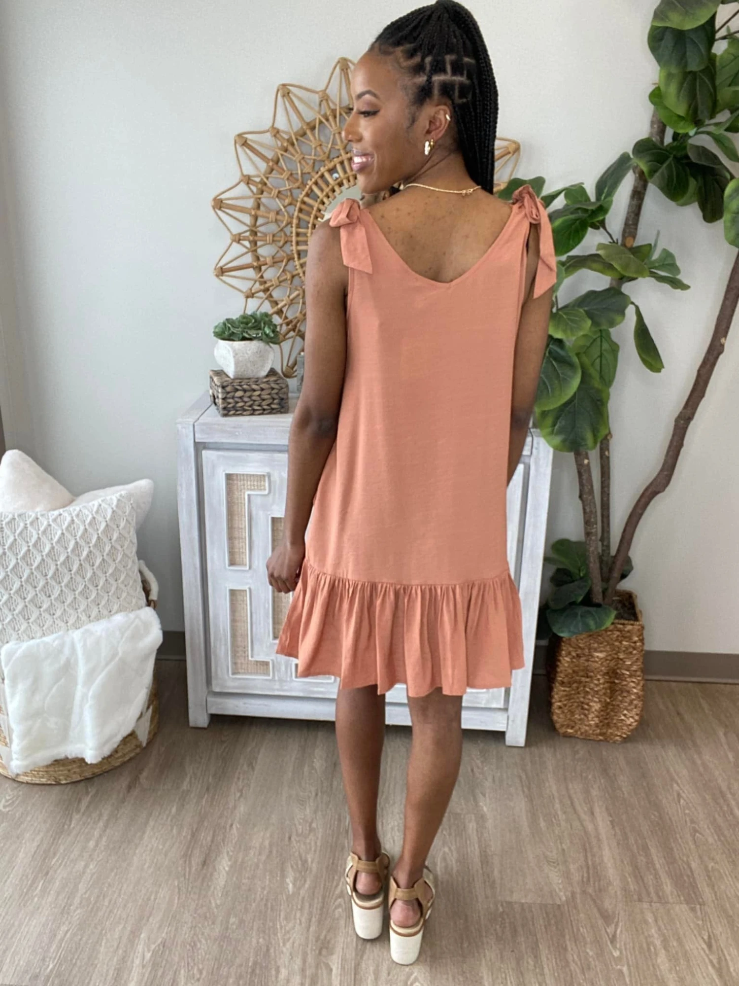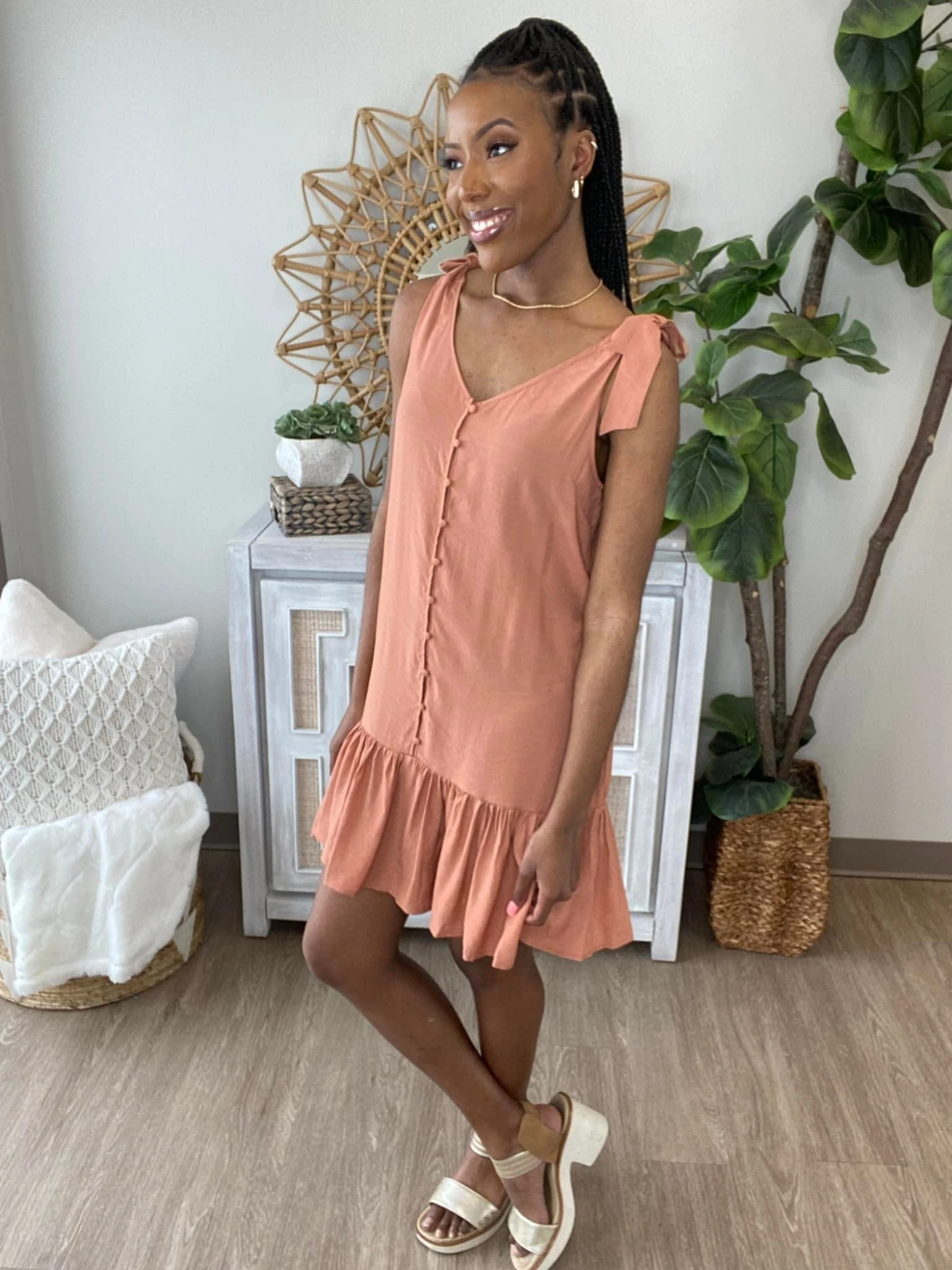 The “Creative Legacy Dress” has arrived! This adorable mini dress is just what you need for spring! We are loving the shoulder ties and summary down look! And it has pockets! Be sure to snag one before they are gone!