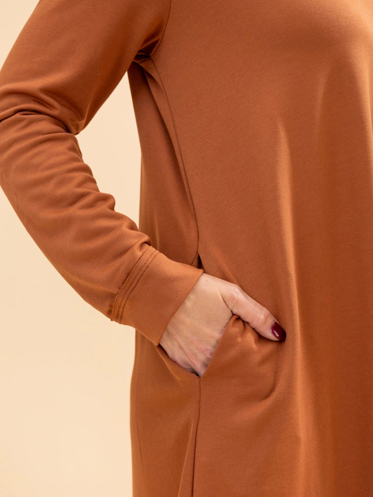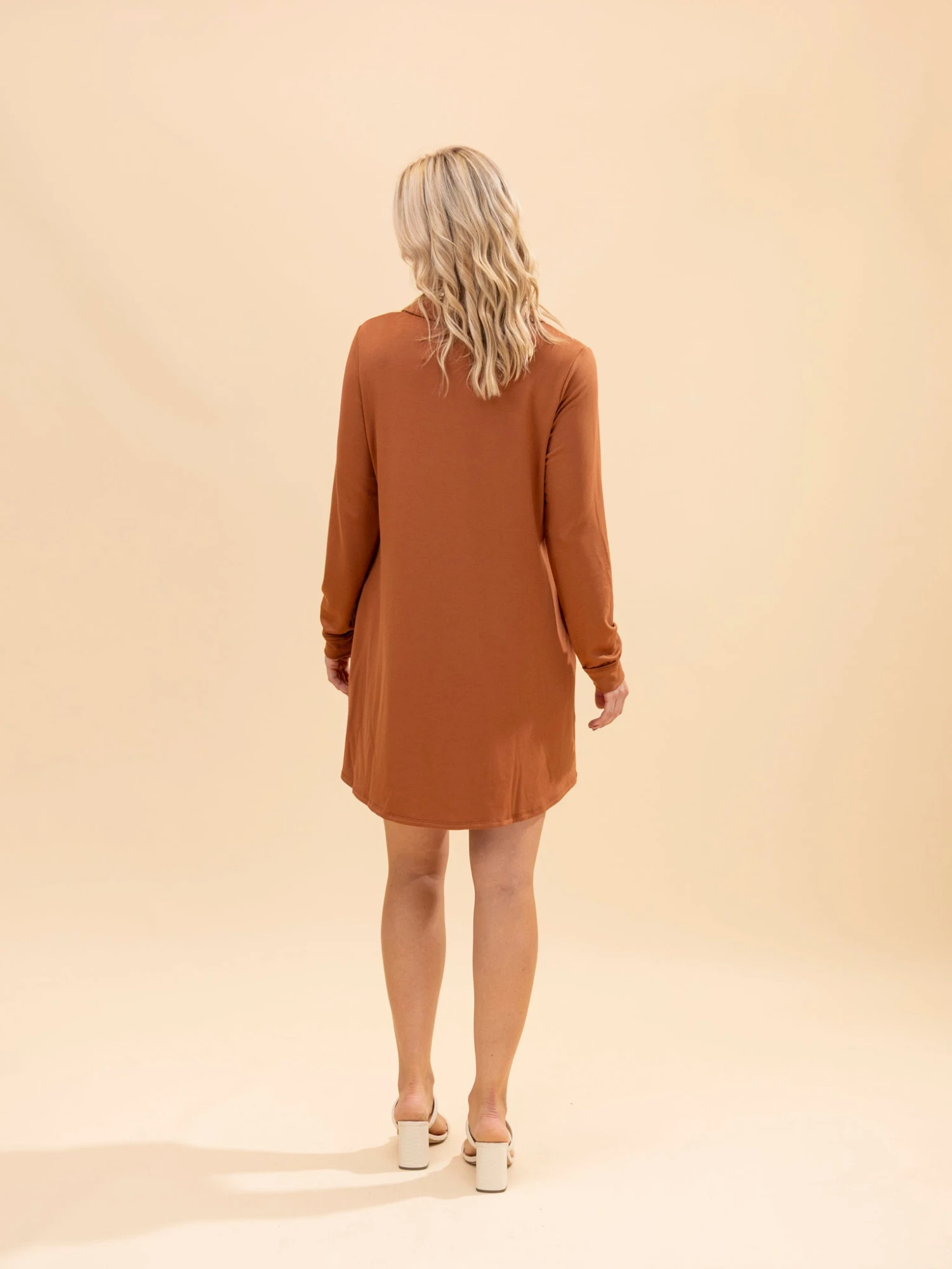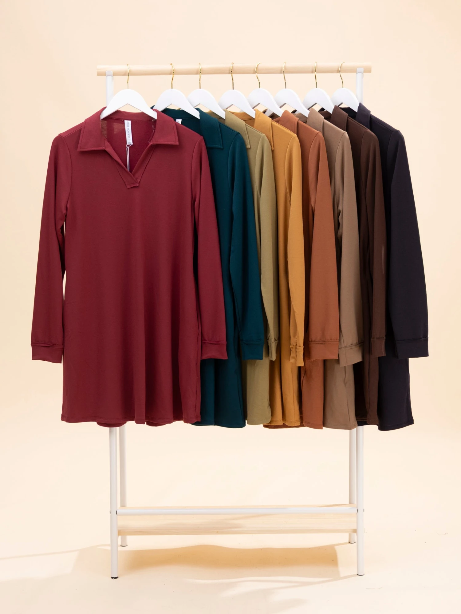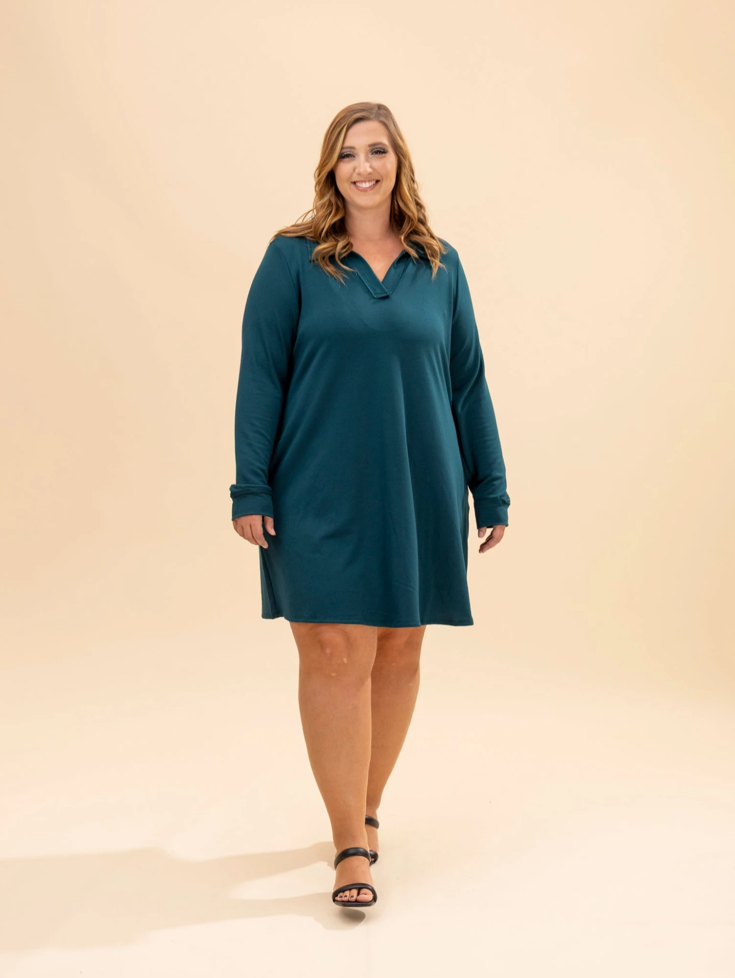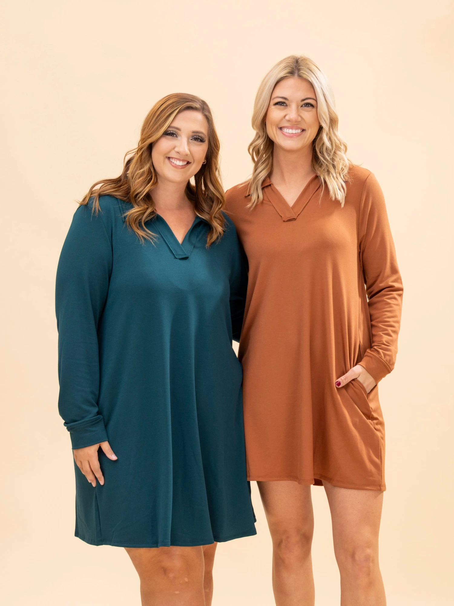 Features: Collar, V Neck, Long Sleeves, Pockets, Solid Dress