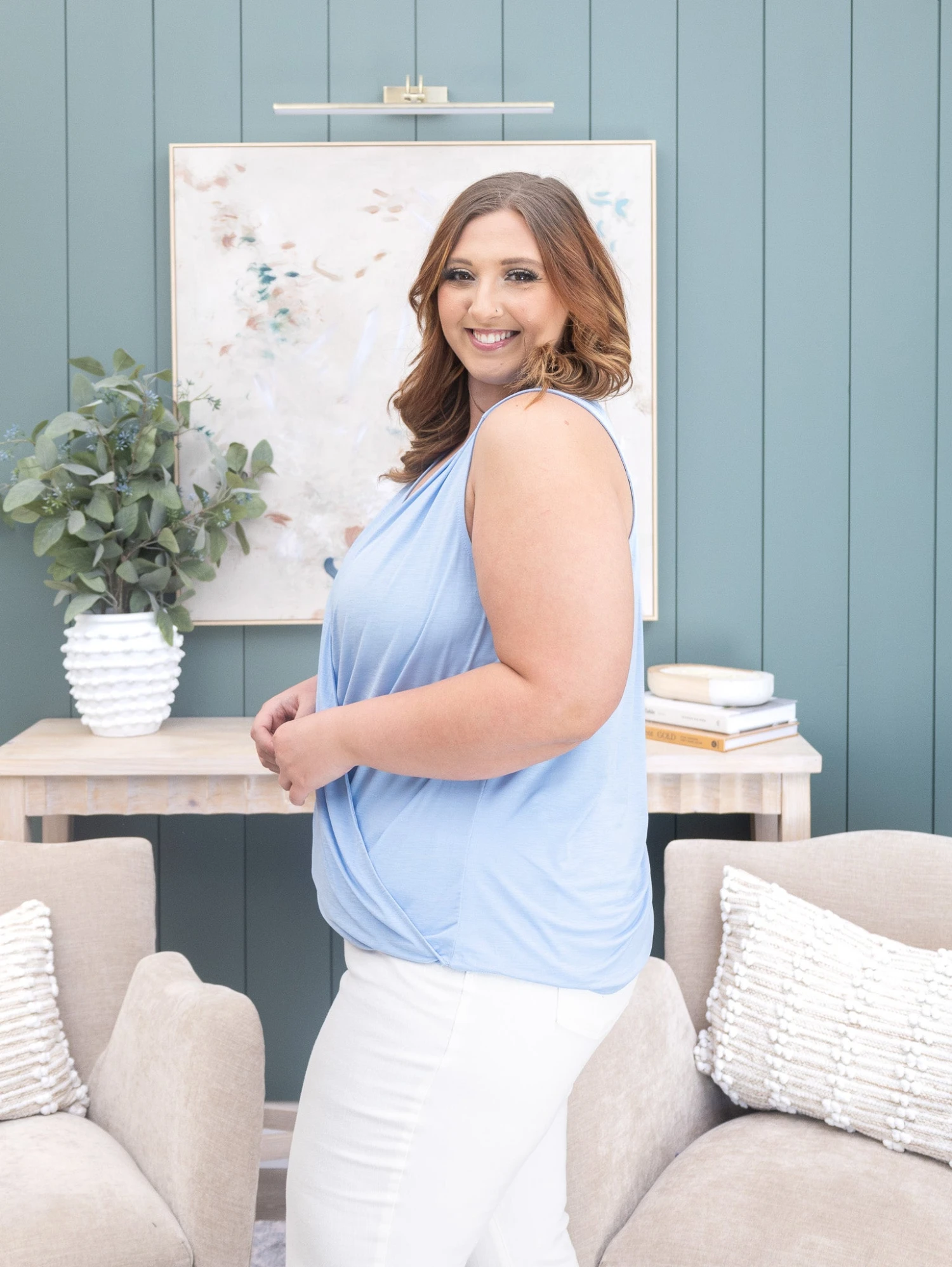 Brittany (short blonde hair) is 5’10, 36B bra, typically wears size S in tops and 3 in denim. Wearing size S