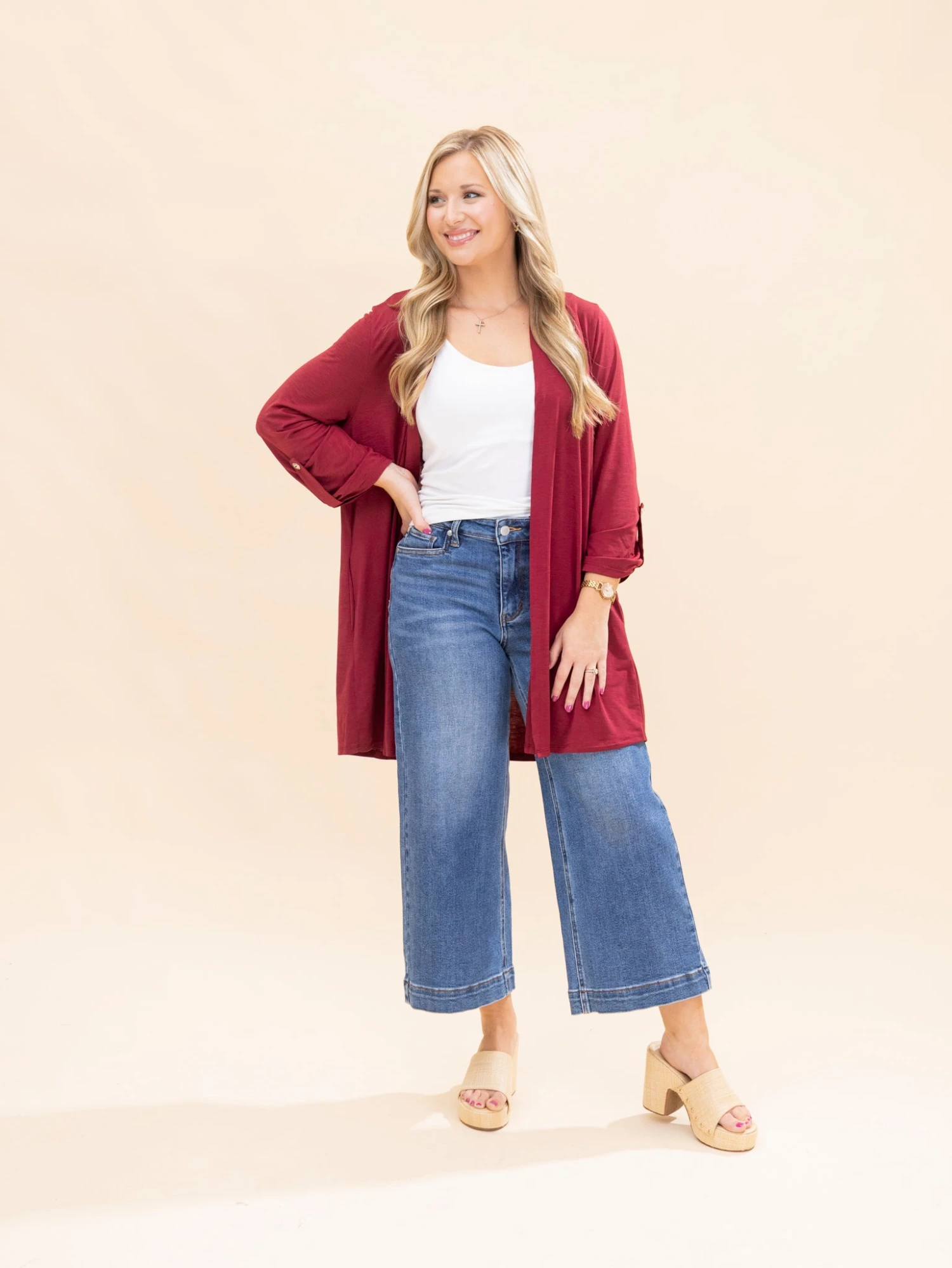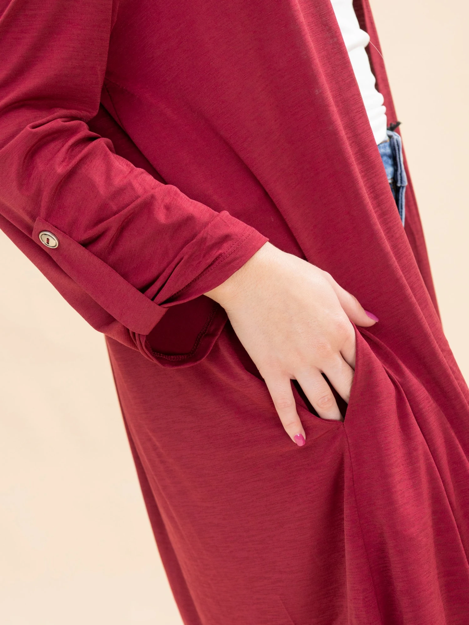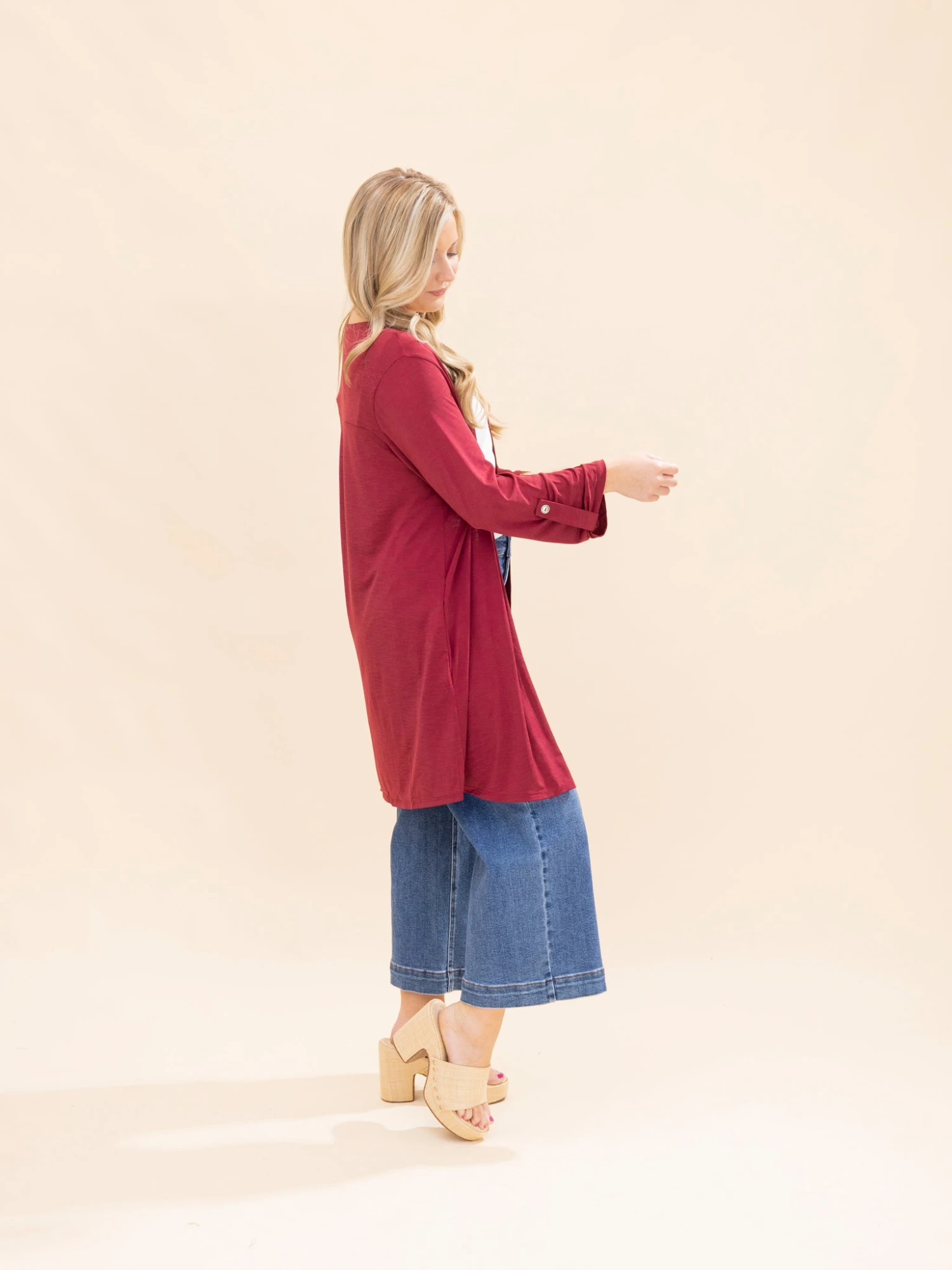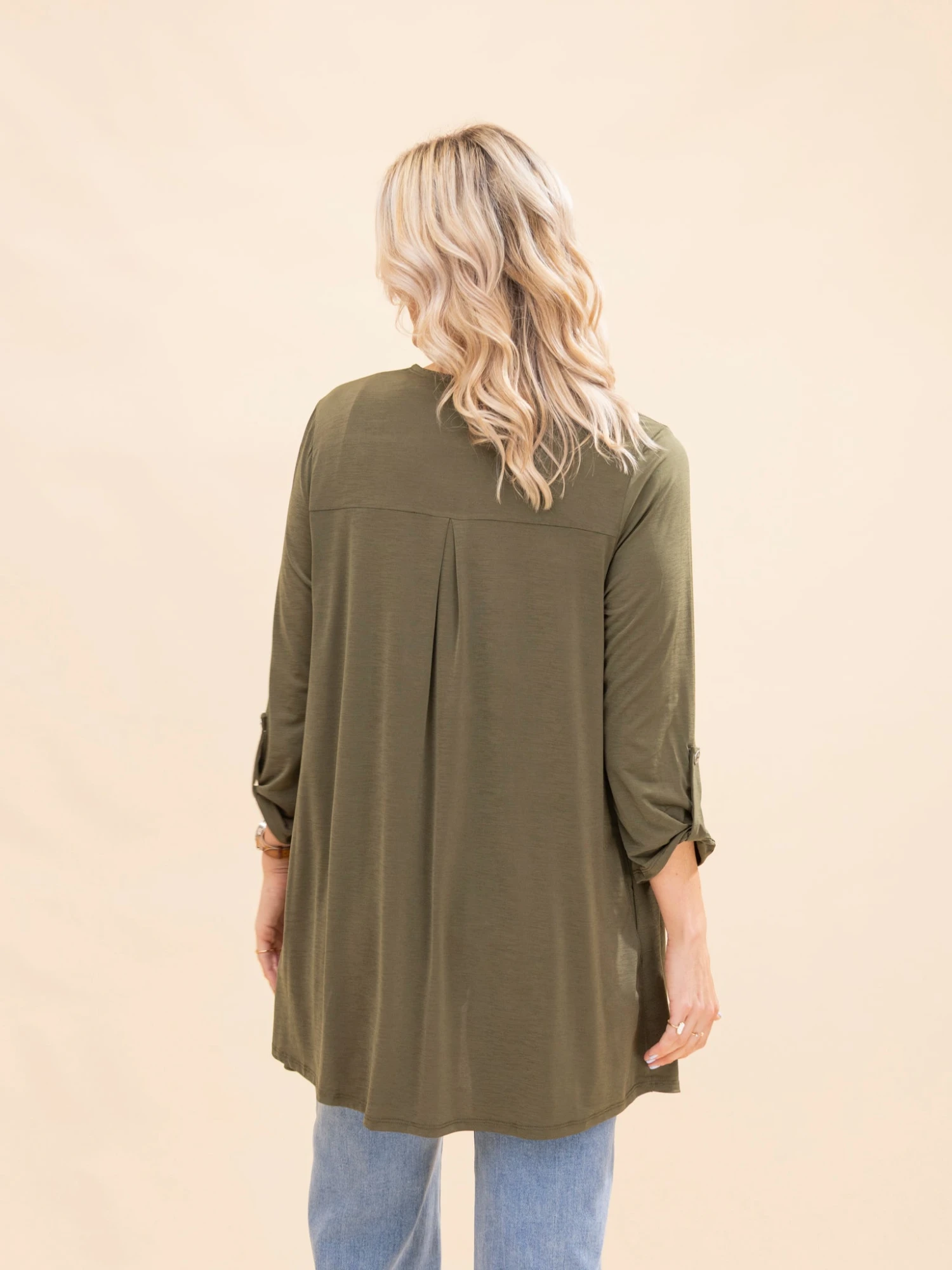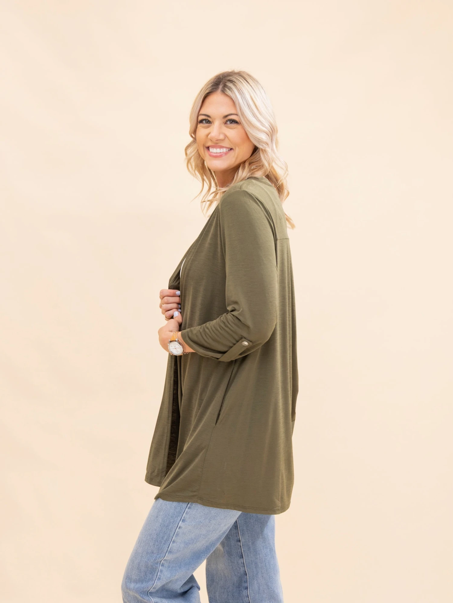 Features: Open Front, 3/4 Button Sleeve, Pockets, Wrinkle Free