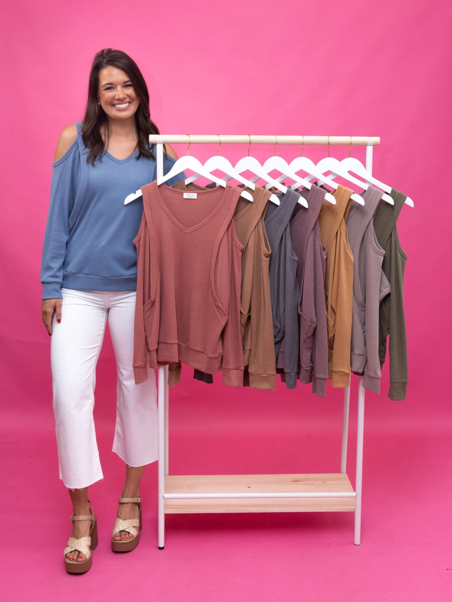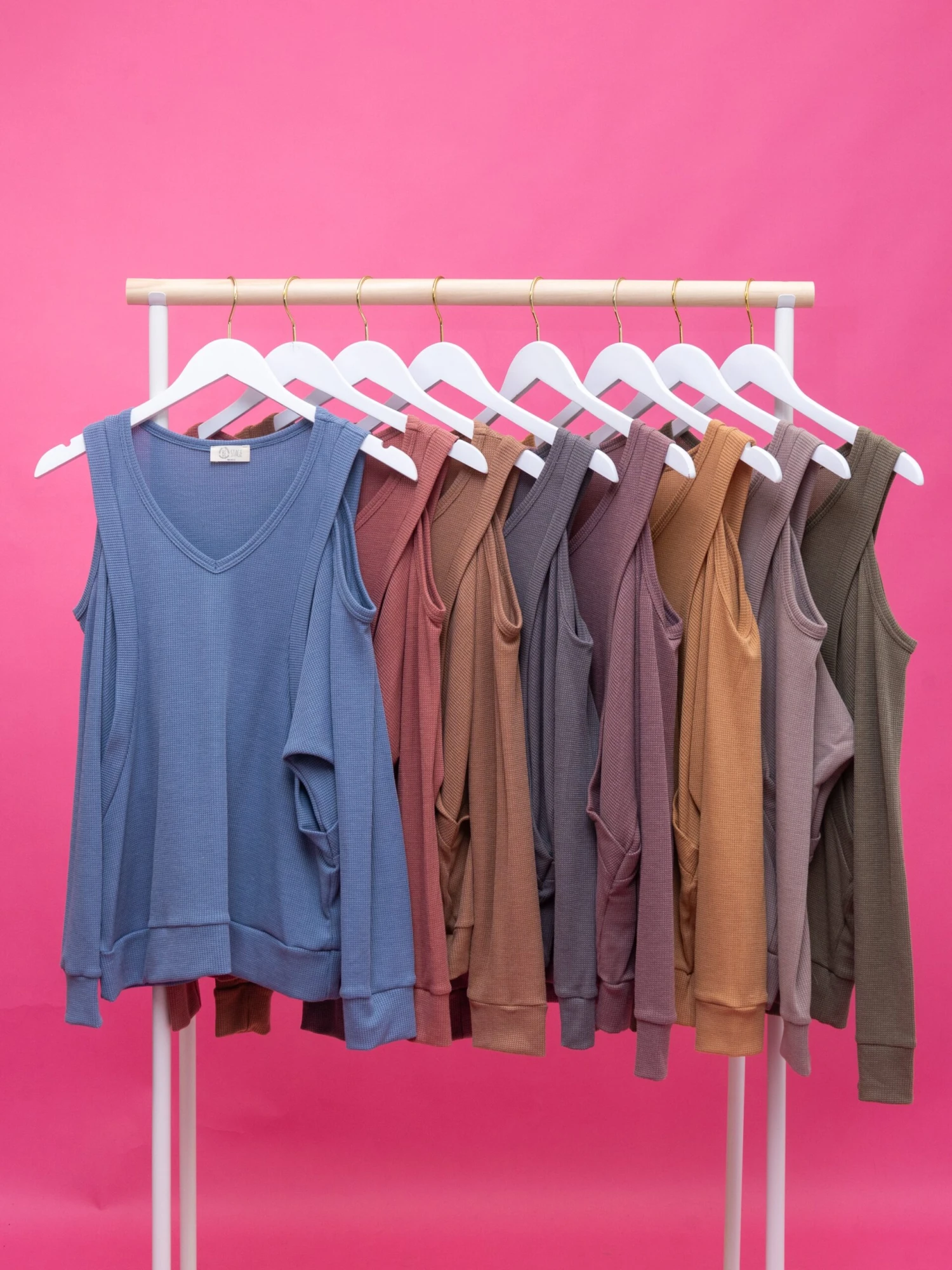 Features: Long Sleeves, Thermal Knit, V Neck, Cold Shoulder