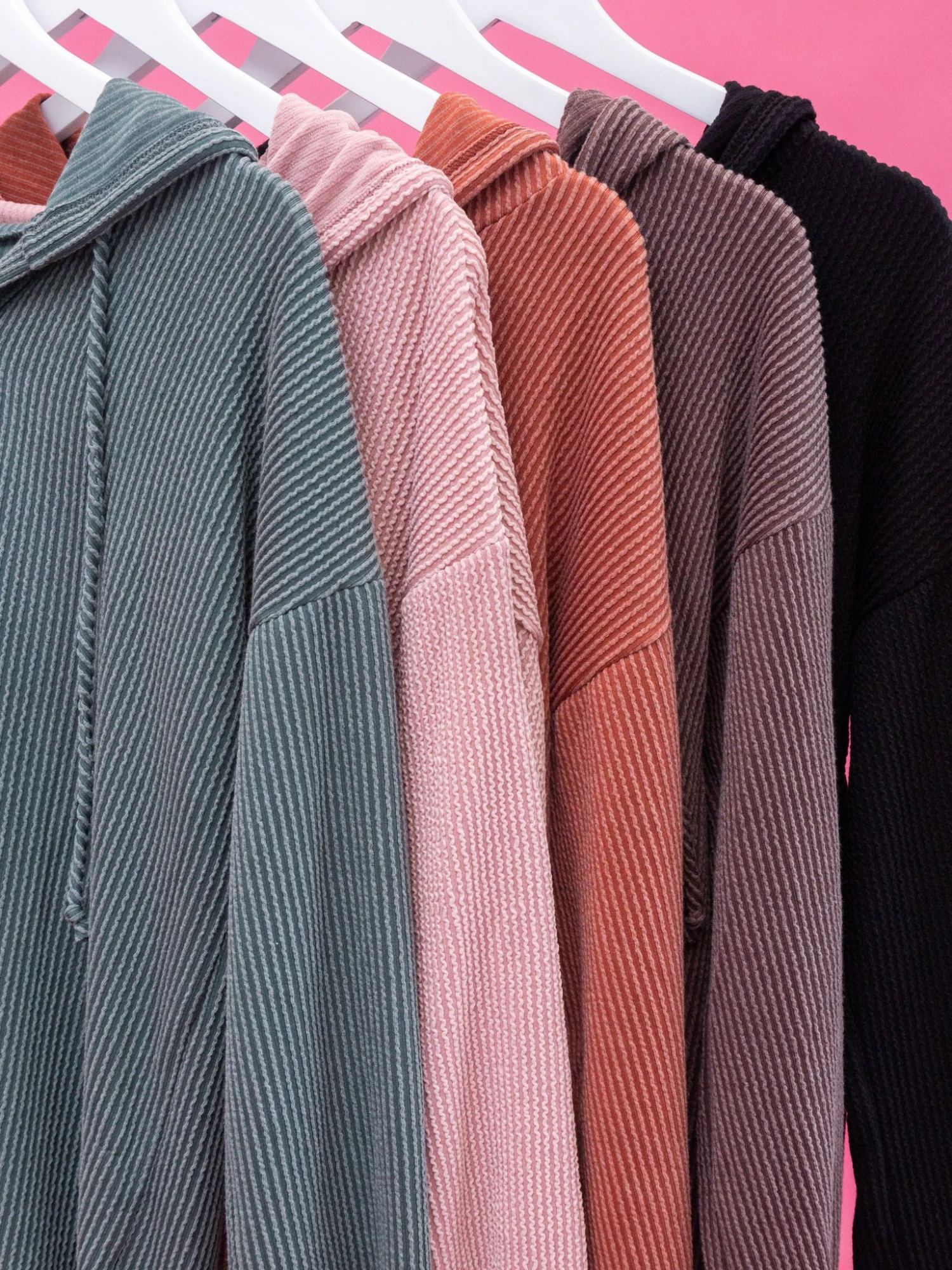 Features: Drawstring Hoodie w/ Buttons,Long Sleeves,Raised Rib