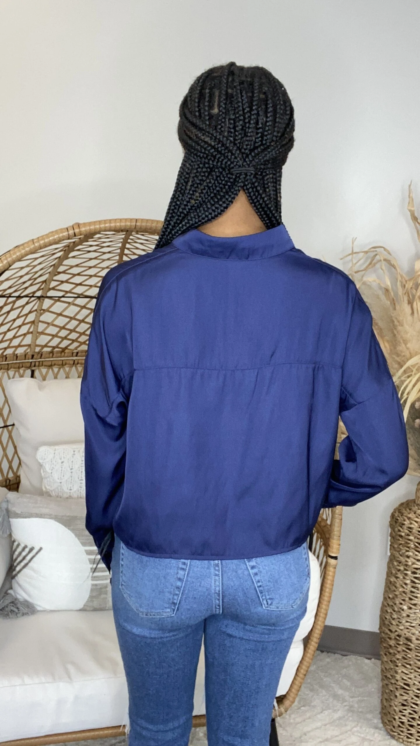 Features: Collar, Button Front, Button Cuffs, Long Sleeve, Tie front
