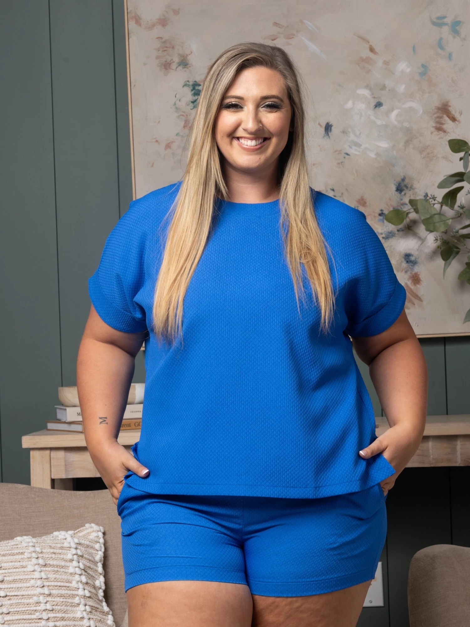 Erin is 5’8, 36C bra, typically wears size L/XL in tops and 14/16 in denim. Wearing size L