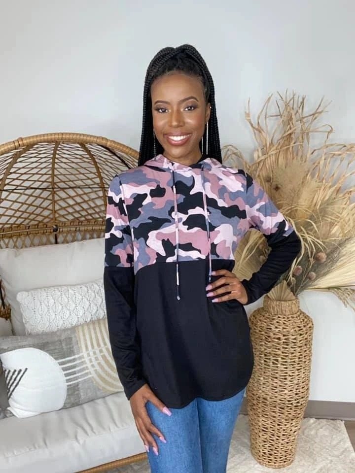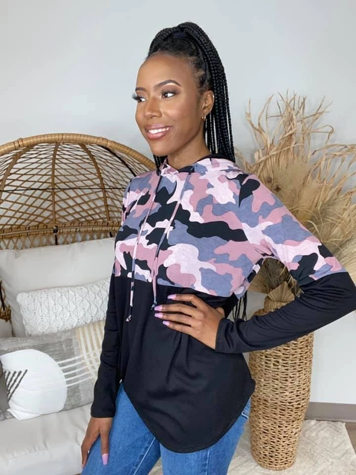 The “First Lover Top” is here! This super cute top has a hood and is perfect for the colder weather! The pink camo print is adorable! Super easy to dress up or dress down! Be sure to snag one while you can!