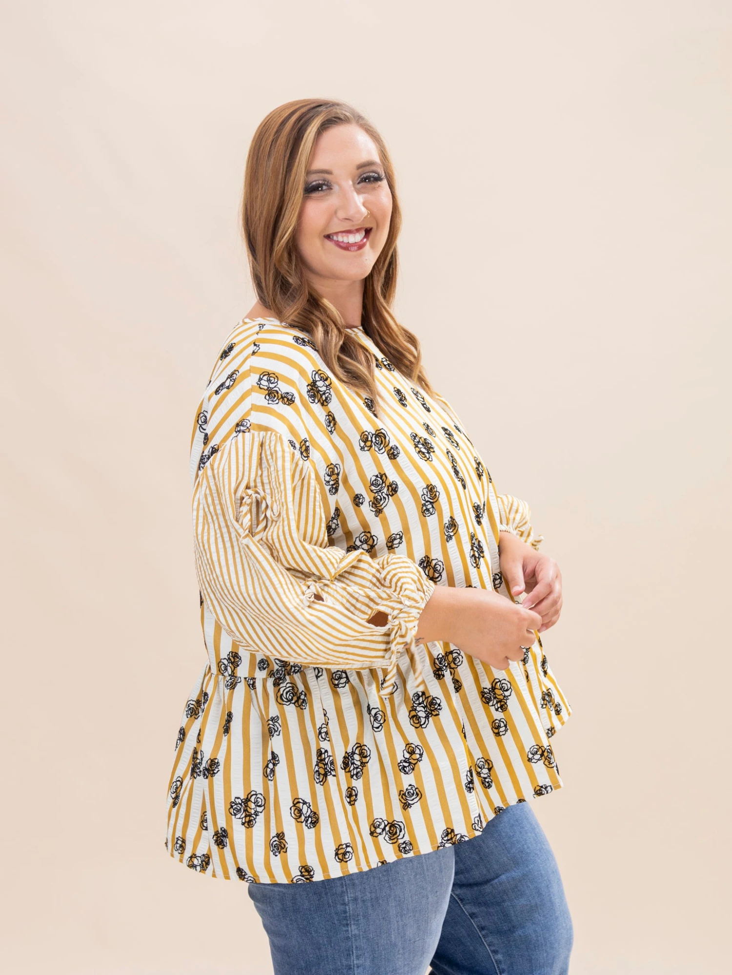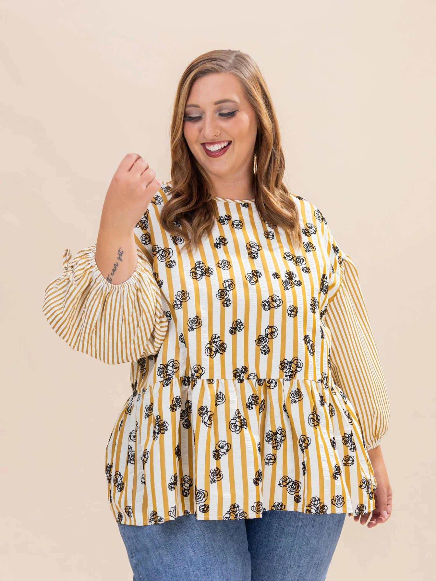 Erin is 5’8, 36C bra, typically wears size L/XL in tops and 14/15 in denim. Wearing size 1X