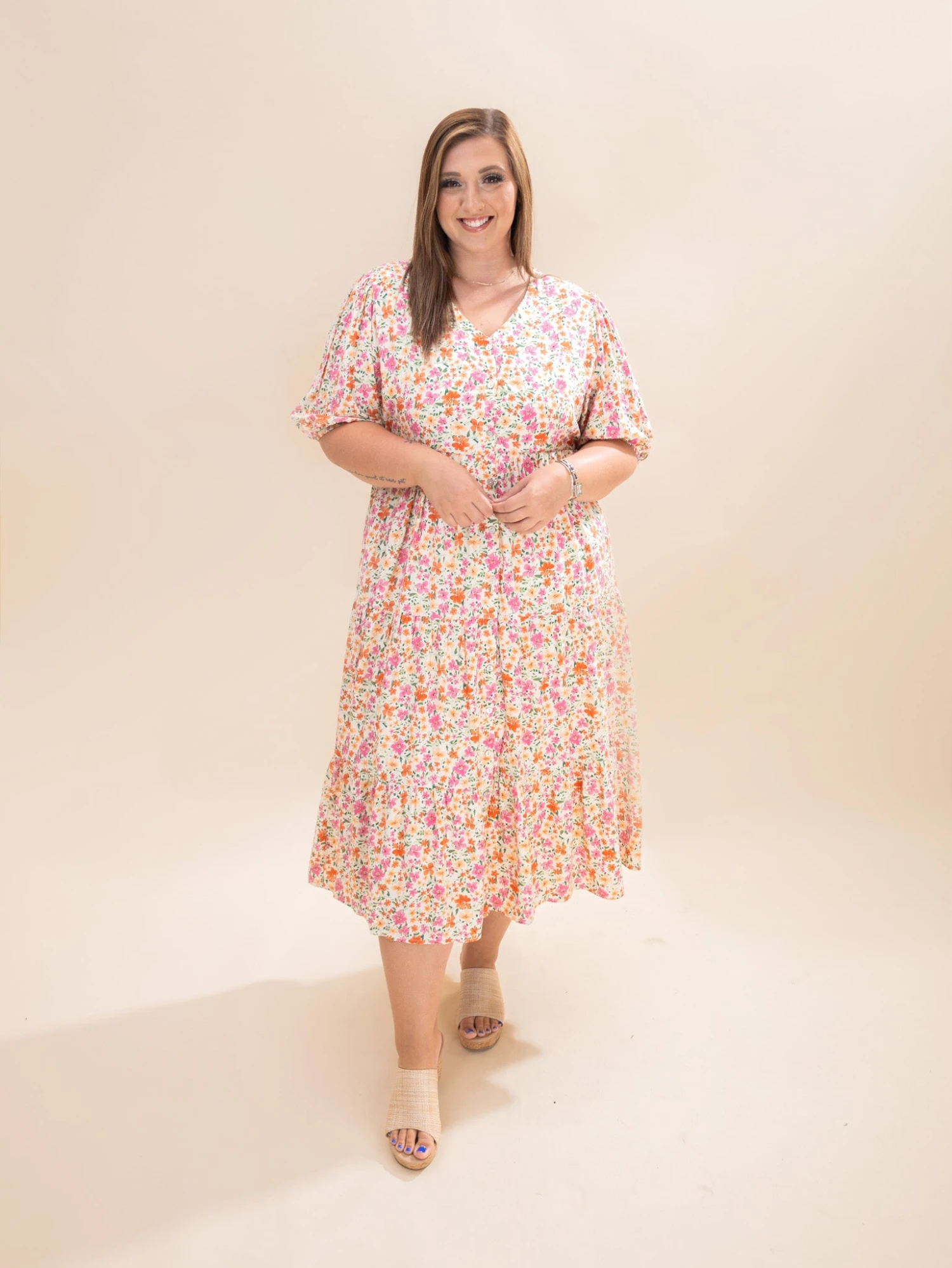 Features: V Neck, Short Sleeves, Pockets, Elastic Waist, Lined, Tiered, Floral