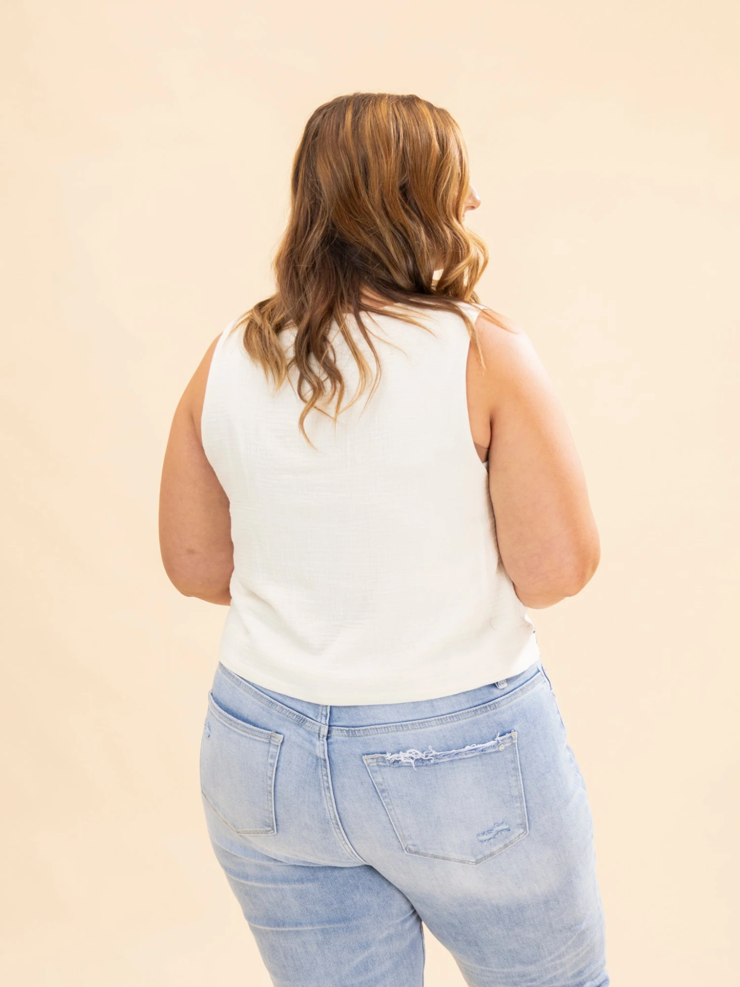 Erin is 5’8, 36C bra, typically wears size L/XL in tops and 14/15 in denim. Wearing size L