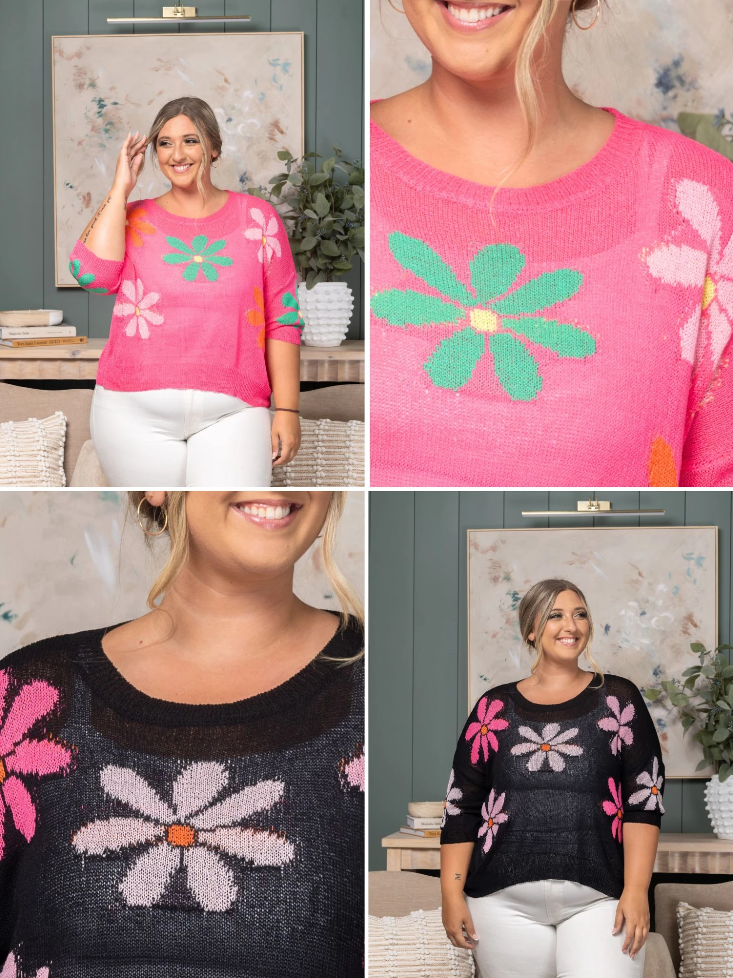 Features:Floral Pattern, Half Sleeve, Knitted