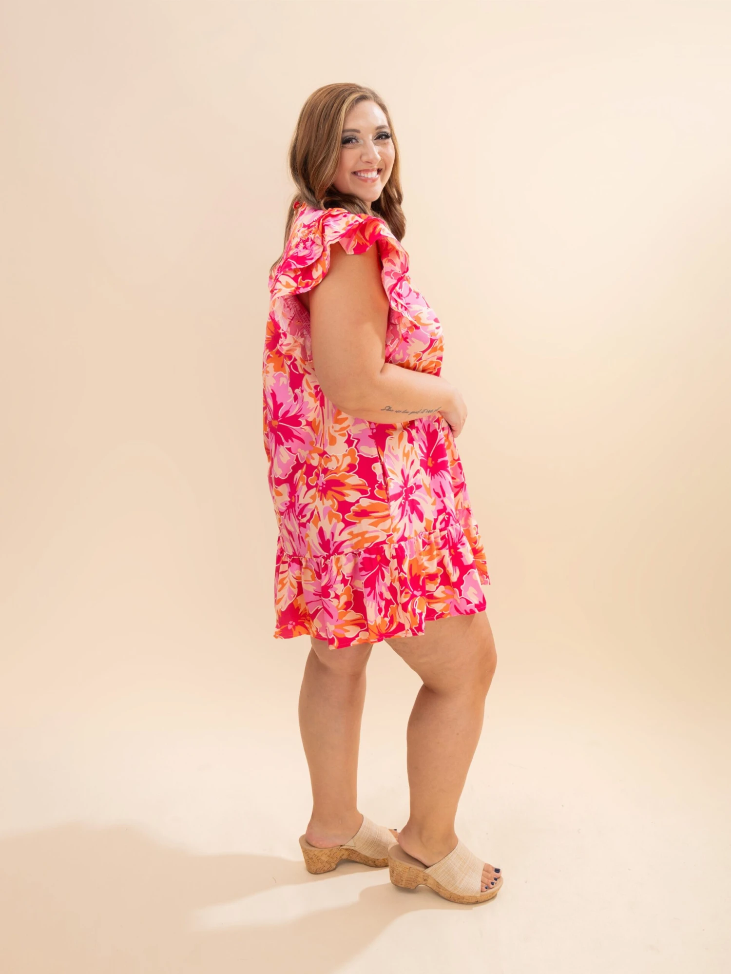 Features: Floral Print, Mock Neck, Ruffle Sleeve