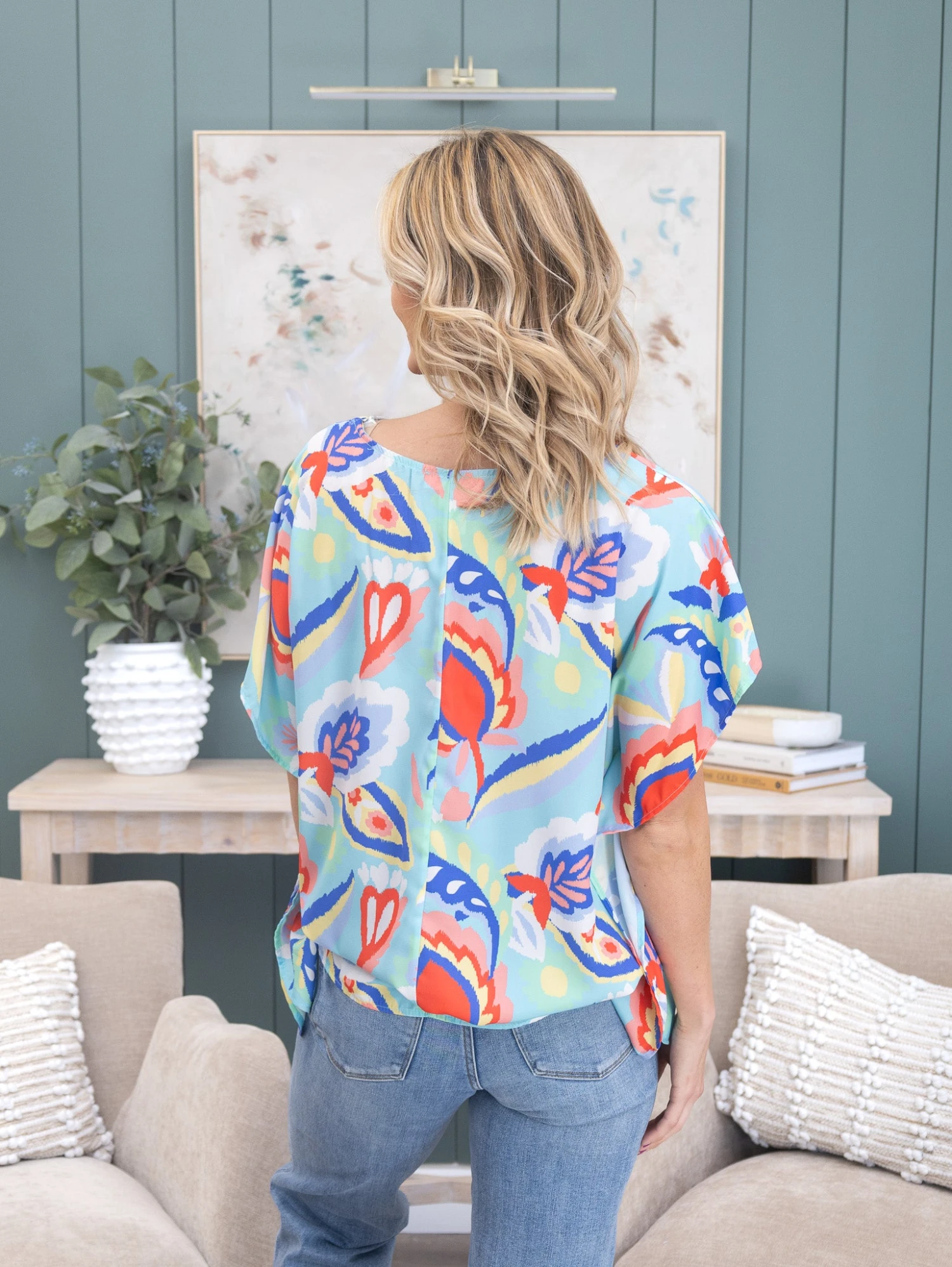 Features: V Neck, Side Slits, Printed