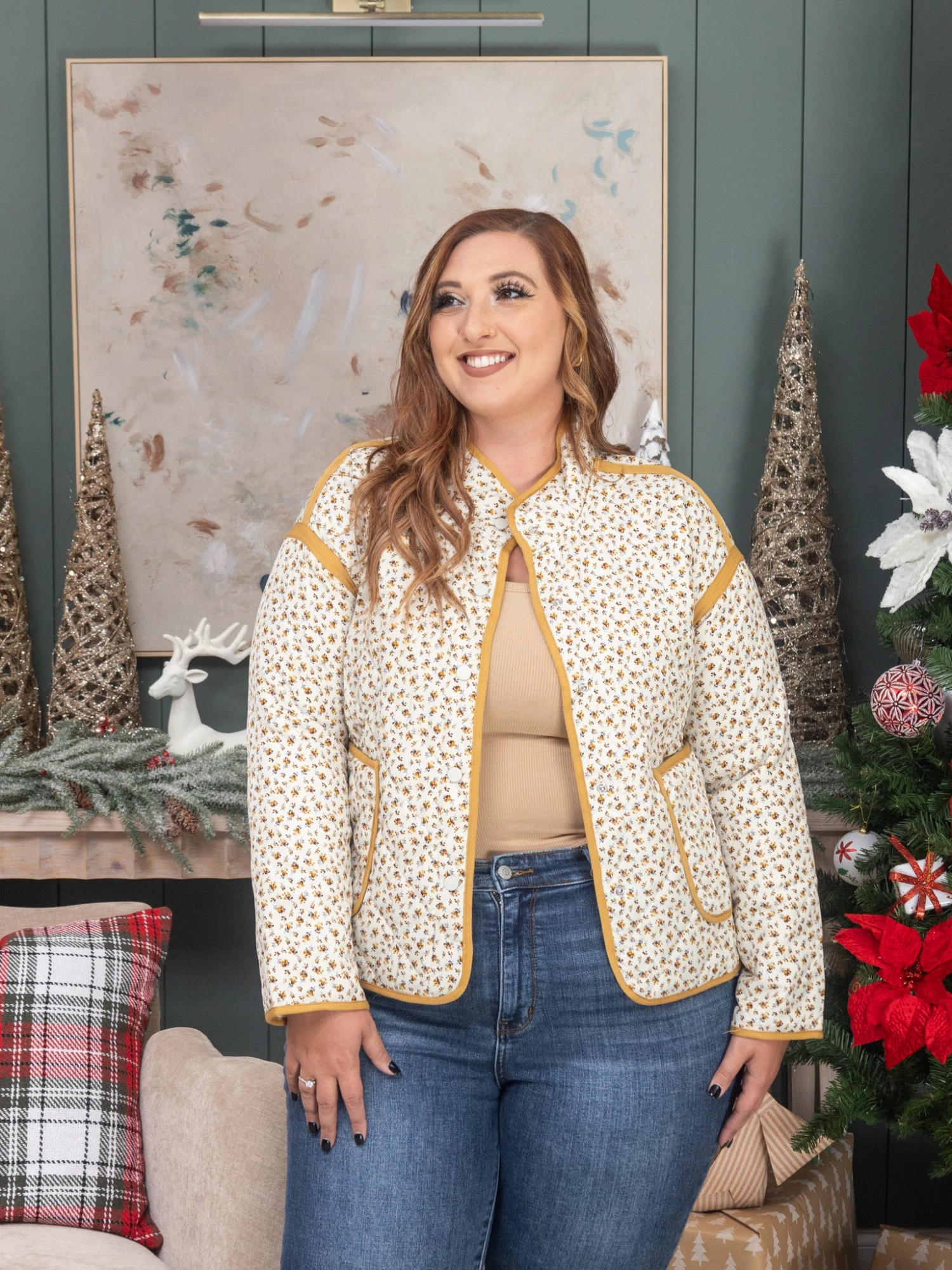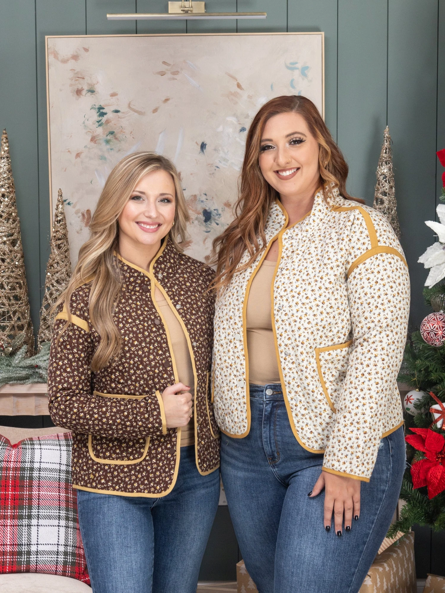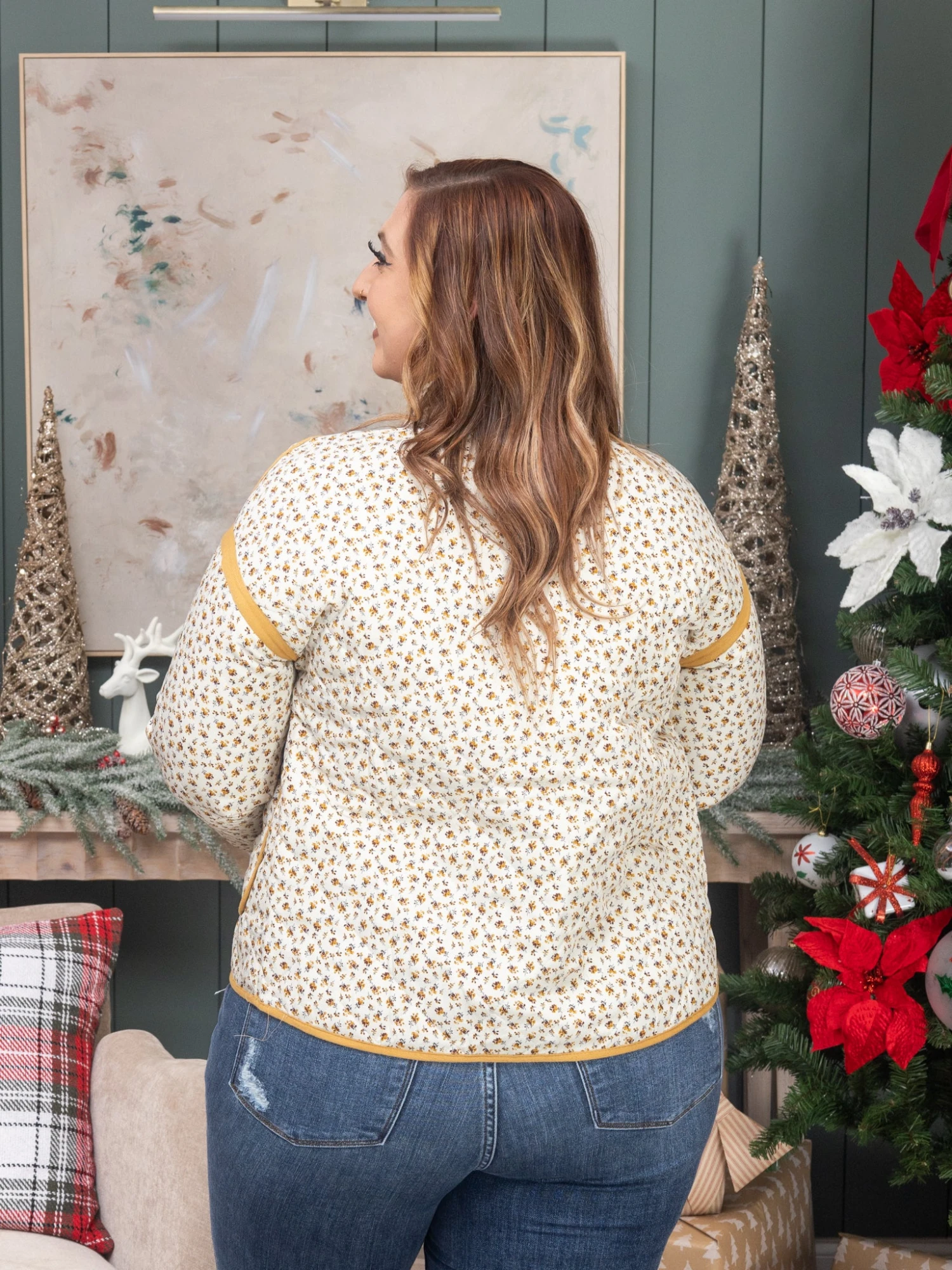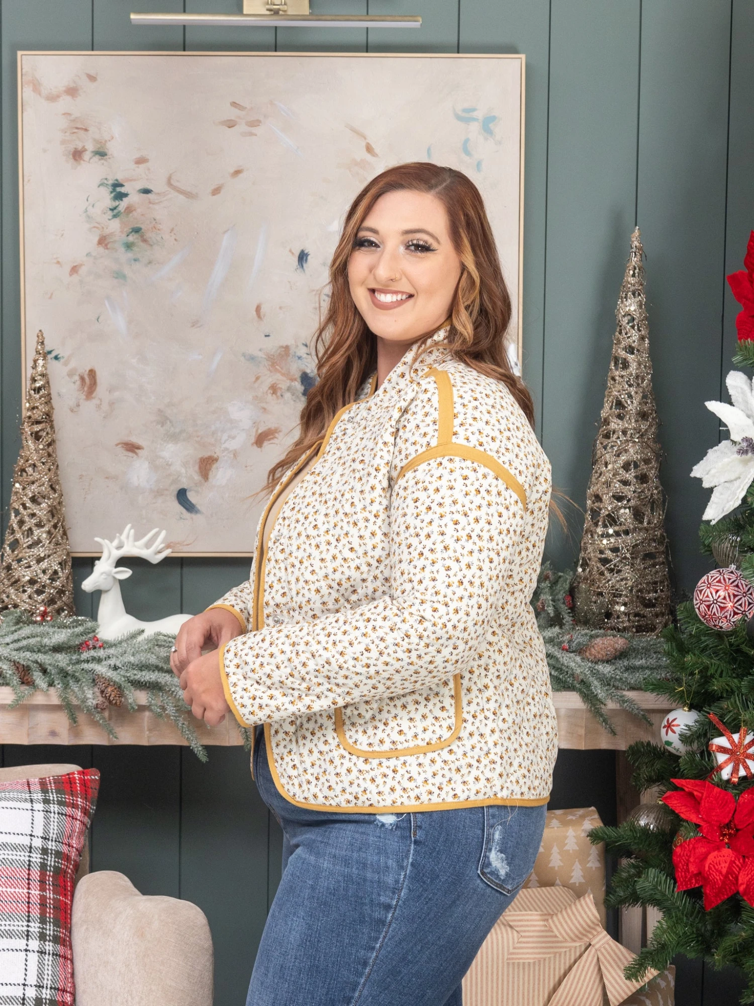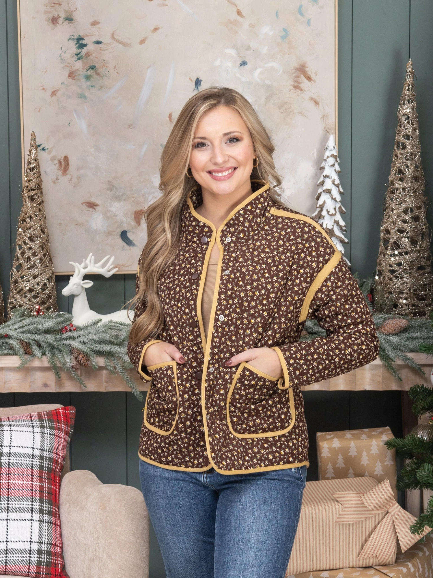 Features: Floral Printed, Quilted, Button Front, Long Sleeves