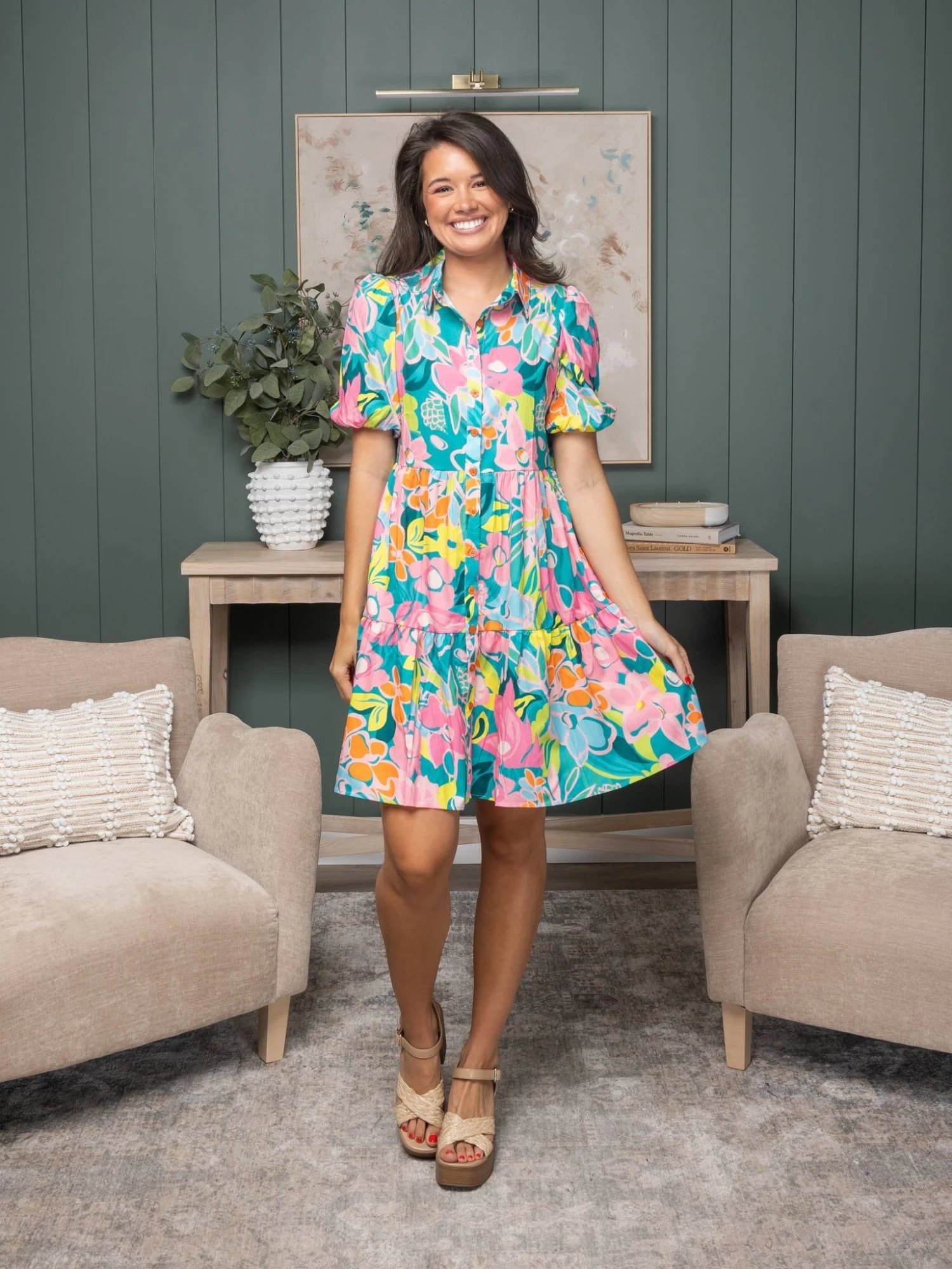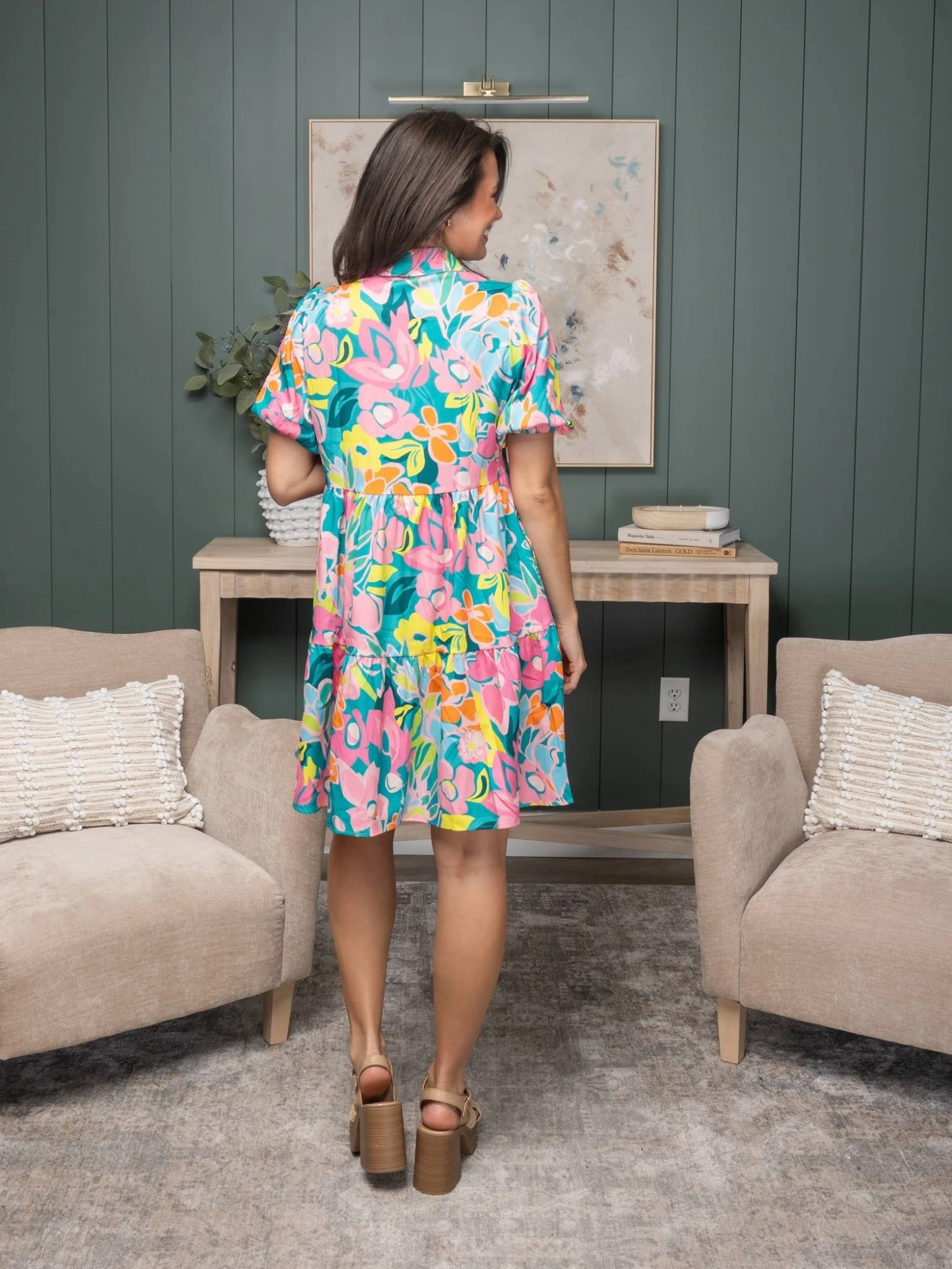 Floral Puff Sleeve Collar Buttoned Babydoll Dress | S – XL
