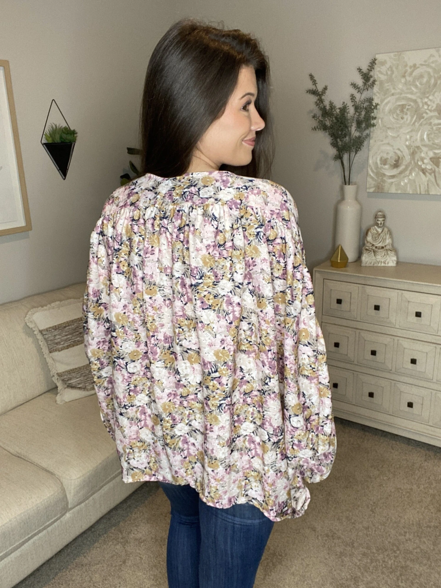 Features: Floral Print, Ruched Open Front, Cardigan