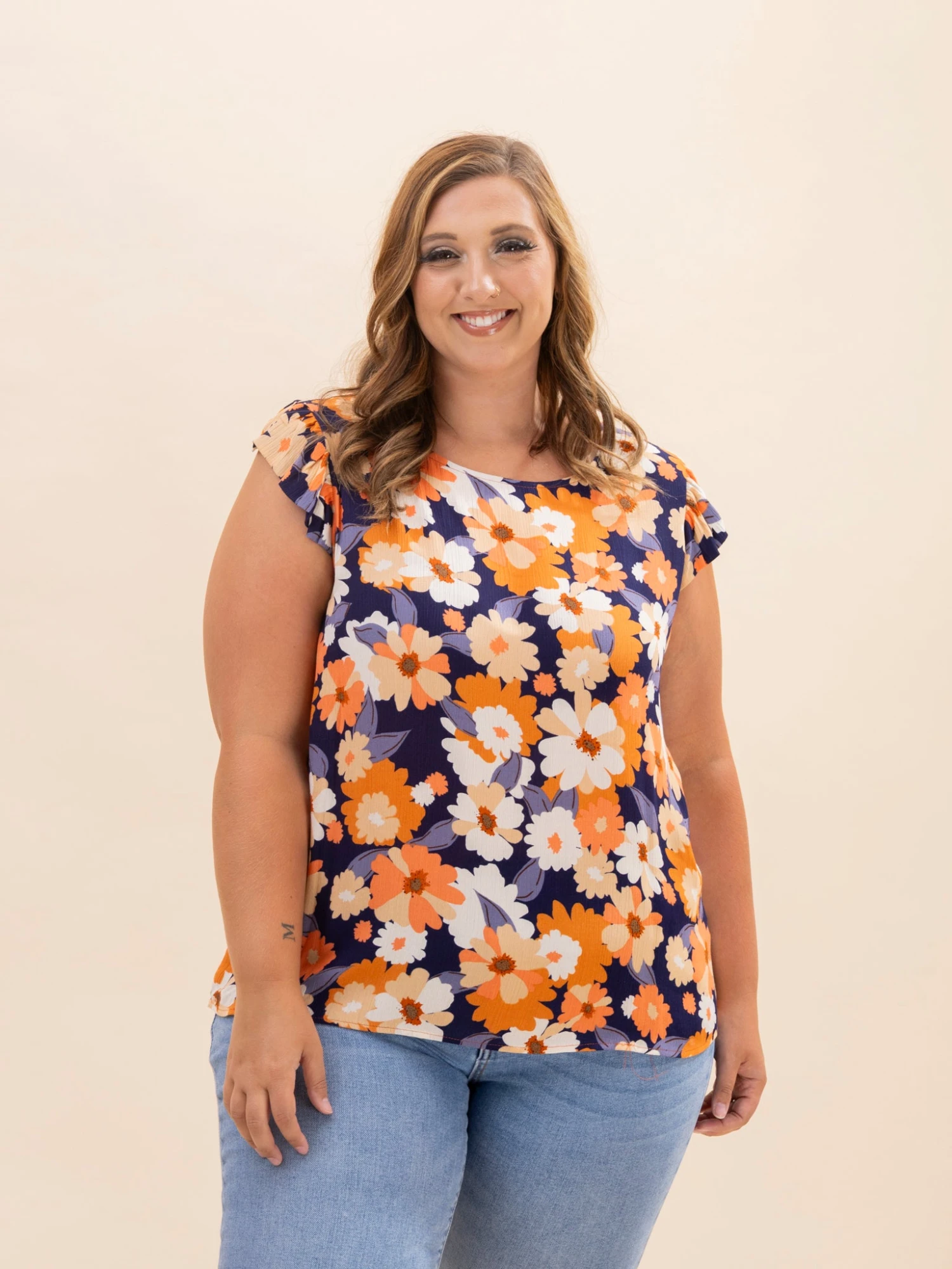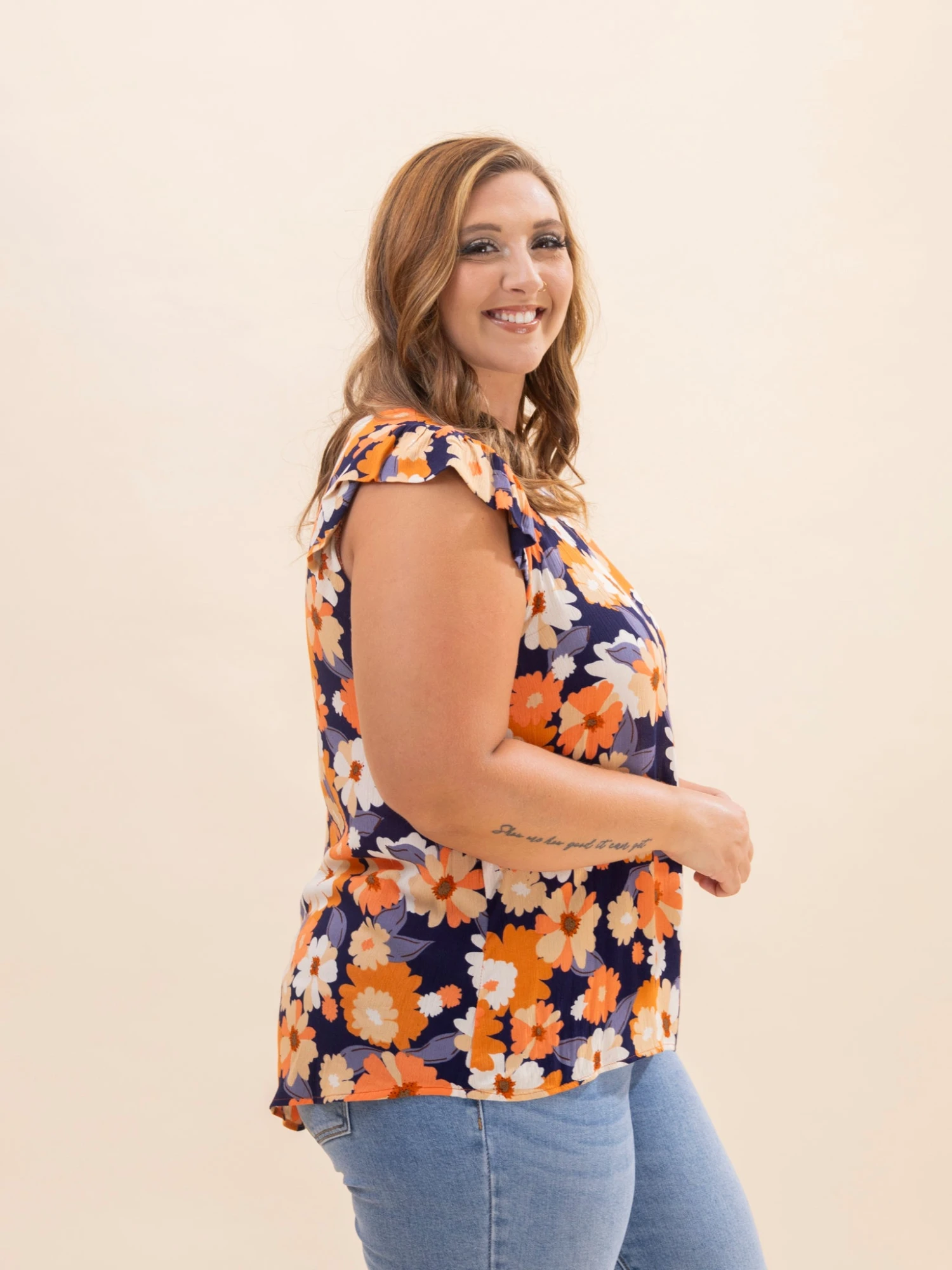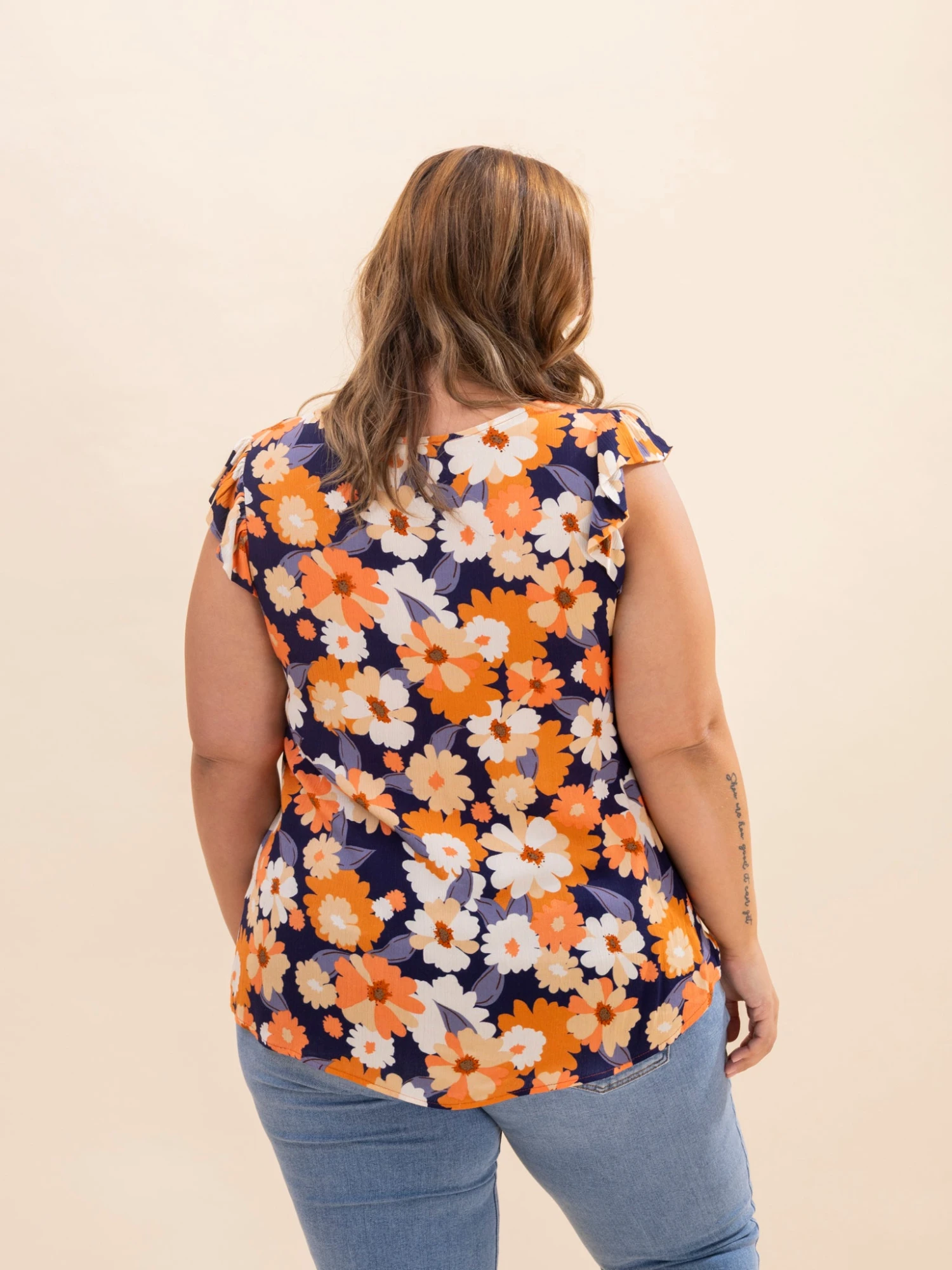 Erin is 5’8, 36C bra, typically wears size L/XL in tops and 14/15 in denim. Wearing size L