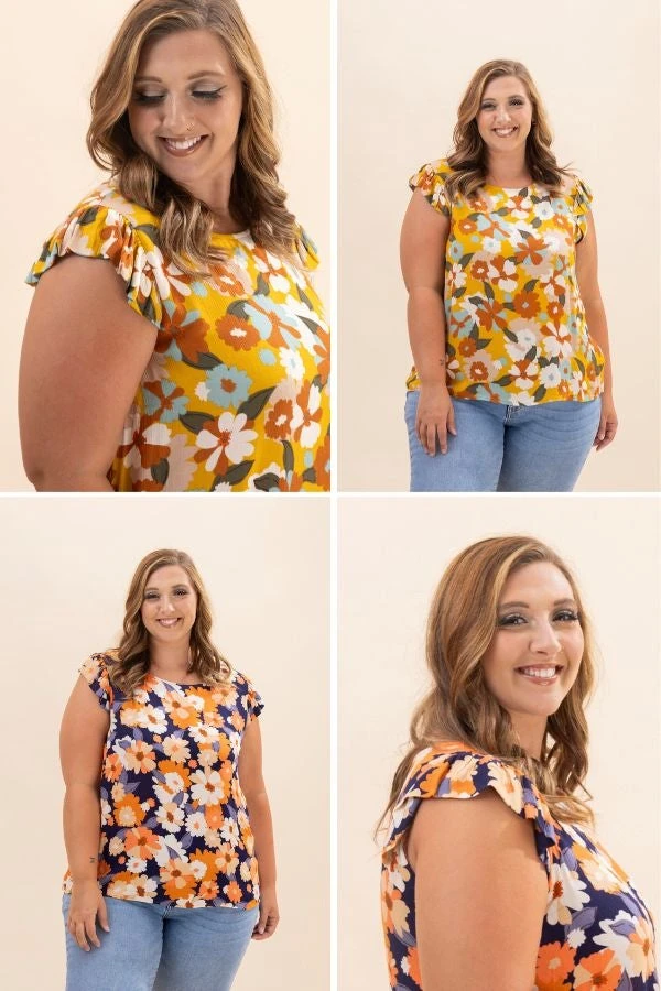 Features: Round Neck, Flutter Sleeves, Printed