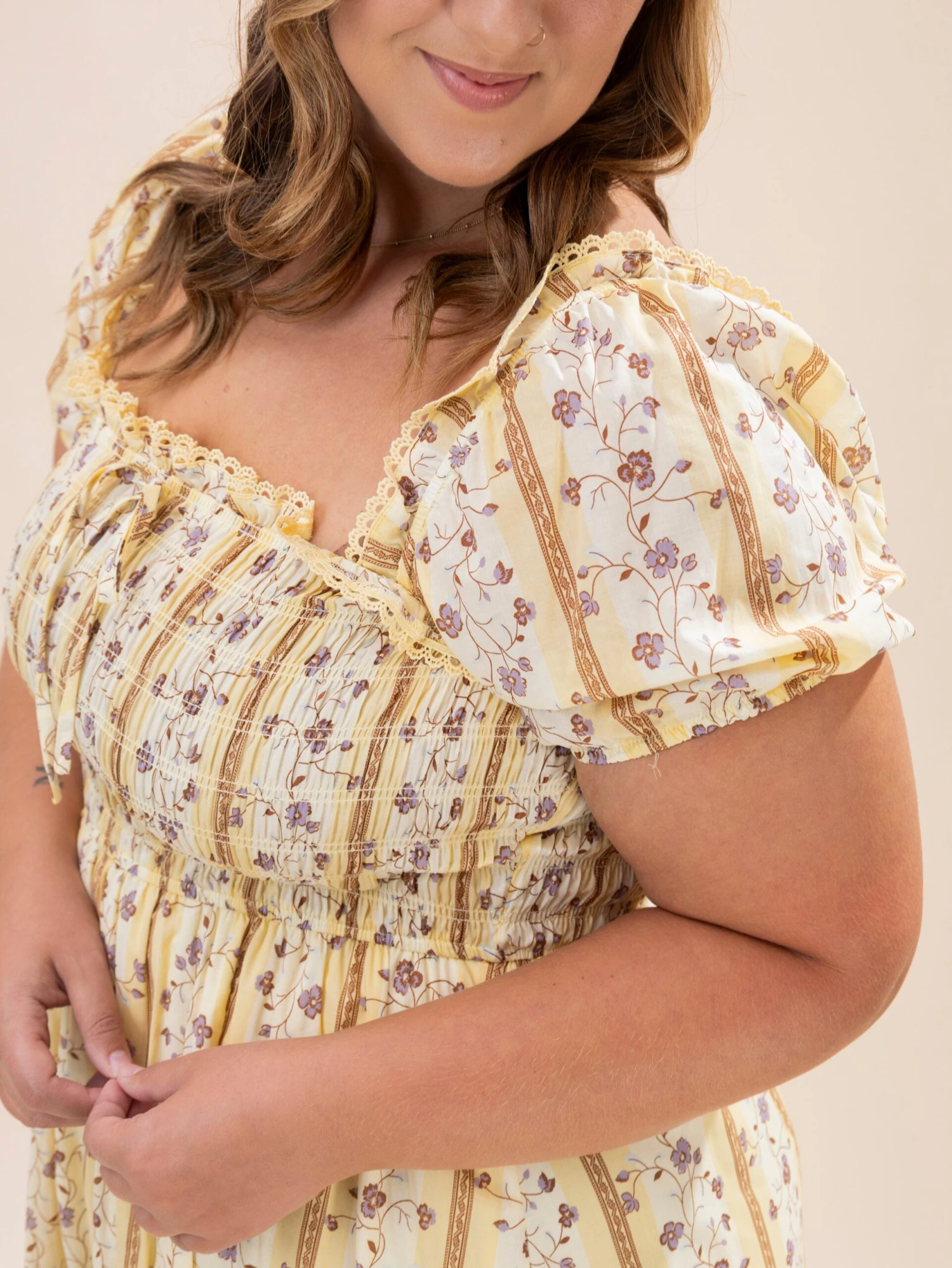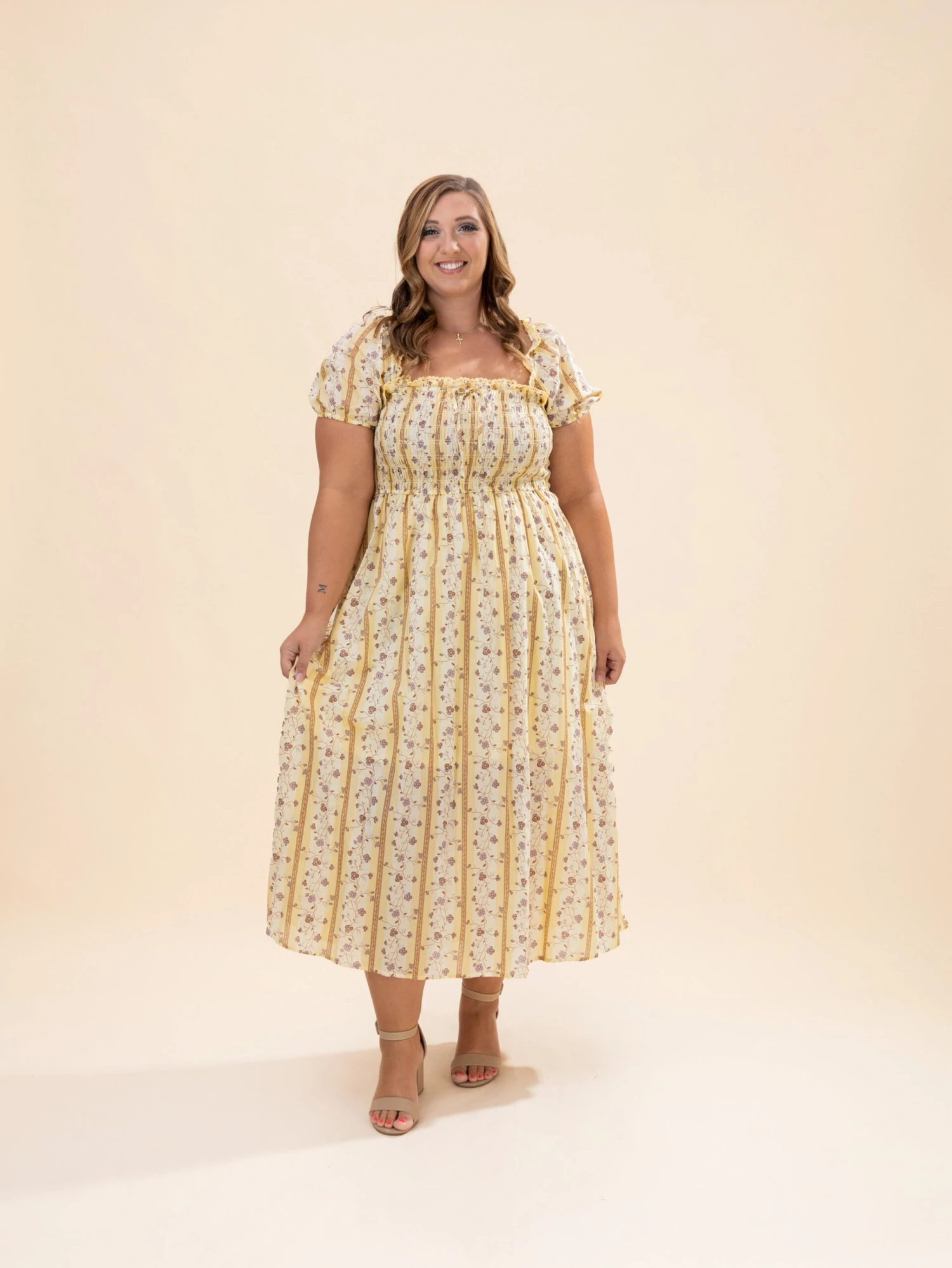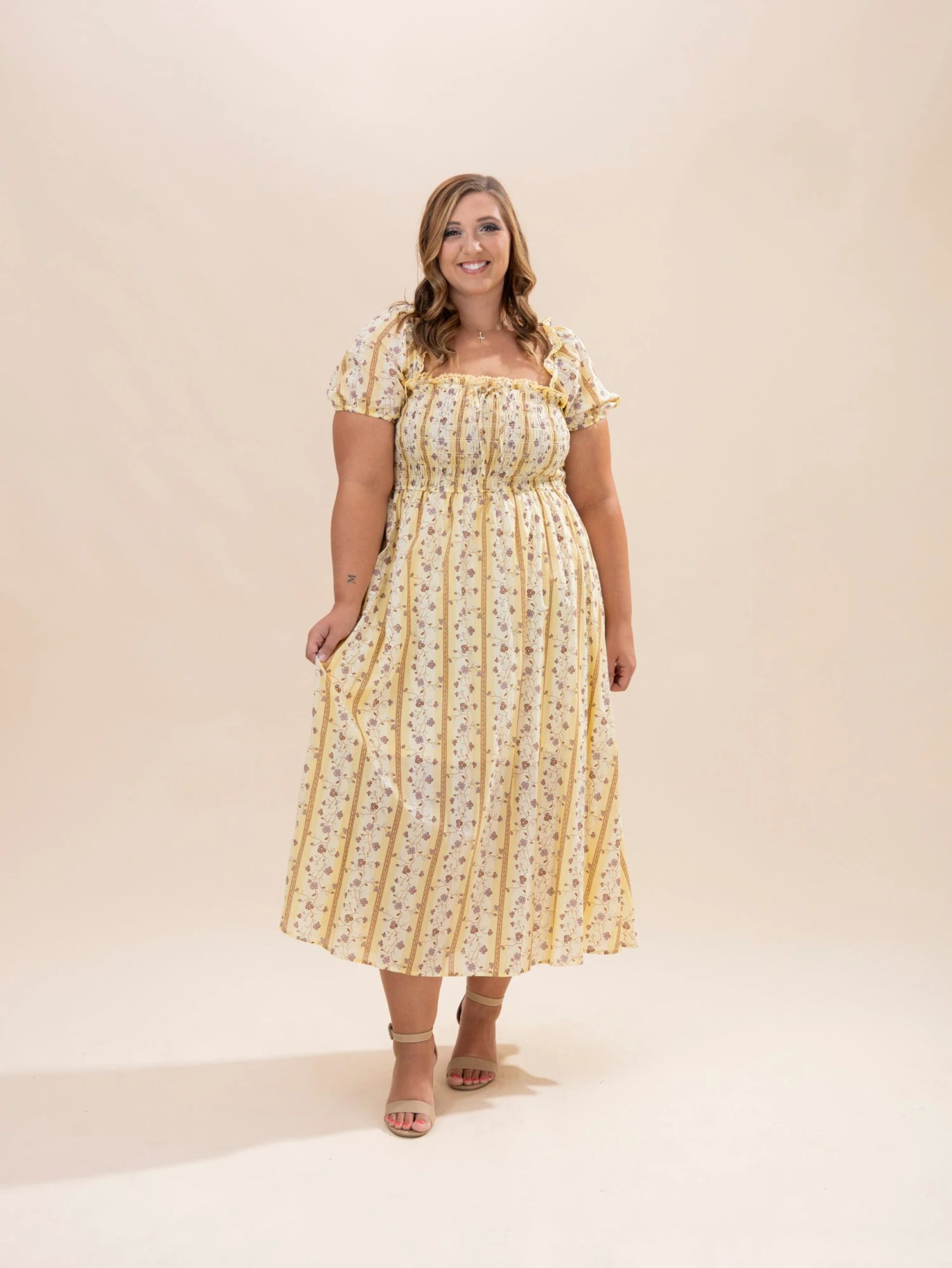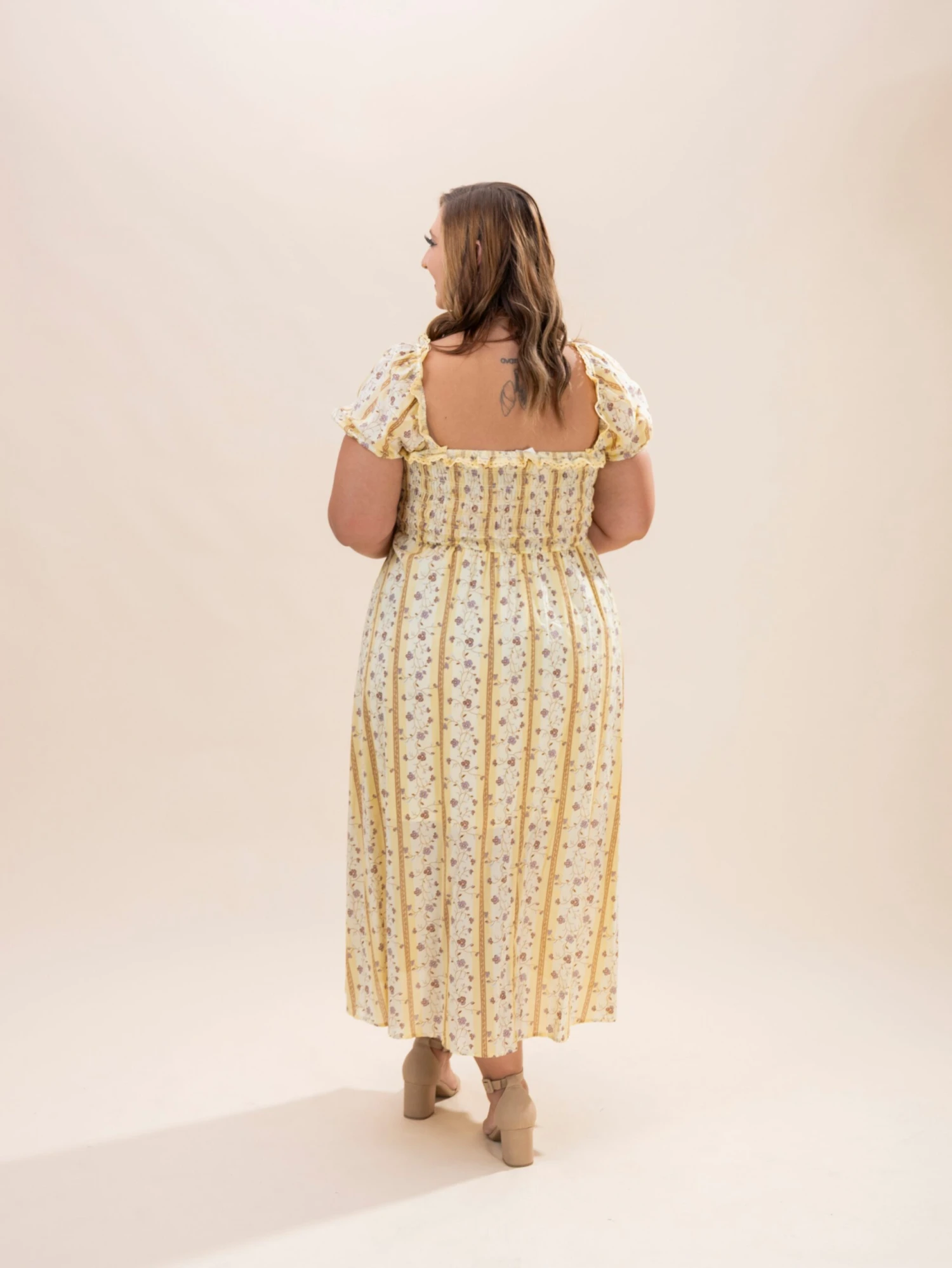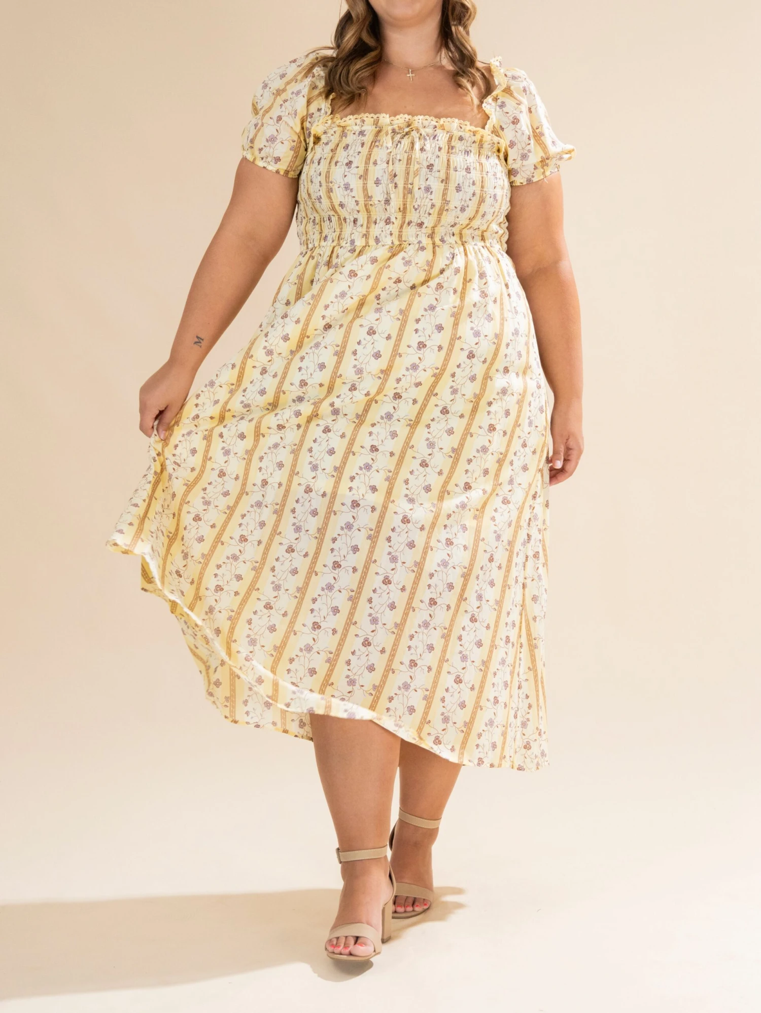 Features: Floral Stripe, Pattern Smocked, Midi Dress