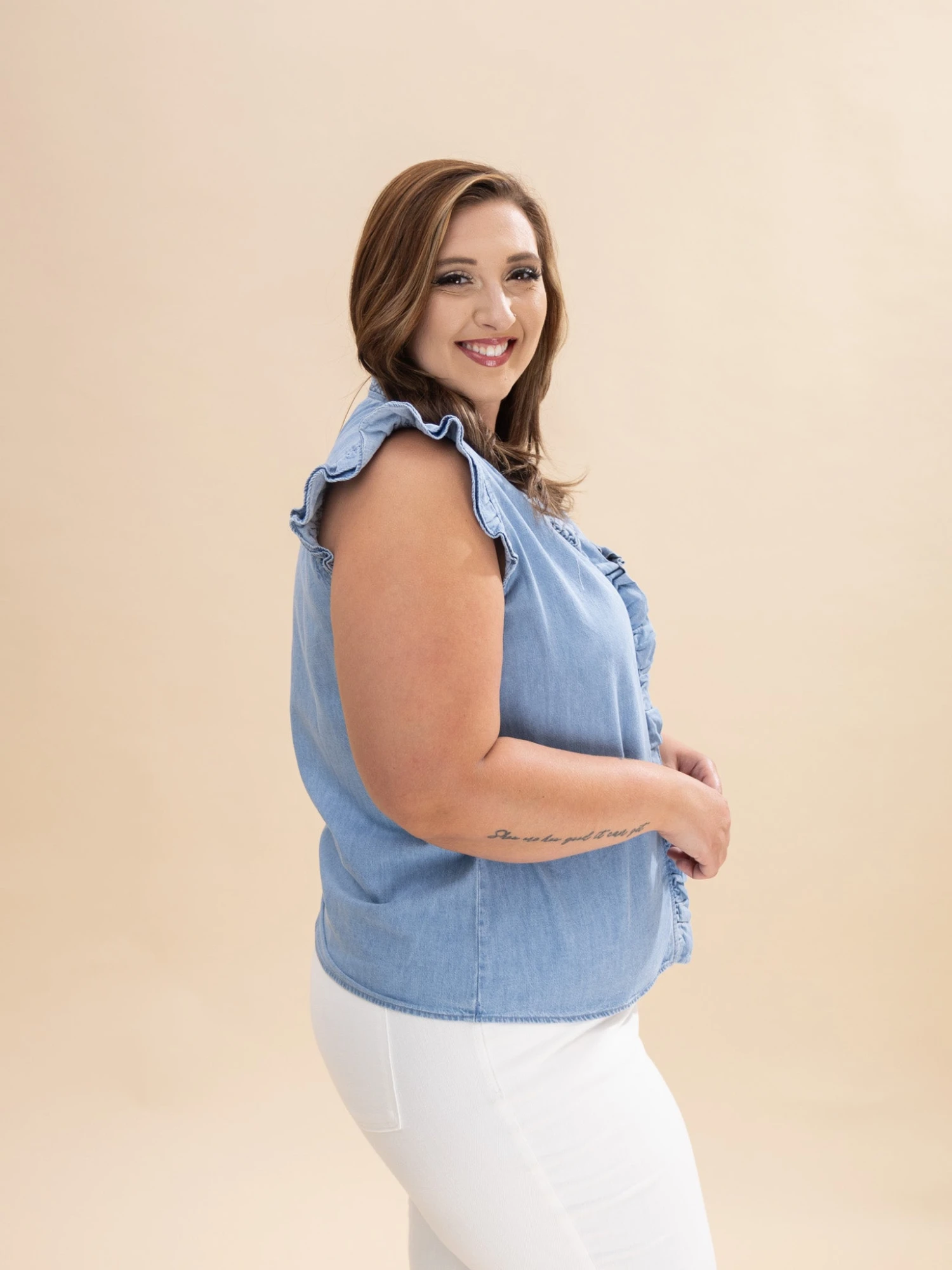 Erin is 5’8, 36C bra, typically wears size L/XL in tops and 14/15 in denim. Wearing size XL
