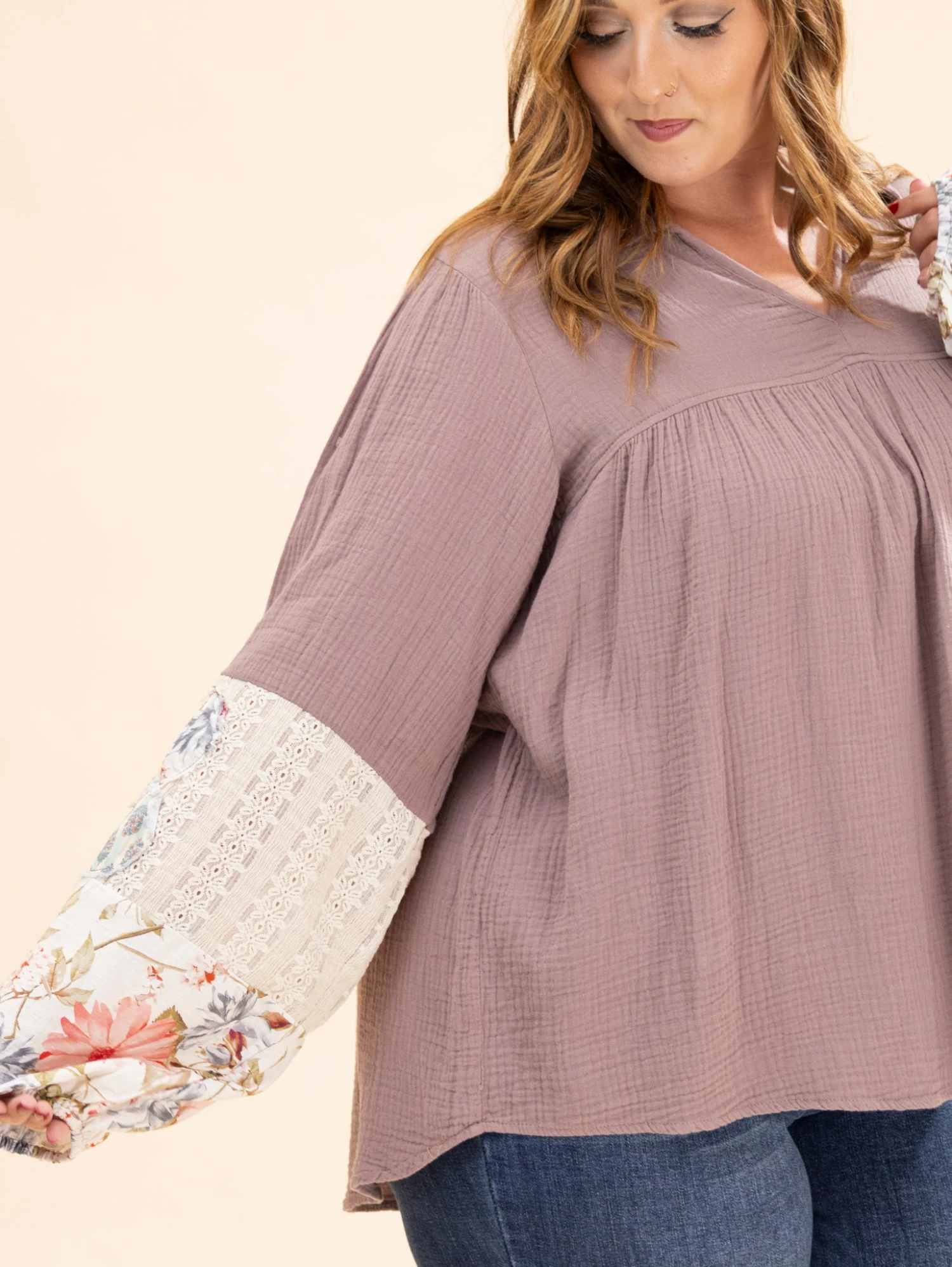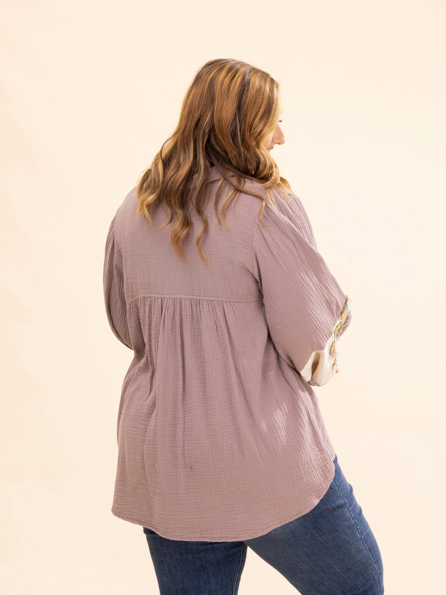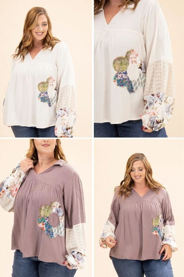Features: Collar, V Neck, Long Sleeves, Flower Detail