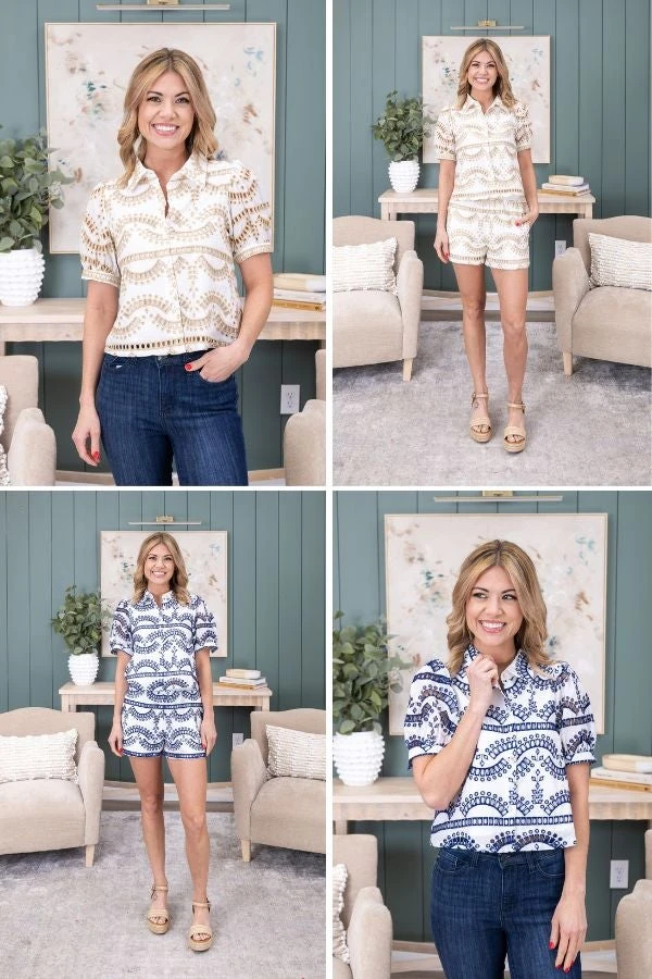 Brittany (short blonde hair) is 5’10, 36B bra, typically wears size S in tops and 3/5 in denim. Wearing size S