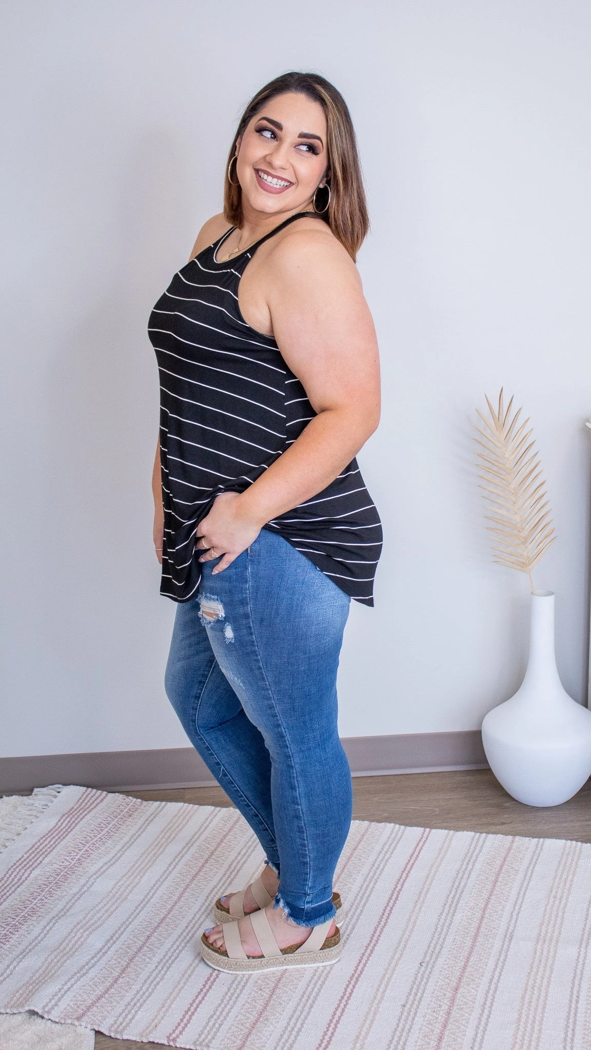 We are loving the Give It To Me Straight Top for a day on the run. Pair her with some denim shorts and sneakers for a super cute fit.
