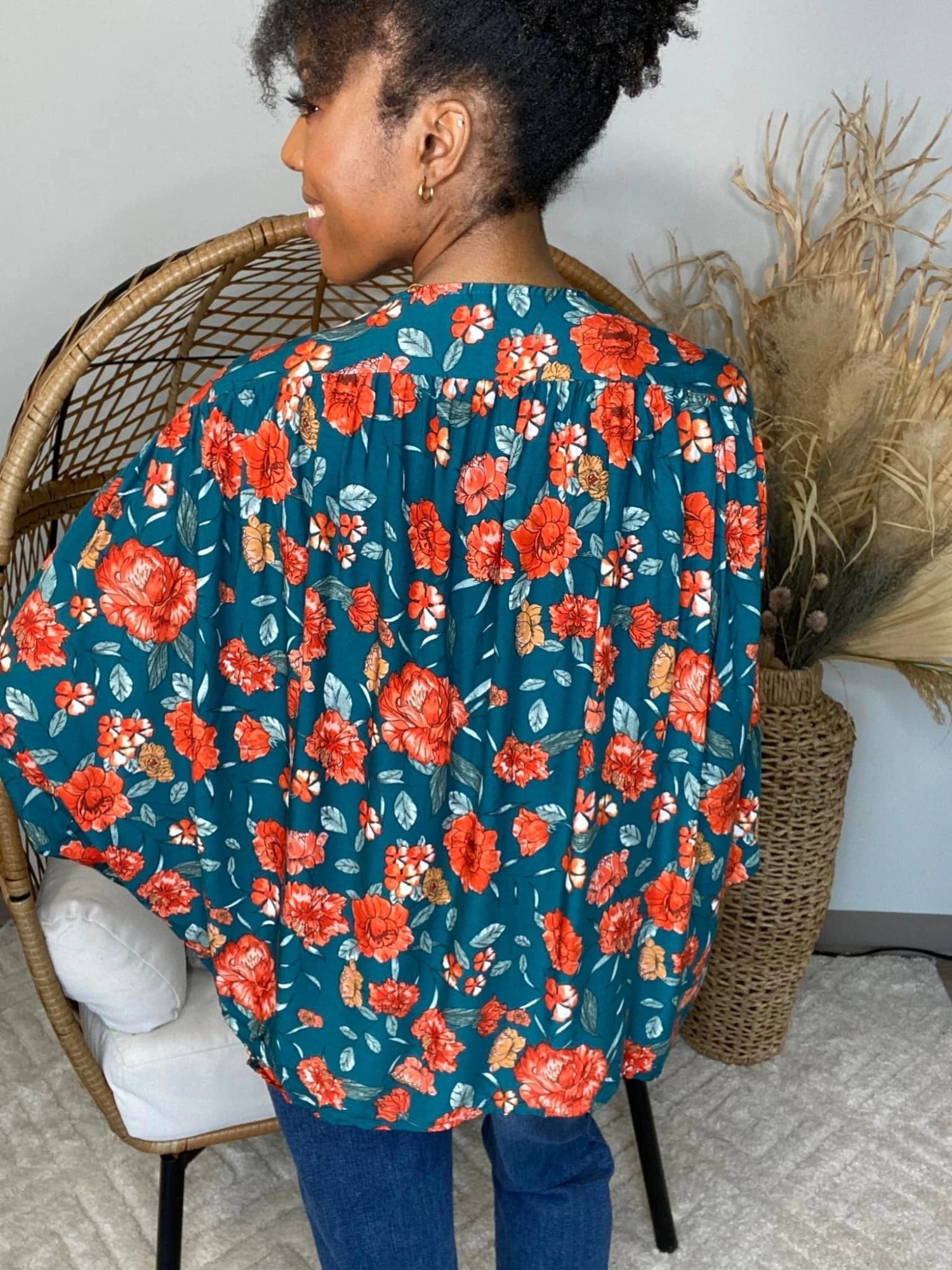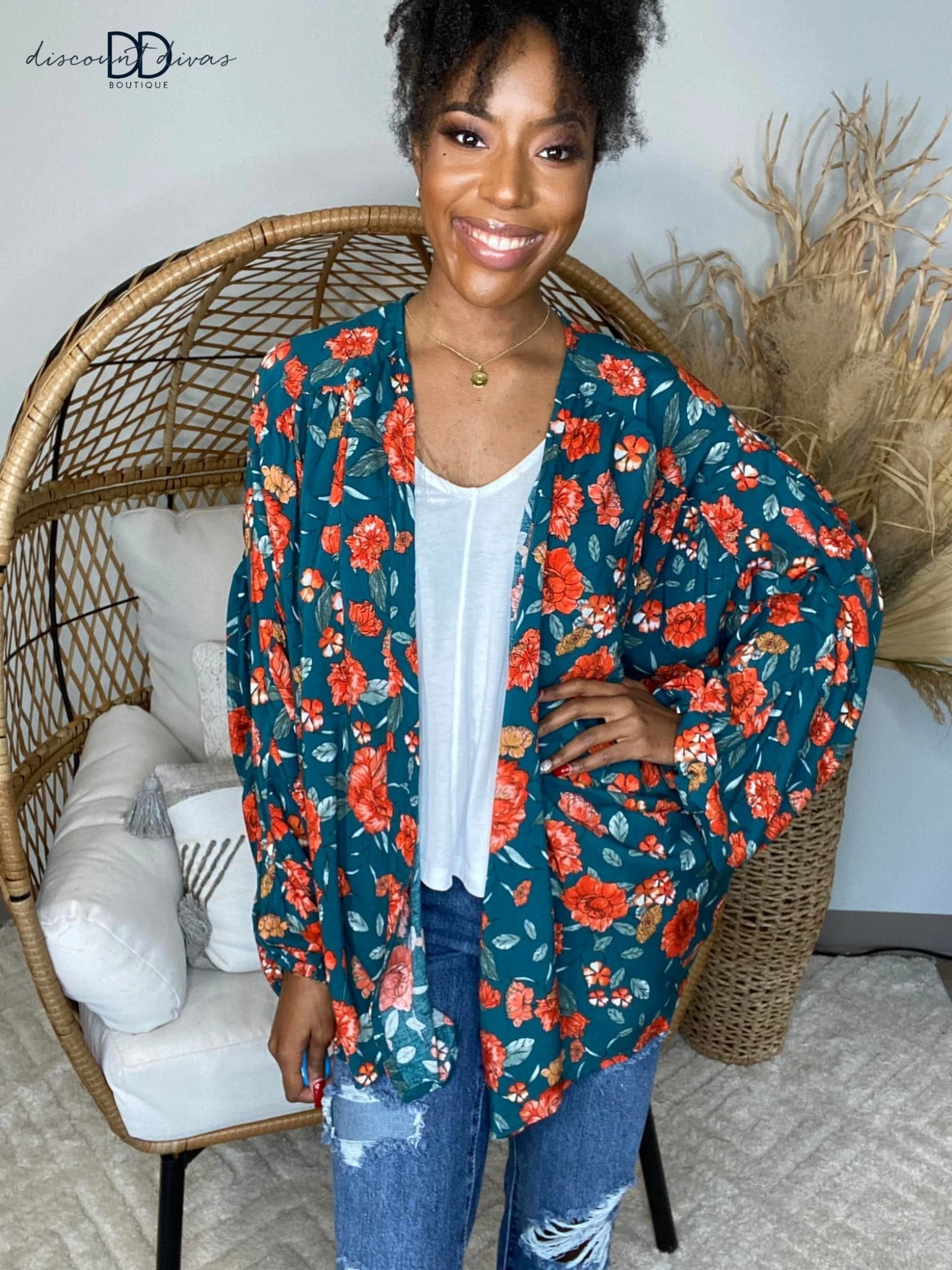 The “Give To Me Cardigan” has arrived! We are loving this floral print moment! The ruched open front is too cute! Throw this over any solid print top and you are all set! Be sure to snag one while you can!
