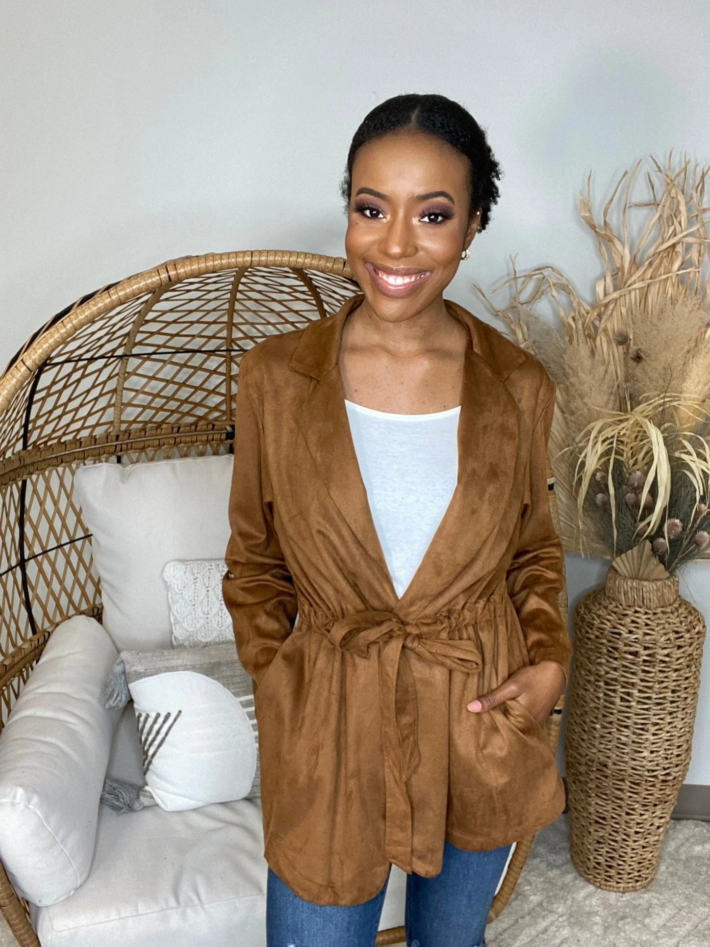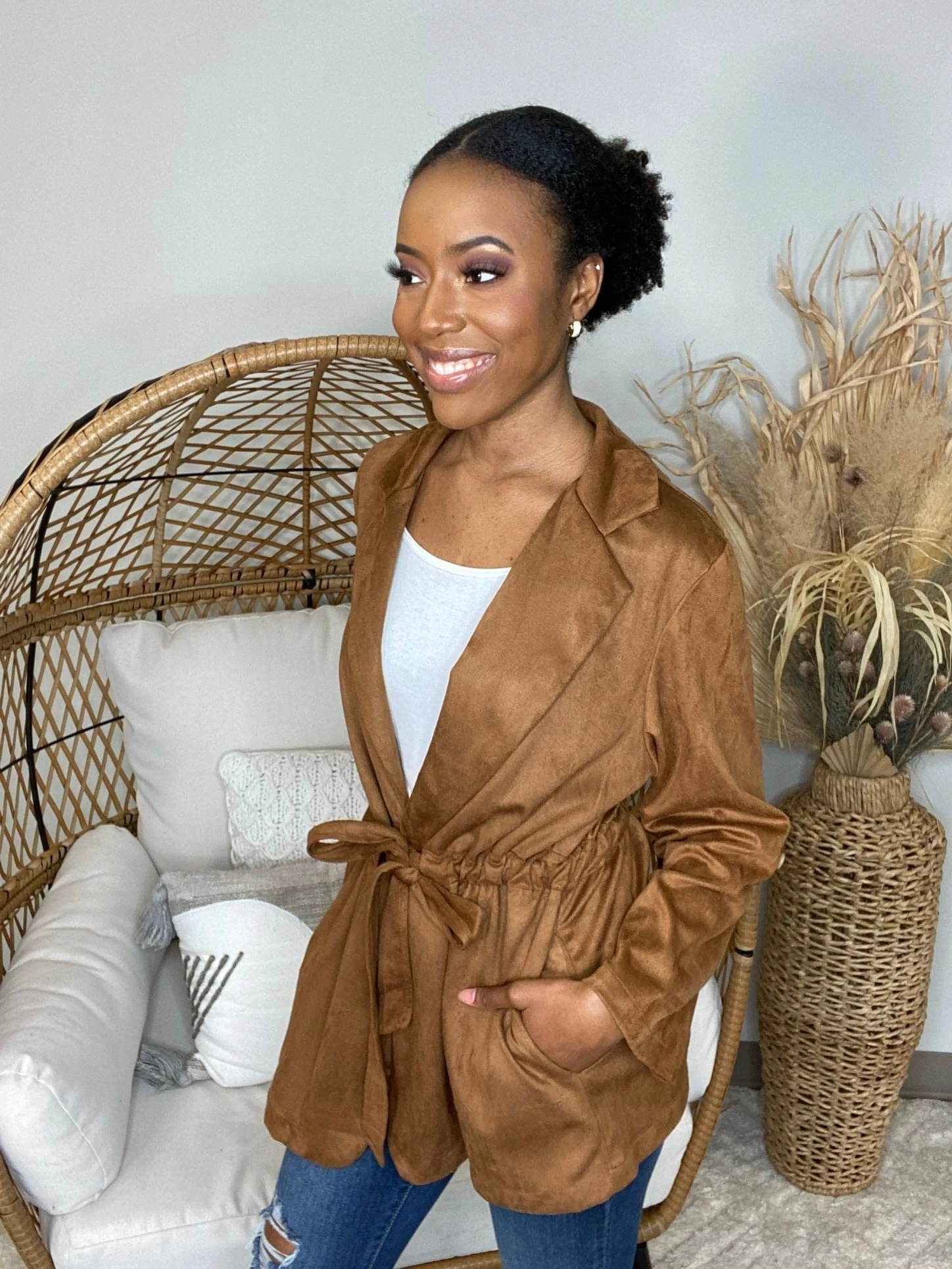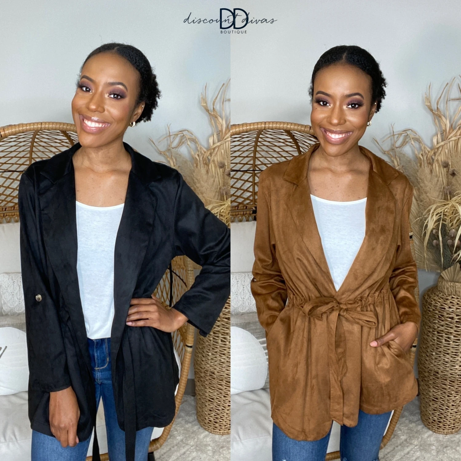 The “Headed To Work Blazer” has arrived! This blazer is just what all you ladies need! With the faux suede solid print and the pockets, you can’t miss out! Be sure to snag one while you can!