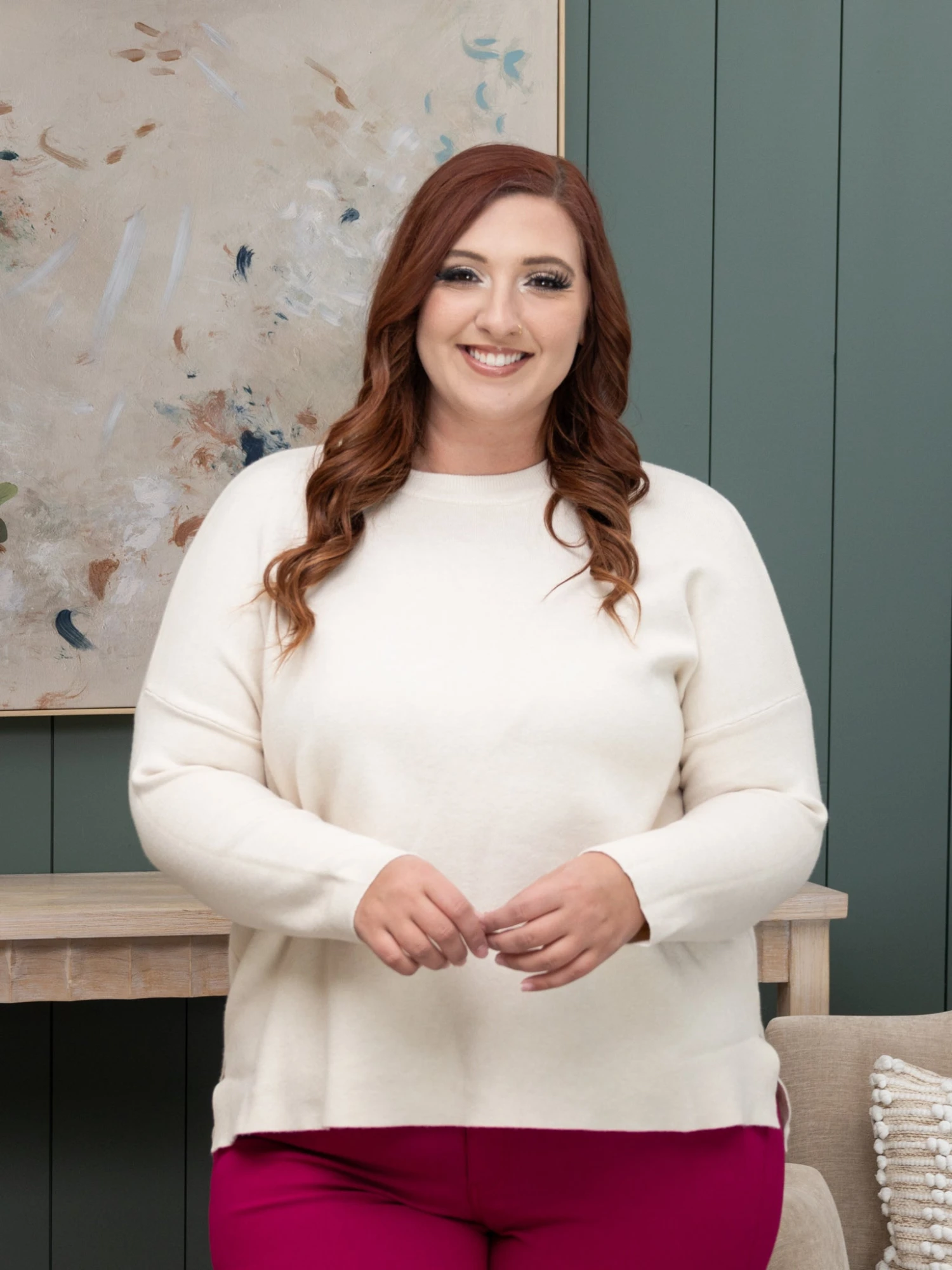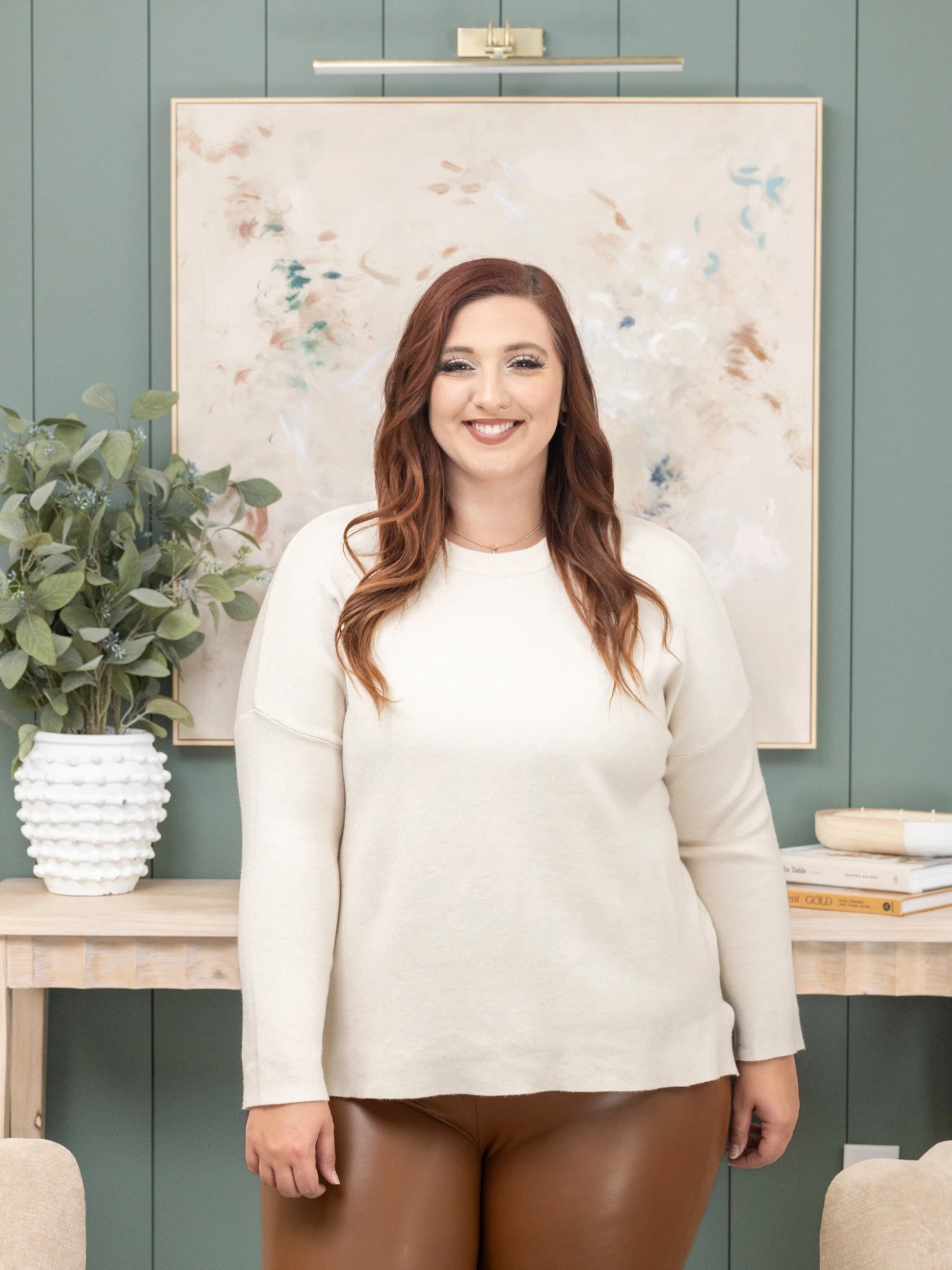 Erin is 5’8, 36C bra, typically wears size L/XL in tops and 14/15 in denim. Wearing size M_L. This fits tts, if you are between sizes you can size up for a more oversized fit.