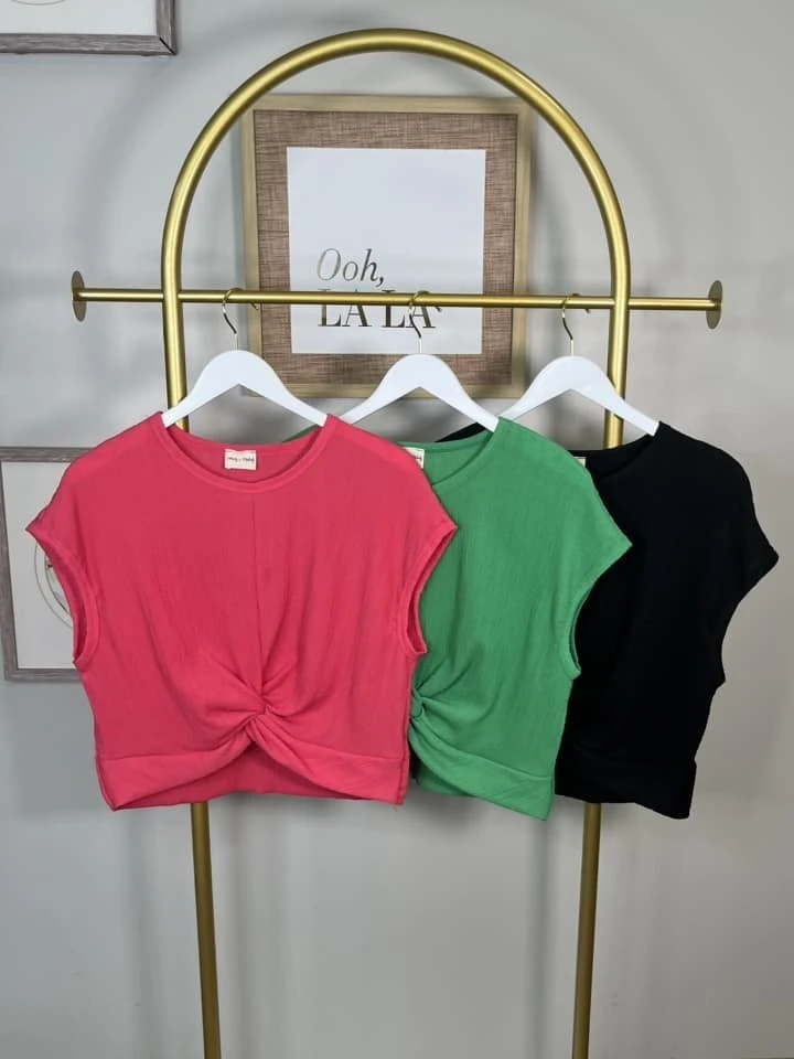 Features: Front Knot, Short Sleeves