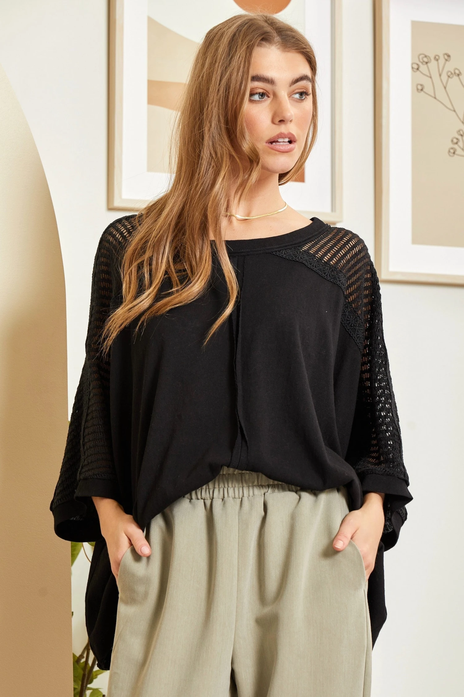Features: Round Neck, Short Sleeves, Crochet Detail
