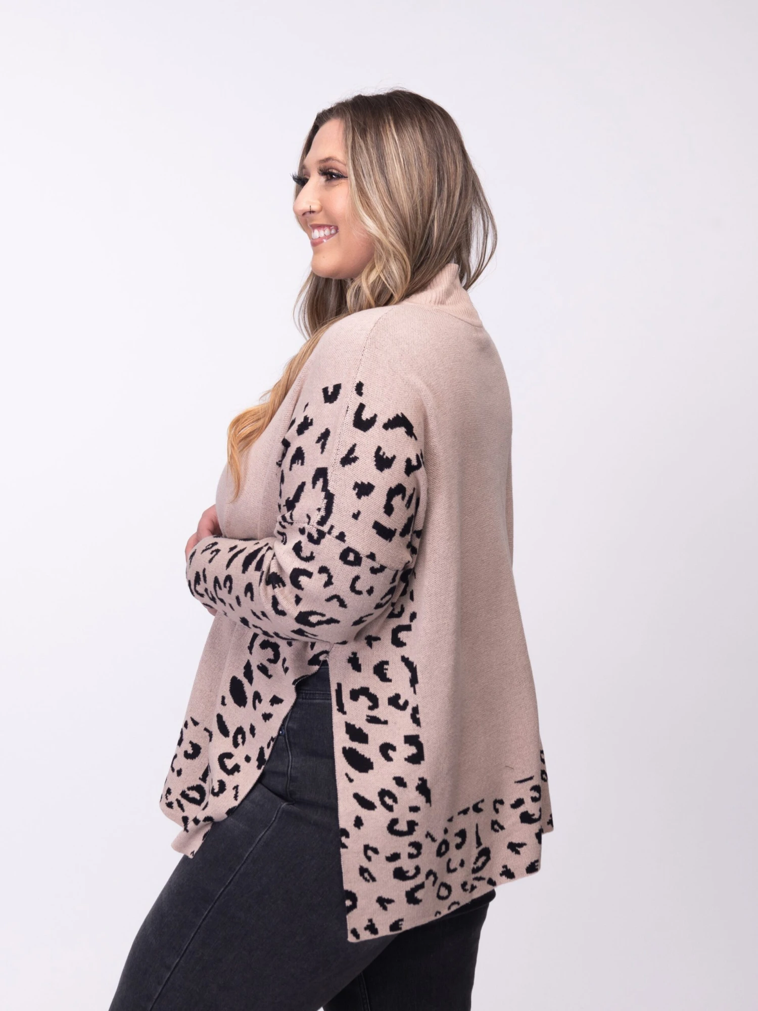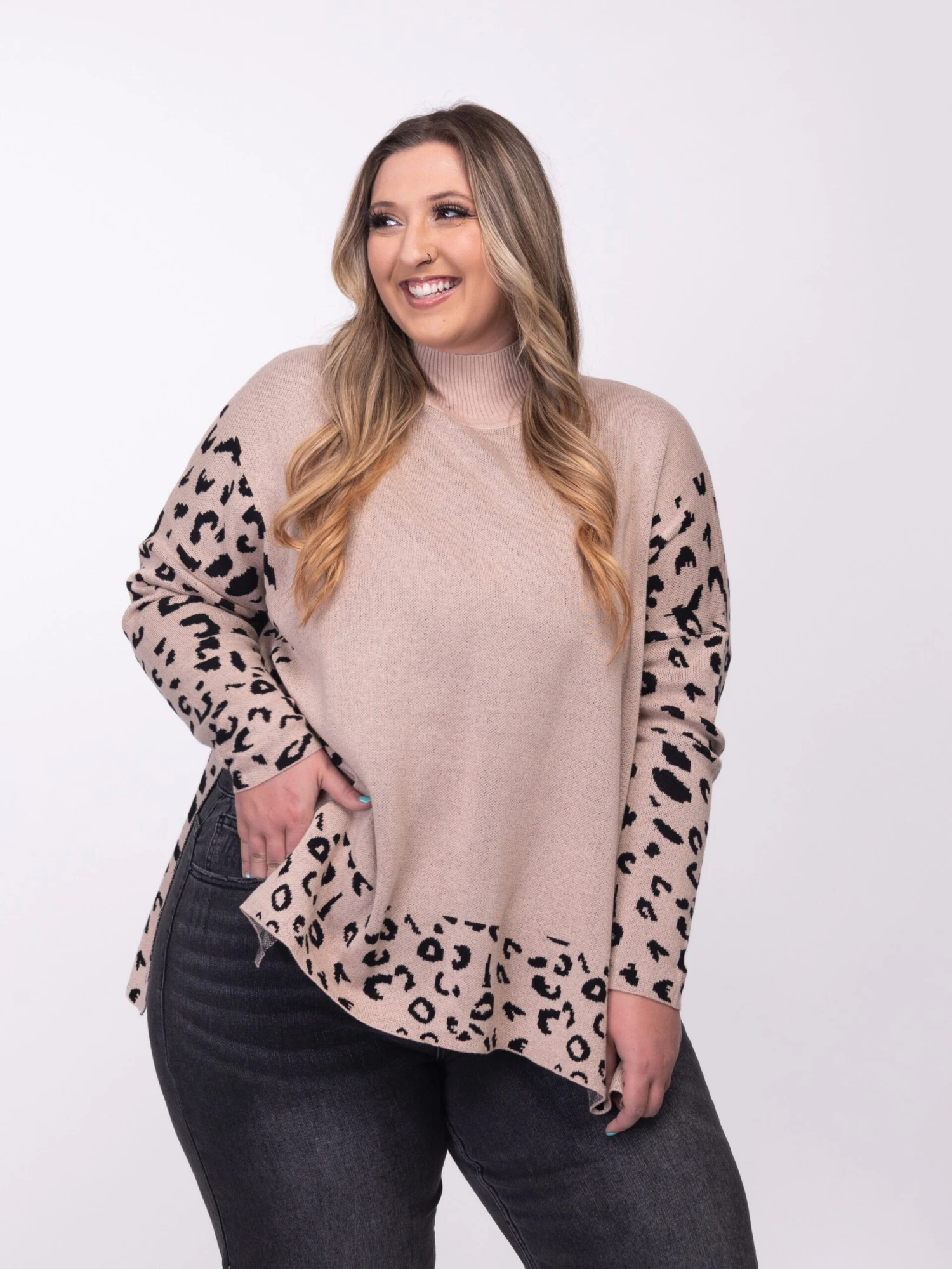 Features: Mock Neck, Long Sleeves, Side Slits