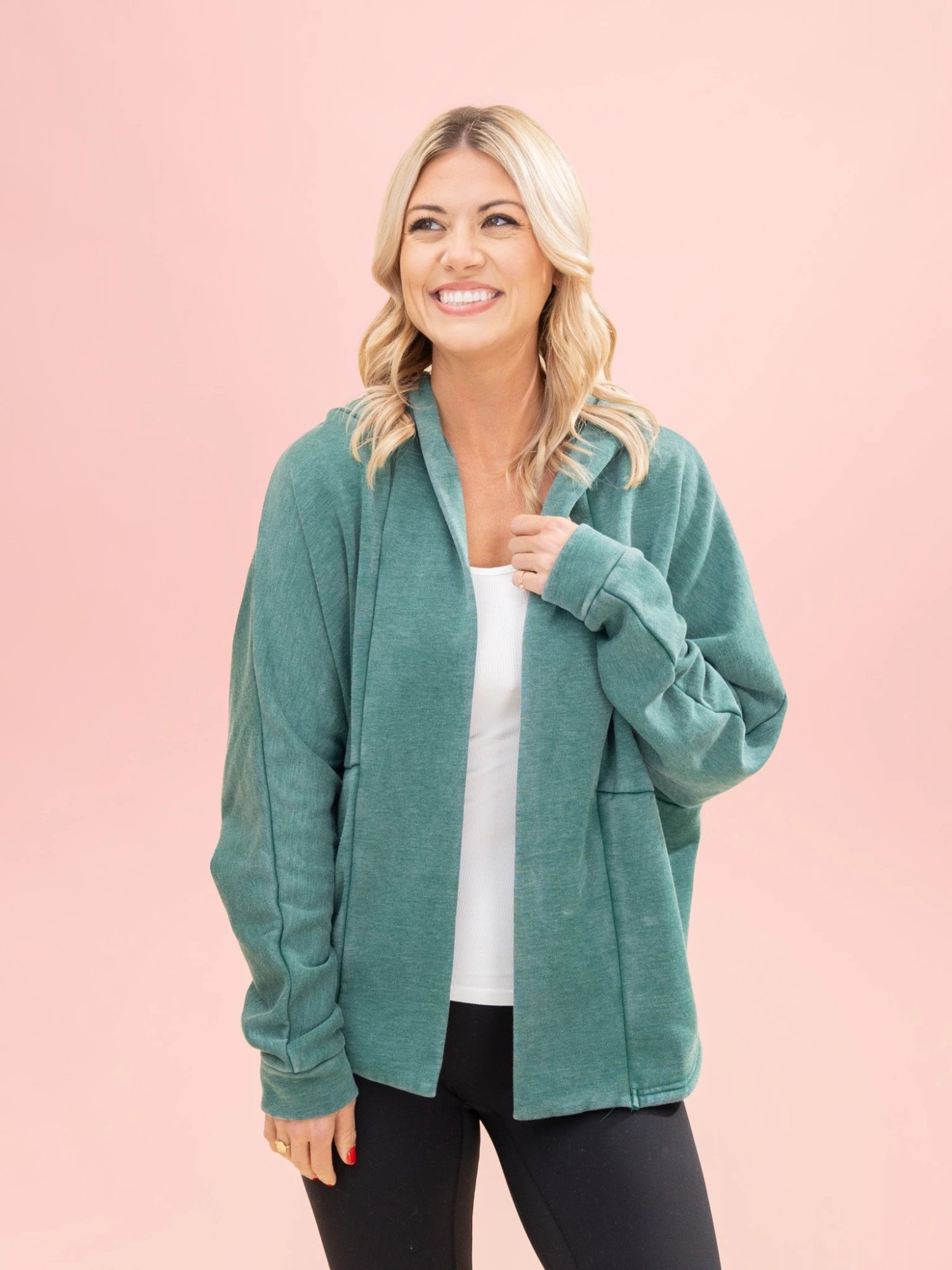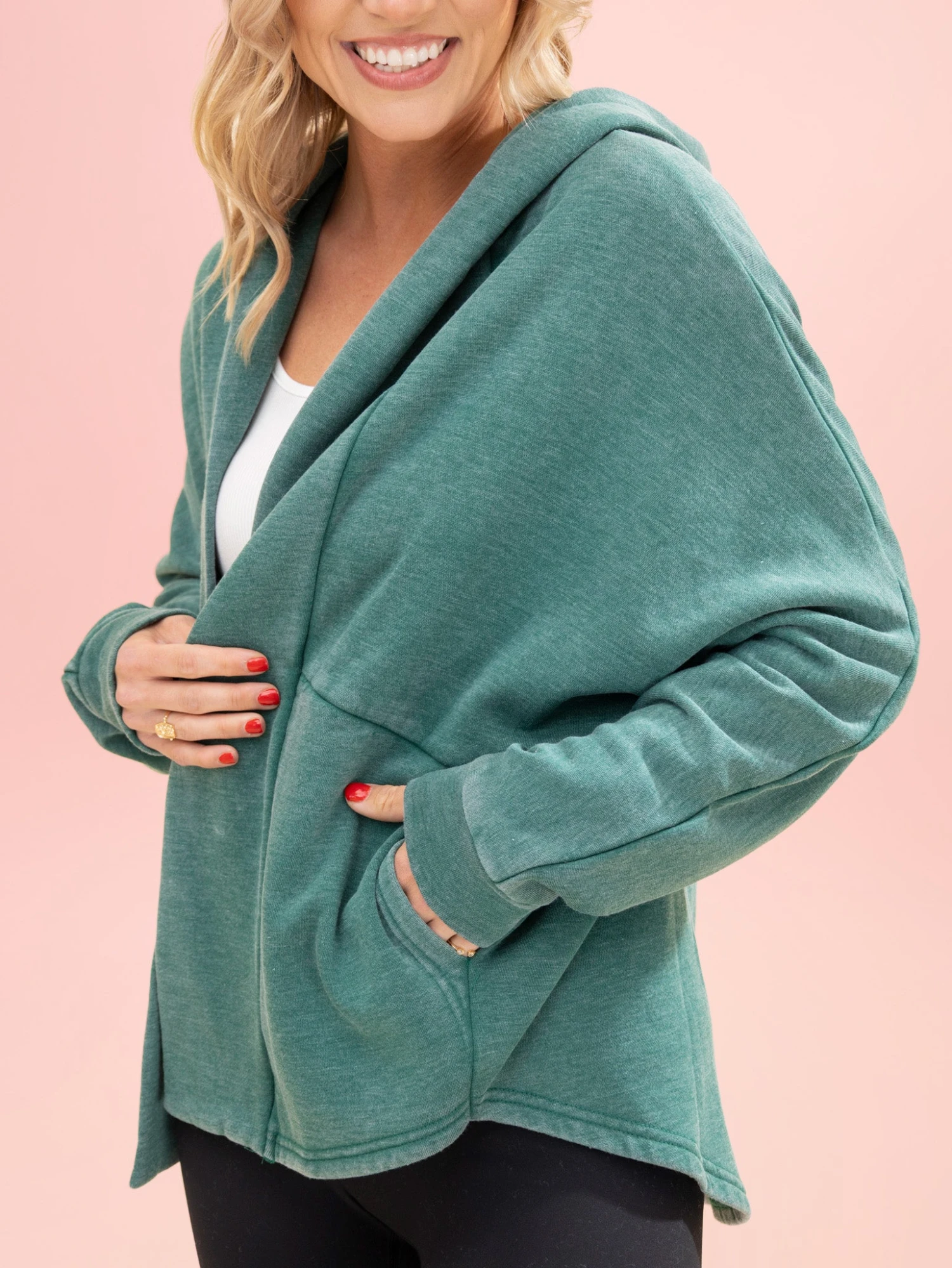 Features: Hoodie, Open Front, Long Sleeves, Pockets, Lived -In Cardigan