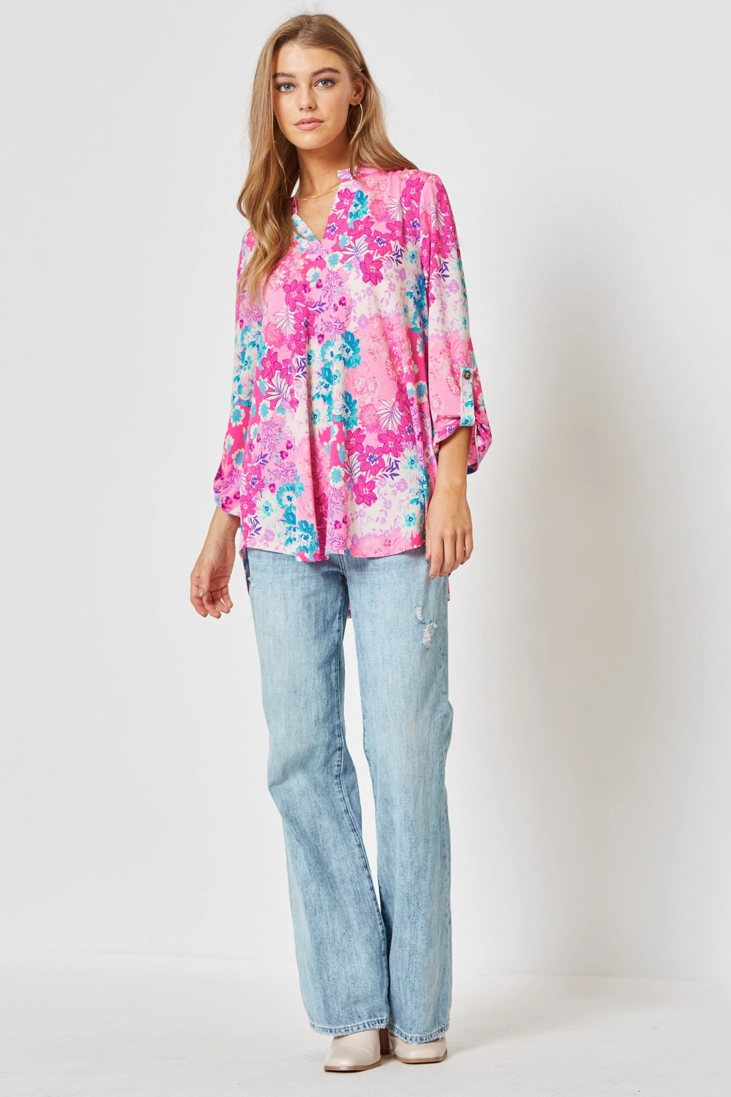 Features: 3/4 Sleeves, V Neck