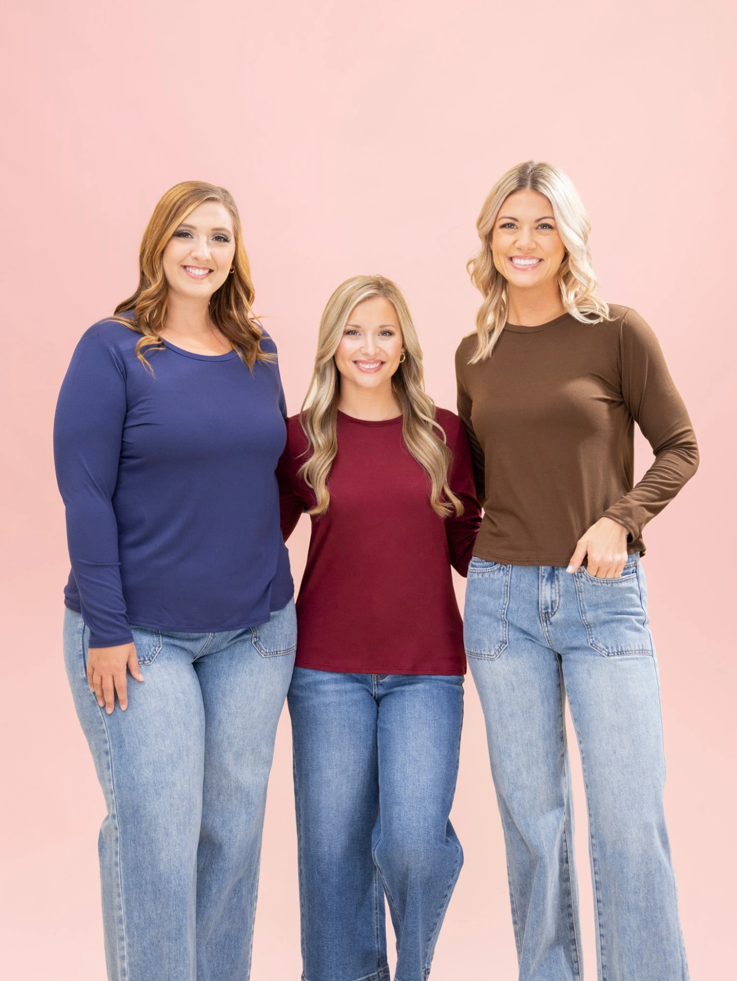 Features: Round Neck, Long Sleeves, Buttery Soft Top