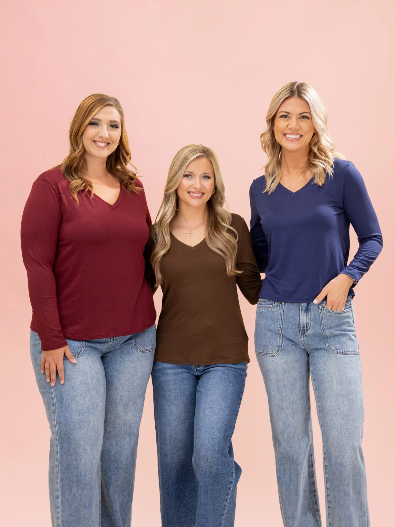 Brittany (short blonde hair) is 5’10, 36B bra, typically wears size S in tops and 3 in denim. Wearing size S